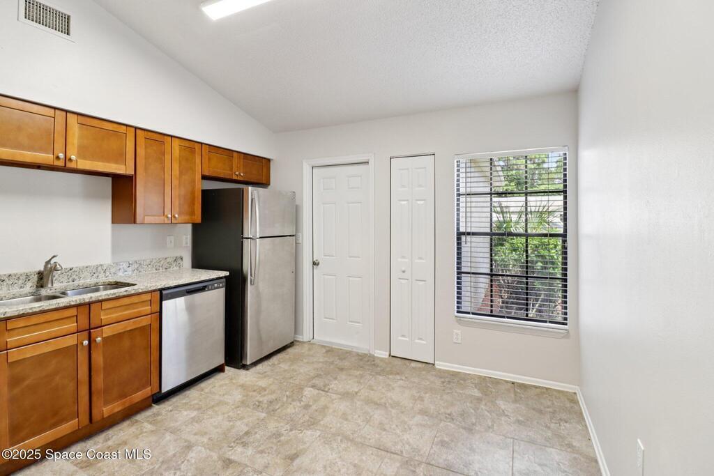 Vacant and ready for new owners! This 3-bedroom, 2-bath home sits on a spacious 80x125 lot in a quiet Port St. John neighborhood. You'll love the open layout, vaulted ceilings, and split floor plan that gives everyone their space. The kitchen has great flow into the dining and living areas, making it perfect for everyday living or entertaining. Out back, there's a huge fenced yard with tons of room to play, garden, or even add a pool. No HOA and just minutes to I-95, shopping, schools, and the river. Whether you're starting out or slowing down, this one's a solid fit.
