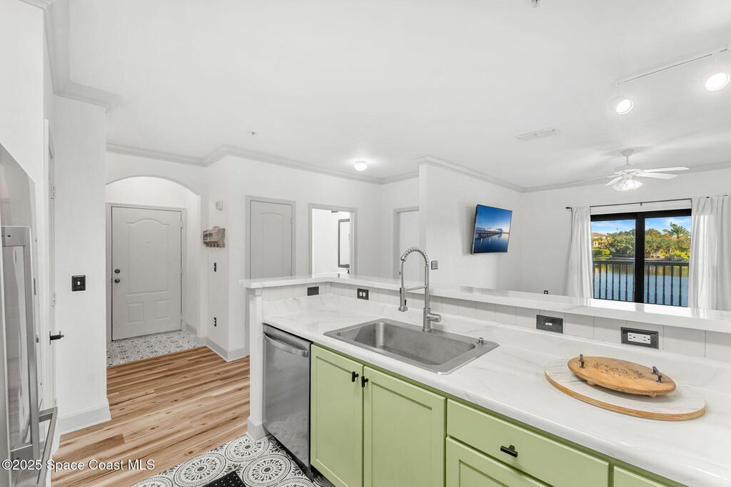 Enjoy sweeping lake views from this charming 1-bedroom residence, thoughtfully updated with a modern kitchen and bath, new luxury flooring, stainless steel appliances, washer/dryer, water heater, and A/C compressor. Hurricane-impact windows and sliders provide peace of mind, while the vibrant Three Fountains of Viera community places you within moments of The Avenue Viera's premier shopping, dining, and entertainment. Set in an A-rated school district, this home pairs comfort and style with a highly desirable Viera lifestyle.
