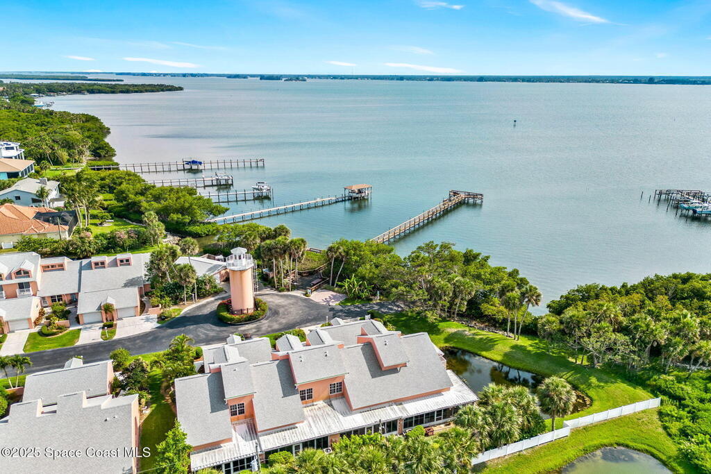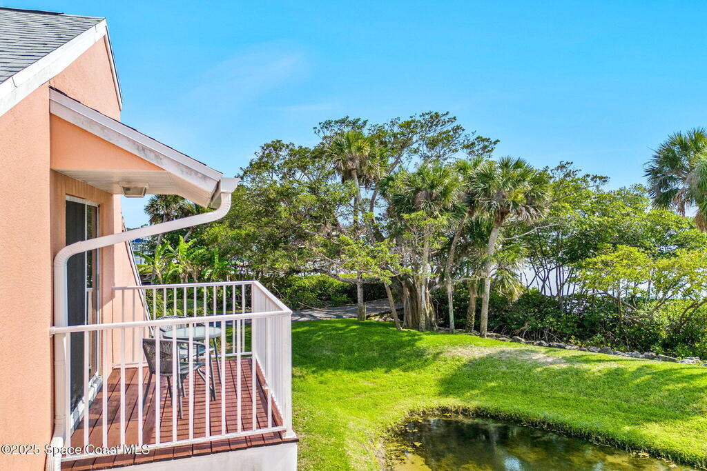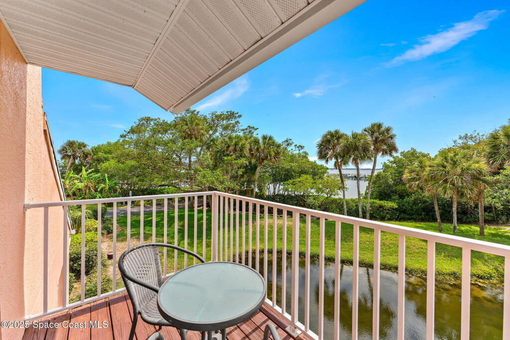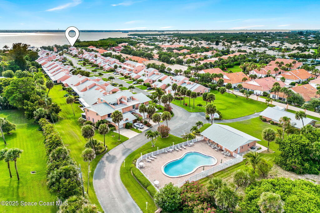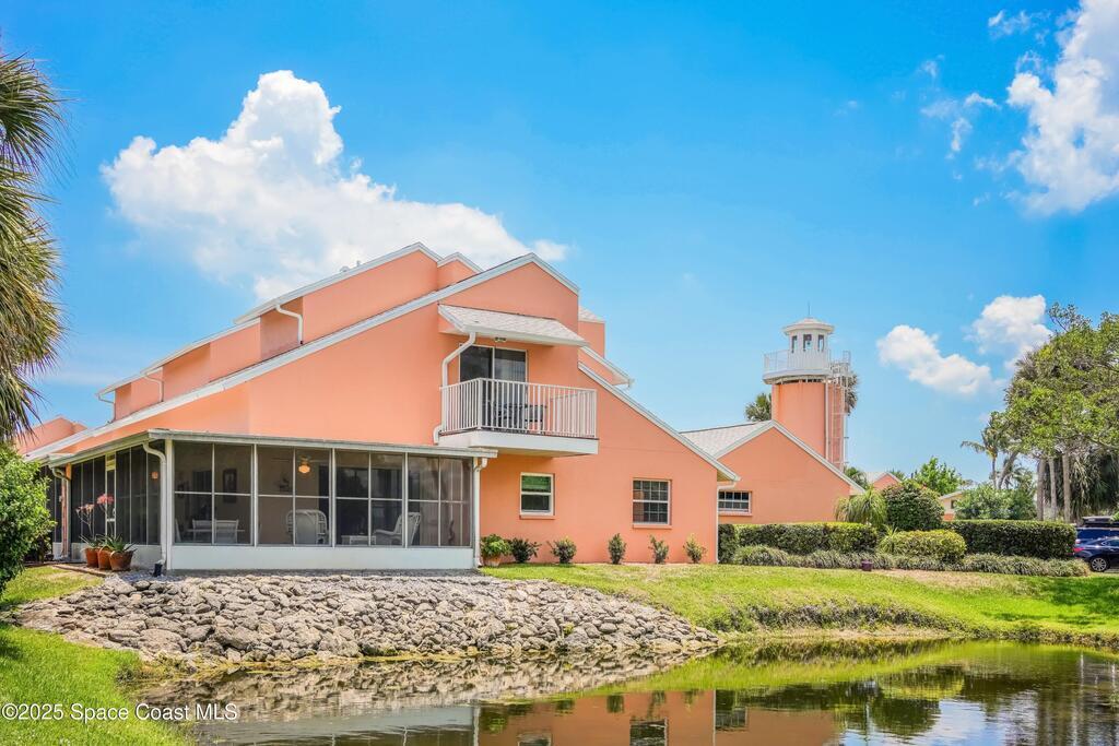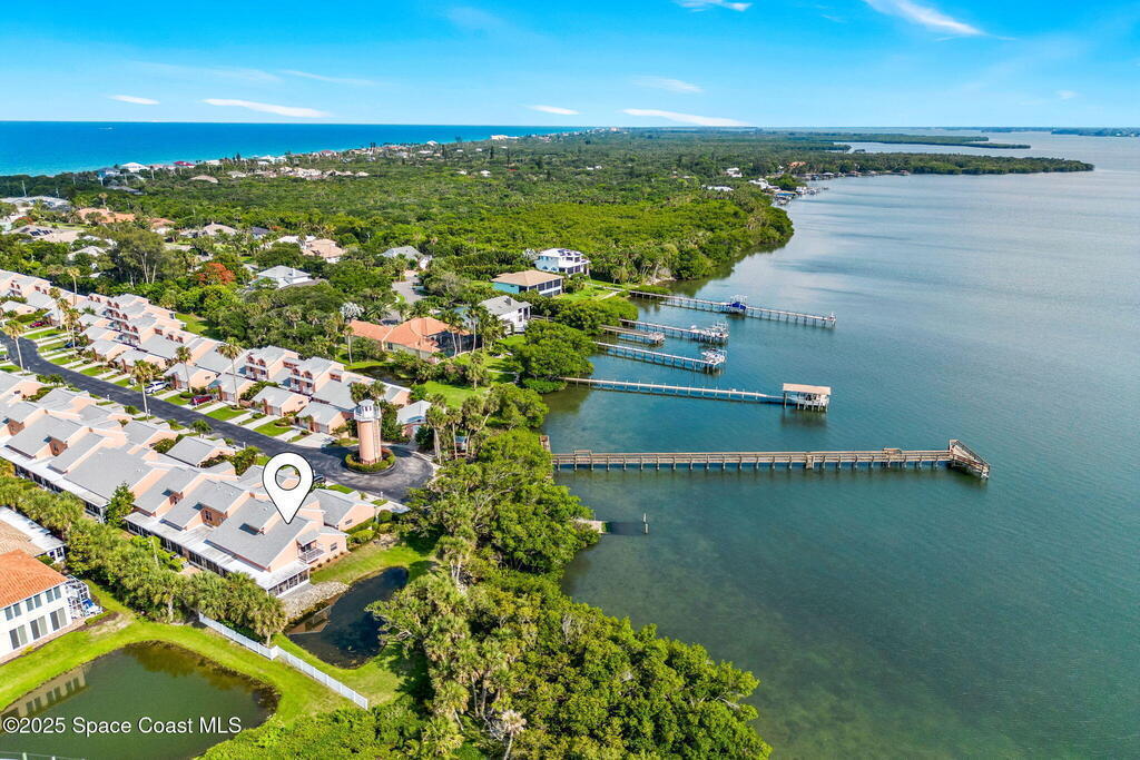 [72-hour kickout in place] Experience Indian Riverfront living in a condo that lives like a townhome in this OCEAN-TO-RIVER community! This END UNIT is the only layout that offers an OFFICE/DEN off the living room, plus additional windows that fill the home with natural light & a wrap-around screened patio for expanded outdoor living. A 2-car driveway, available to only a handful of units in the community, adds extra convenience. Inside, REINFORCED CONCRETE construction supports a FIRST FLOOR bedroom & an open plan with vaulted ceilings. Upstairs, a spacious BONUS LOFT includes another bedroom, bath, & TWO BALCONIES, along with ample storage. Updates include a 2024 ROOF, 2018 Trane HVAC, & 2018 water heater. Along the shoreline, a small pond attracts river otters & Florida's signature birdlife. Community amenities include DEEDED & GATED BEACH ACCESS, a HEATED POOL with clubhouse (resurfaced 2020, new heat pump 2023), BOAT RAMP, and RIVERFRONT PIER.