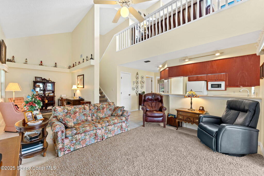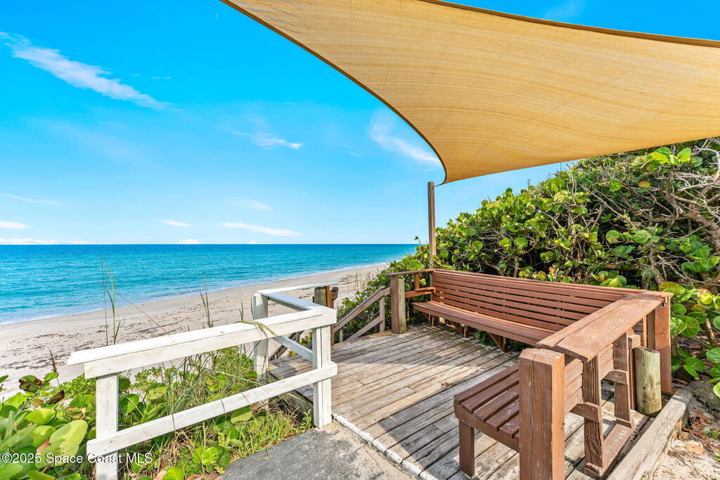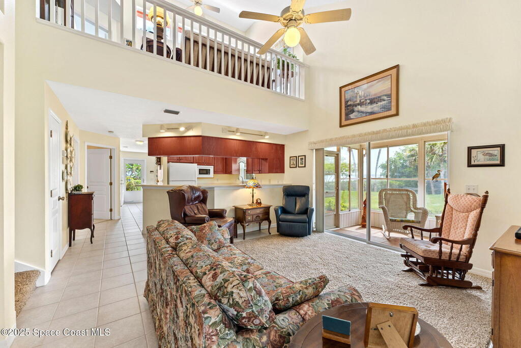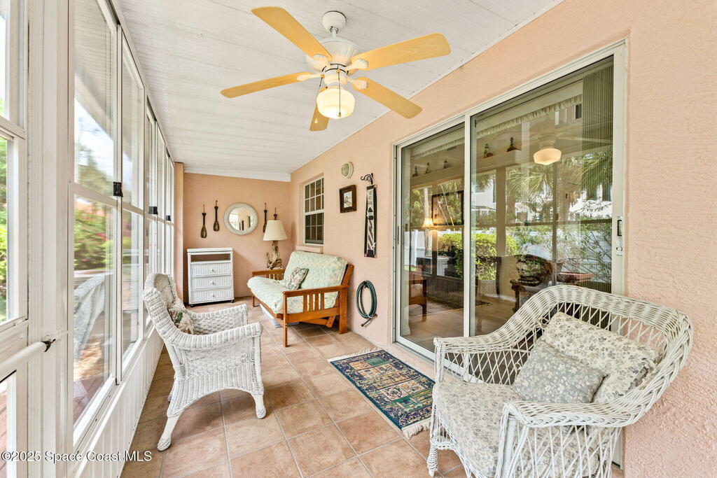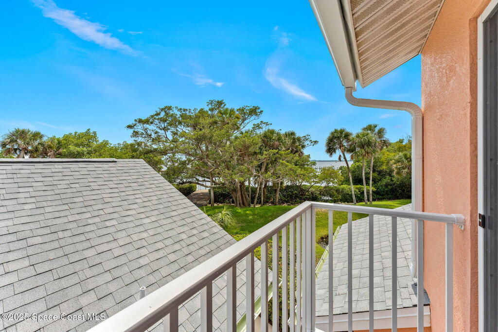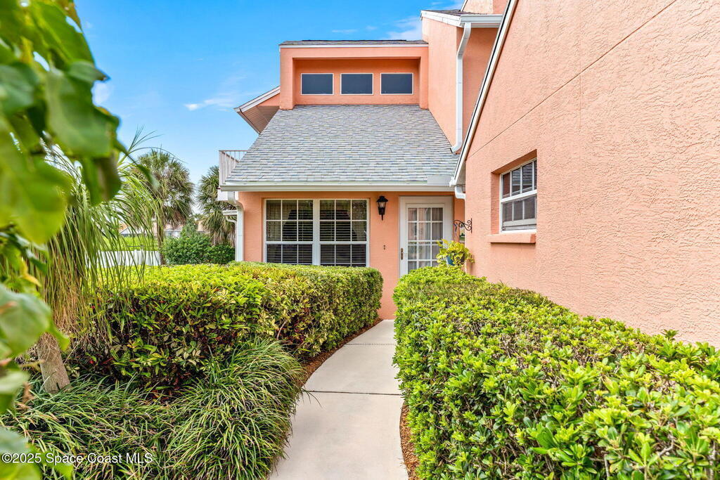 [72-hour kickout in place] Experience Indian Riverfront living in a condo that lives like a townhome in this OCEAN-TO-RIVER community! This END UNIT is the only layout that offers an OFFICE/DEN off the living room, plus additional windows that fill the home with natural light & a wrap-around screened patio for expanded outdoor living. A 2-car driveway, available to only a handful of units in the community, adds extra convenience. Inside, REINFORCED CONCRETE construction supports a FIRST FLOOR bedroom & an open plan with vaulted ceilings. Upstairs, a spacious BONUS LOFT includes another bedroom, bath, & TWO BALCONIES, along with ample storage. Updates include a 2024 ROOF, 2018 Trane HVAC, & 2018 water heater. Along the shoreline, a small pond attracts river otters & Florida's signature birdlife. Community amenities include DEEDED & GATED BEACH ACCESS, a HEATED POOL with clubhouse (resurfaced 2020, new heat pump 2023), BOAT RAMP, and RIVERFRONT PIER.