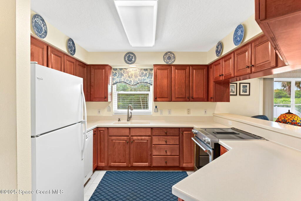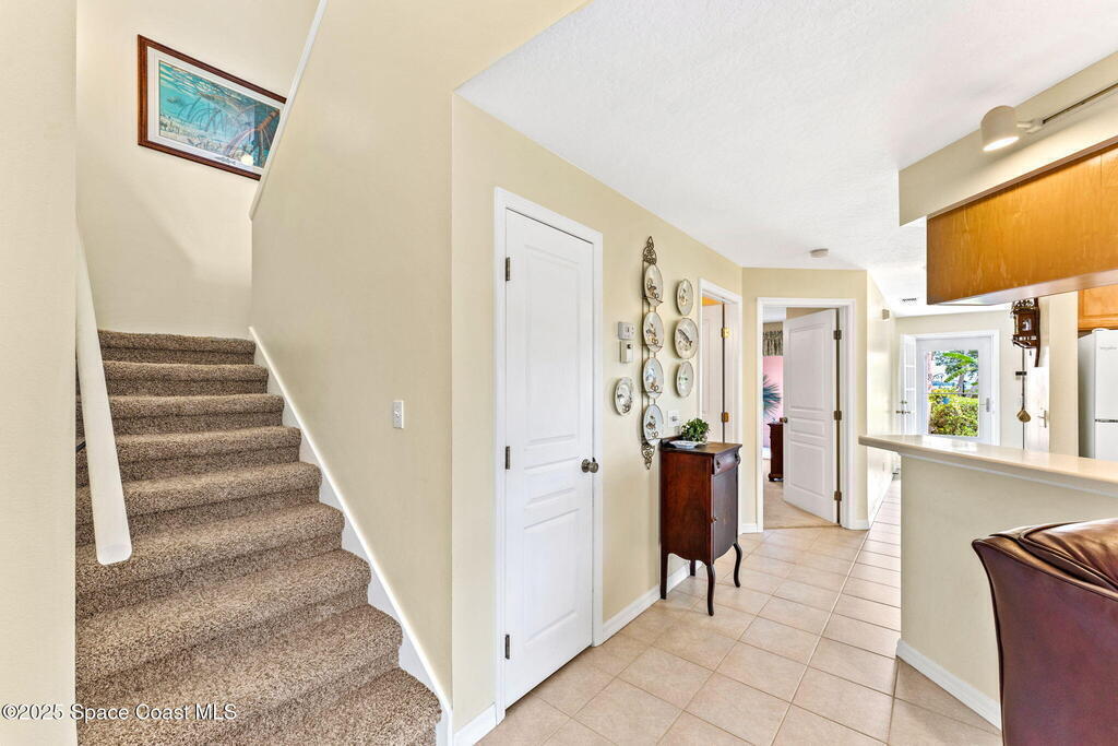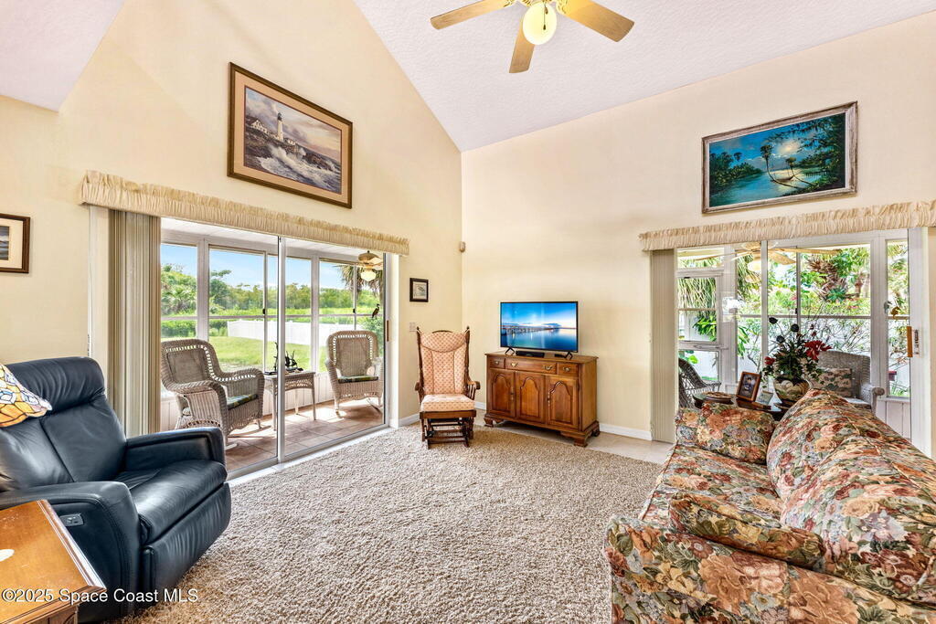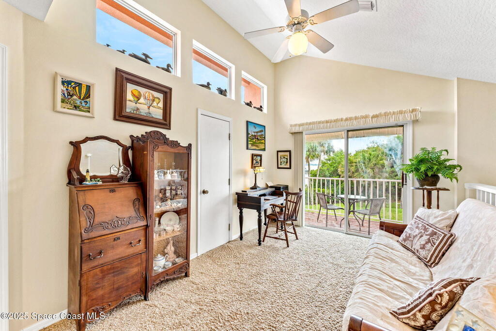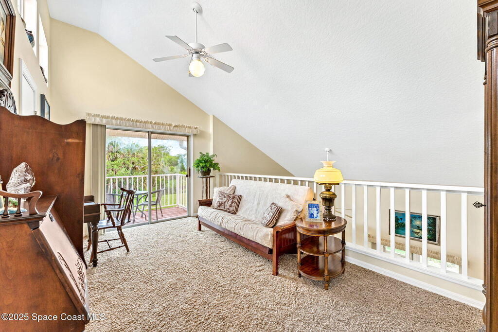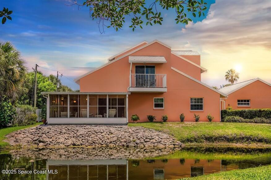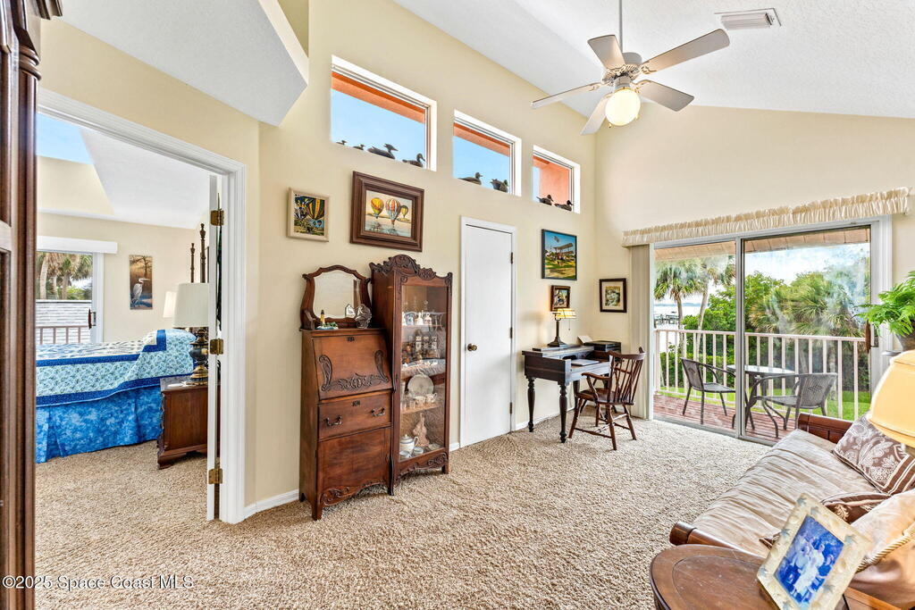 [72-hour kickout in place] Experience Indian Riverfront living in a condo that lives like a townhome in this OCEAN-TO-RIVER community! This END UNIT is the only layout that offers an OFFICE/DEN off the living room, plus additional windows that fill the home with natural light & a wrap-around screened patio for expanded outdoor living. A 2-car driveway, available to only a handful of units in the community, adds extra convenience. Inside, REINFORCED CONCRETE construction supports a FIRST FLOOR bedroom & an open plan with vaulted ceilings. Upstairs, a spacious BONUS LOFT includes another bedroom, bath, & TWO BALCONIES, along with ample storage. Updates include a 2024 ROOF, 2018 Trane HVAC, & 2018 water heater. Along the shoreline, a small pond attracts river otters & Florida's signature birdlife. Community amenities include DEEDED & GATED BEACH ACCESS, a HEATED POOL with clubhouse (resurfaced 2020, new heat pump 2023), BOAT RAMP, and RIVERFRONT PIER.