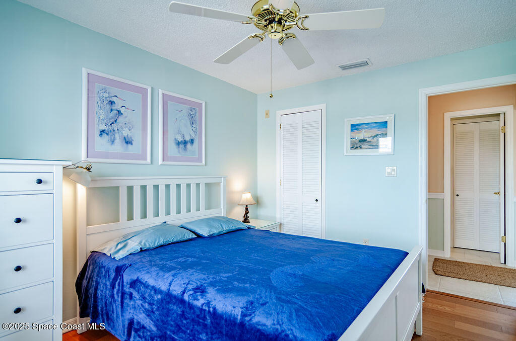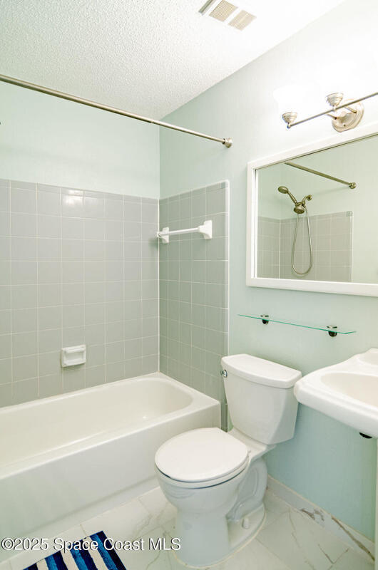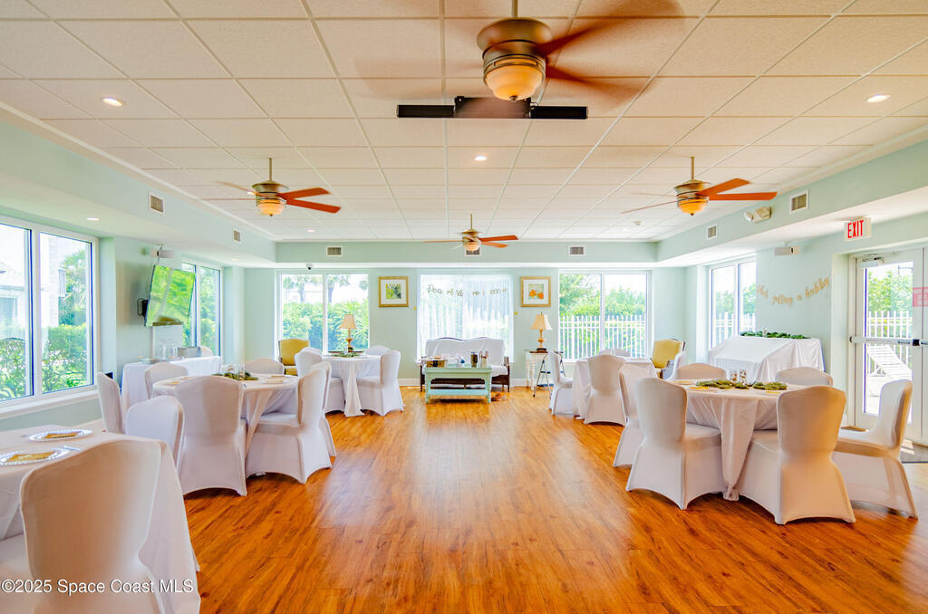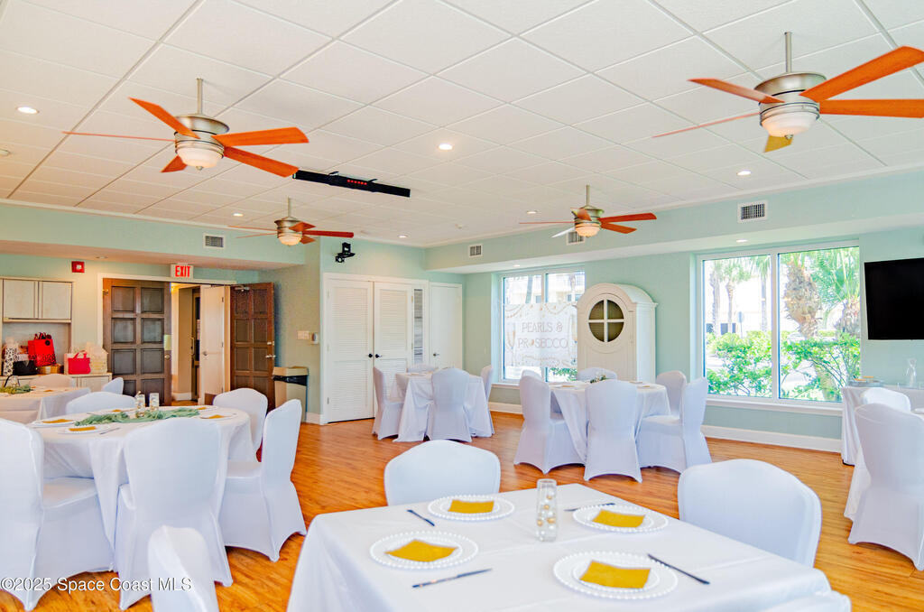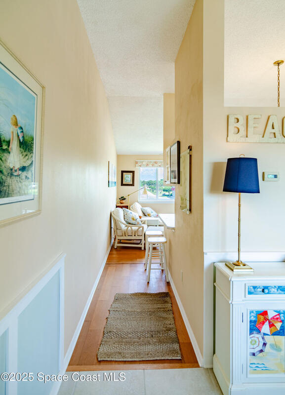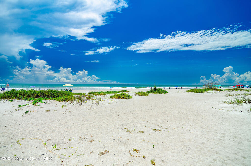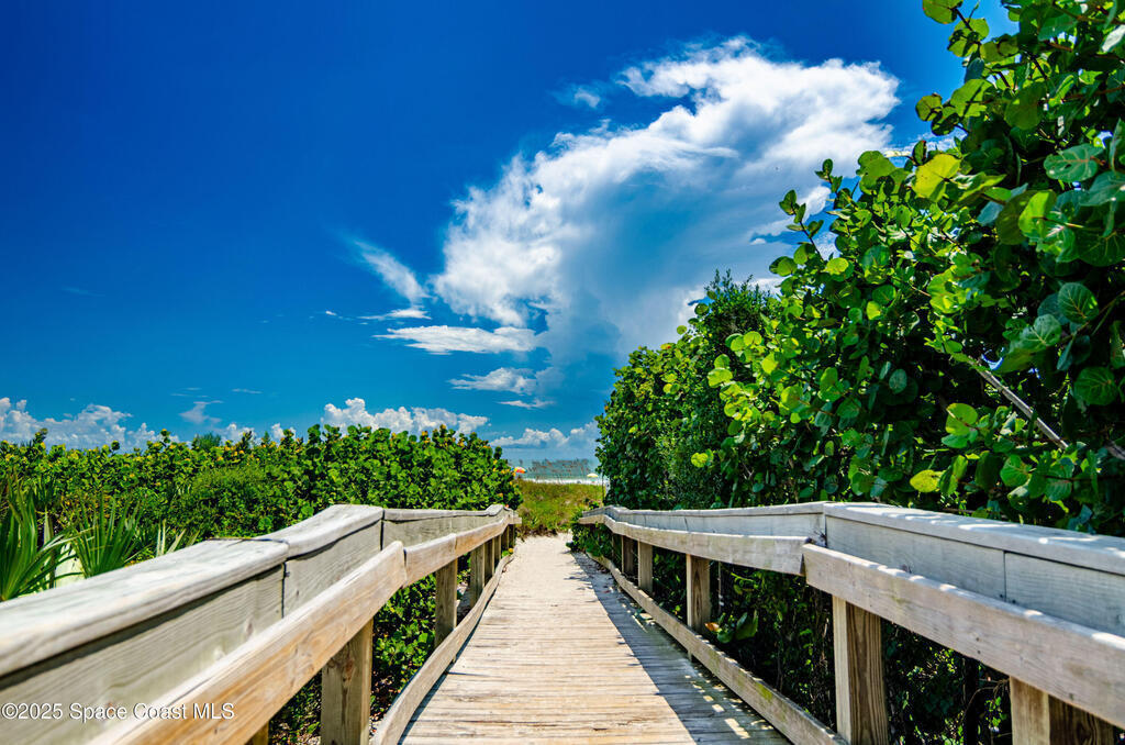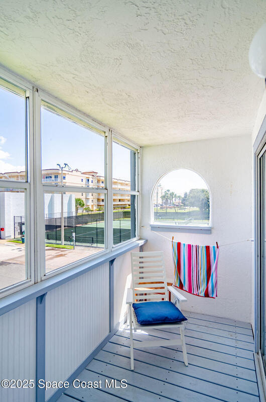 Stylish Coastal Living with Resort-Style Amenities!This move-in ready 1-bedroom condo combines modern comfort with a vibrant beachside lifestyle. From your living room, watch rocket launches light up the sky and cruise ships sail by. Featuring soaring 11-ft ceilings, the home feels bright and airy, with updates including a new water heater (2018), A/C (2019), and hurricane-rated windows. Relax year-round in the enclosed sunroom, enjoy assigned parking right out front, and walk just 1 minute to the beach and clubhouse. Nestled in a secure gated community, you'll have access to 3 pools, tennis, pickleball, racquetball, fitness center, and more--all with a low HOA and 1-month rental restriction. Every day feels like a vacation here!