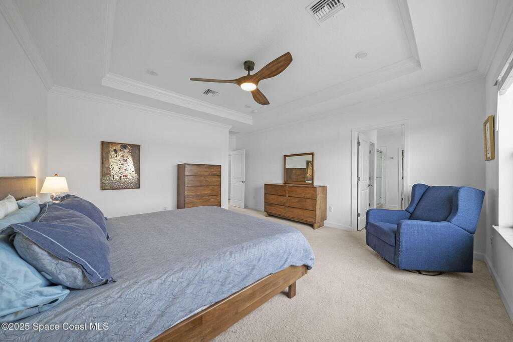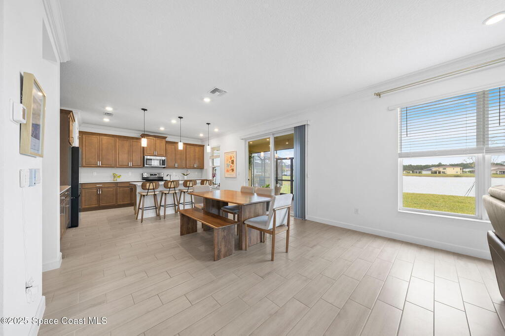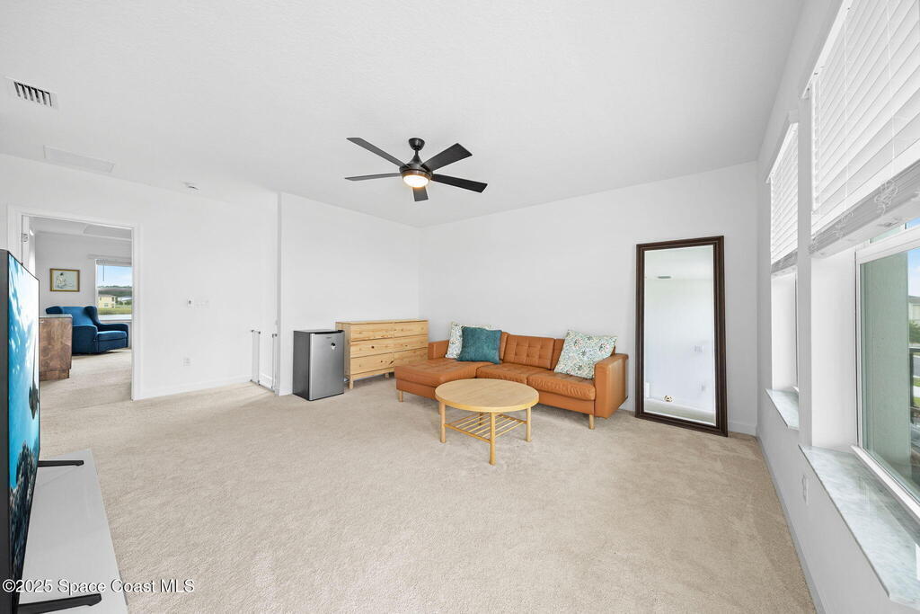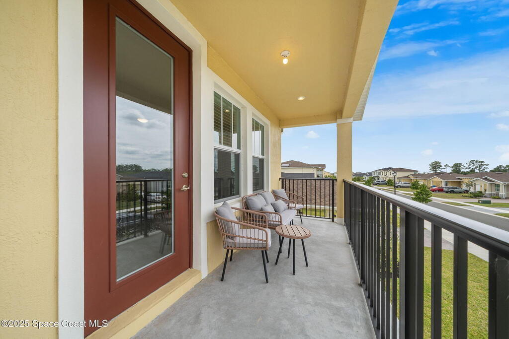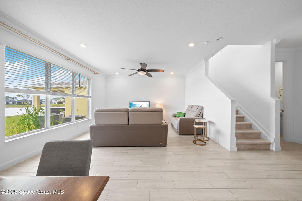 Move-in ready Carlisle Model by Lennar located in a fully built gated community on a premium waterfront lot. This two-story home offers 4 bedrooms, 3 bathrooms, 2,610 sq. ft. of living space, plus an upstairs loft and a first-floor flex room with closet that can serve as a 5th bedroom or office Features include a screened-in patio, private balcony with water views, custom primary closet, whole-house water filtration system, impact-resistant windows, 8-foot interior doors, and concrete block construction. The open kitchen is upgraded with quartz countertops and 42'' cabinets.Community amenities include a gated entrance, resort-style pool, and professionally maintained landscaping.Available since September 8th. Interested in scheduling a showing. Please contact me at 321-467-8445. Application link: https://apply.link/r7ny0kE