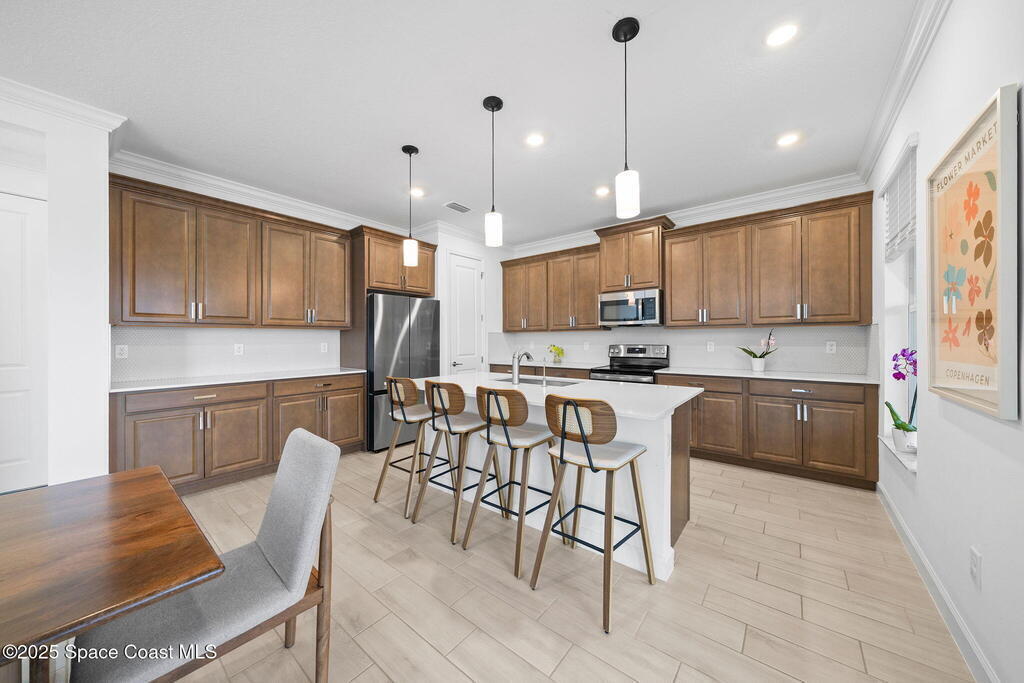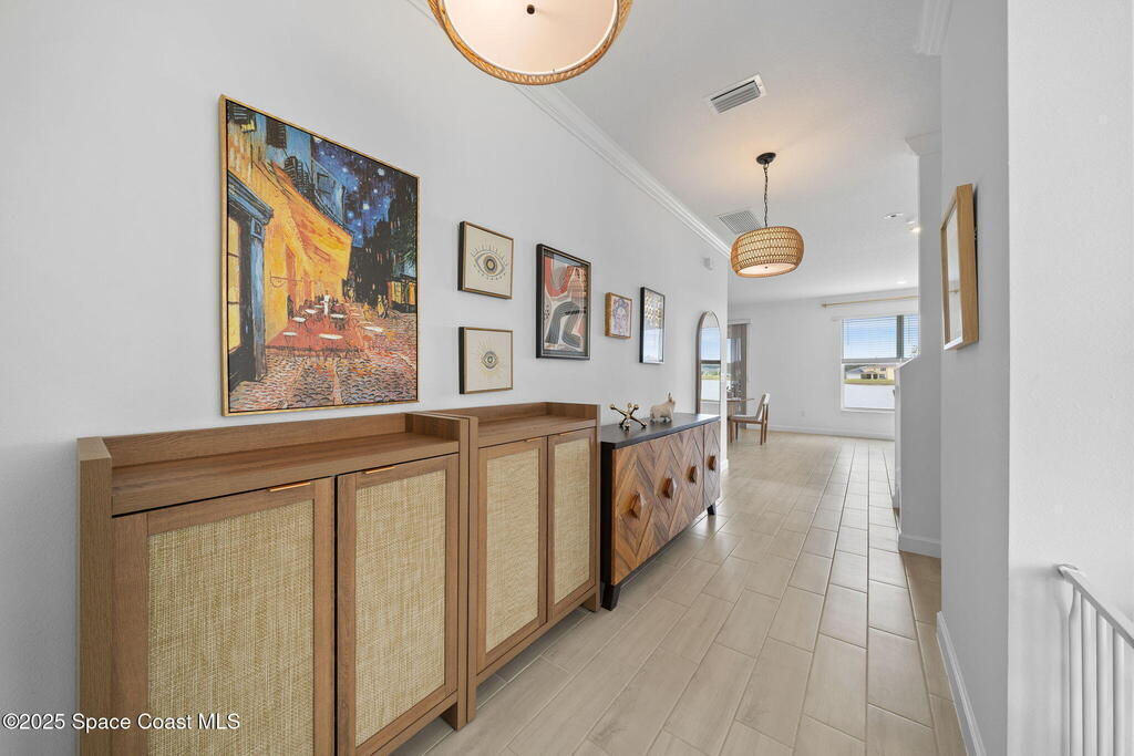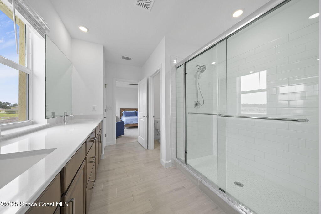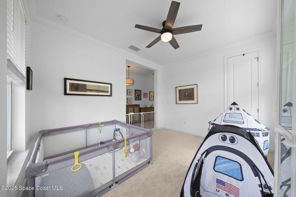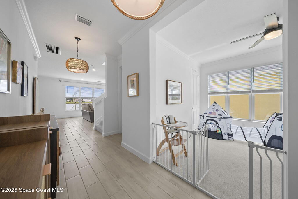 Move-in ready Carlisle Model by Lennar located in a fully built gated community on a premium waterfront lot. This two-story home offers 4 bedrooms, 3 bathrooms, 2,610 sq. ft. of living space, plus an upstairs loft and a first-floor flex room with closet that can serve as a 5th bedroom or office Features include a screened-in patio, private balcony with water views, custom primary closet, whole-house water filtration system, impact-resistant windows, 8-foot interior doors, and concrete block construction. The open kitchen is upgraded with quartz countertops and 42'' cabinets.Community amenities include a gated entrance, resort-style pool, and professionally maintained landscaping.Available since September 8th. Interested in scheduling a showing. Please contact me at 321-467-8445. Application link: https://apply.link/r7ny0kE
