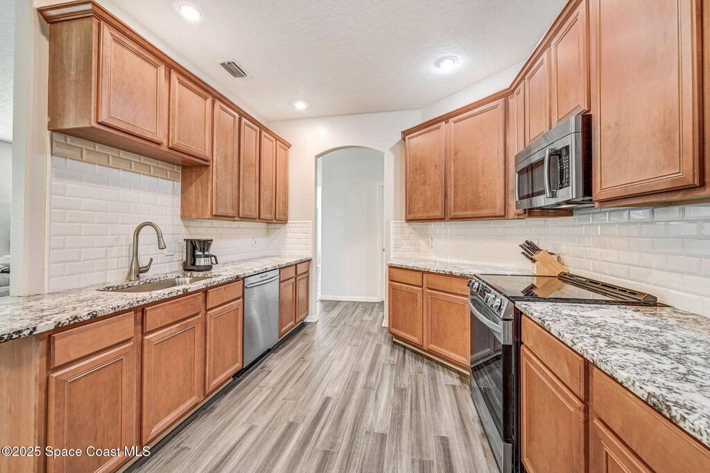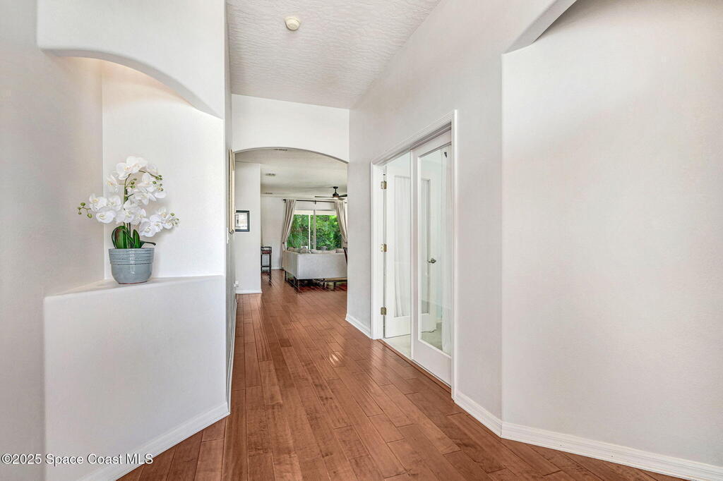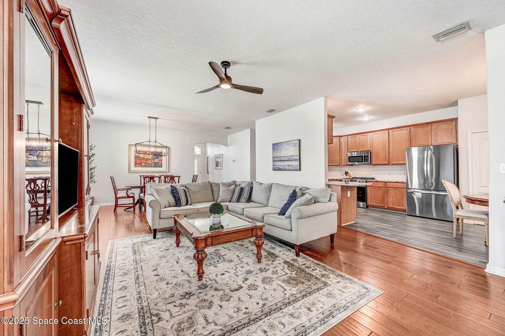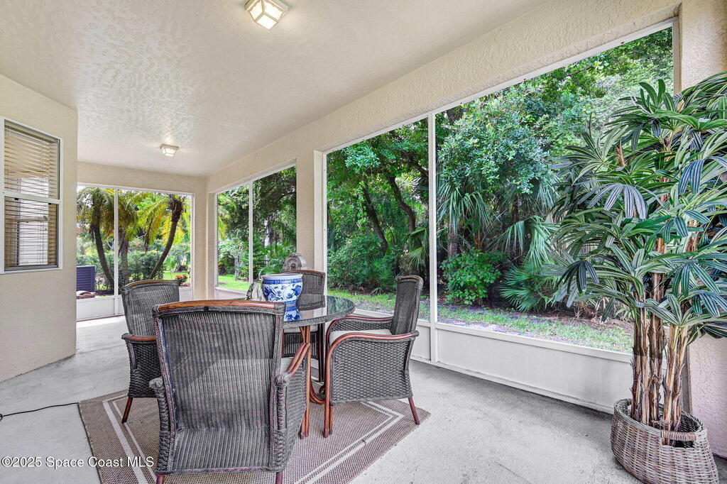 Welcome to this stunning residence in the highly sought-after Isles of Baytree, located inside the prestigious Baytree National Golf Links community. Surrounded by majestic oak trees, sparkling lakes, tranquil fountains, and scenic walking trails--including a private entrance to the Brevard Zoo--this home offers the perfect balance of luxury, comfort, and lifestyle.Step inside and experience freshly painted interiors with maple hand-scraped engineered wood floors. The dedicated dining room and eat-in kitchen with a bay window, create versatile spaces for entertaining or everyday living. The upgraded kitchen is a chef's delight, featuring granite countertops, 42'' cabinetry, newer stainless steel LG appliances (stove, and refrigerator), and thoughtful design touches that combine function and elegance.The 3-bedroom, 2-bath floor plan includes a luxurious owner's suite with a tray ceiling, double sinks, a spa-inspired soaking tub, a walk-in shower with stone
