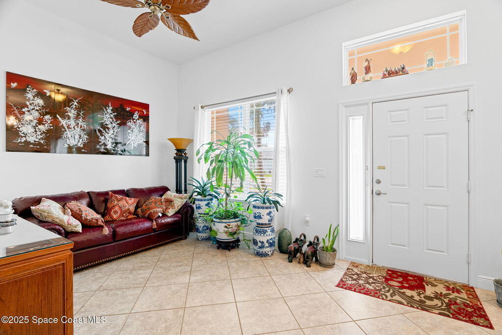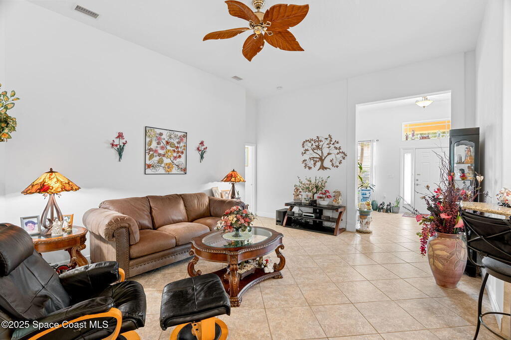 Gorgeous 4/3/2 home with upgrades galore. Tile throughout. Kitchen has granite counters and breakfast bar. Owners suite has a huge walk-in closet, roman tub and walk in shower. Vaulted ceilings. Open floor plan. Split Bedrooms. Meticulously maintained. New A/C in 2025. Garage Screen. Beautiful yard with fruit trees and flowering trees. Do not let this one get away. Some household items may be available for purchase. Room sizes approximate. Potted plants DO NOT convey.