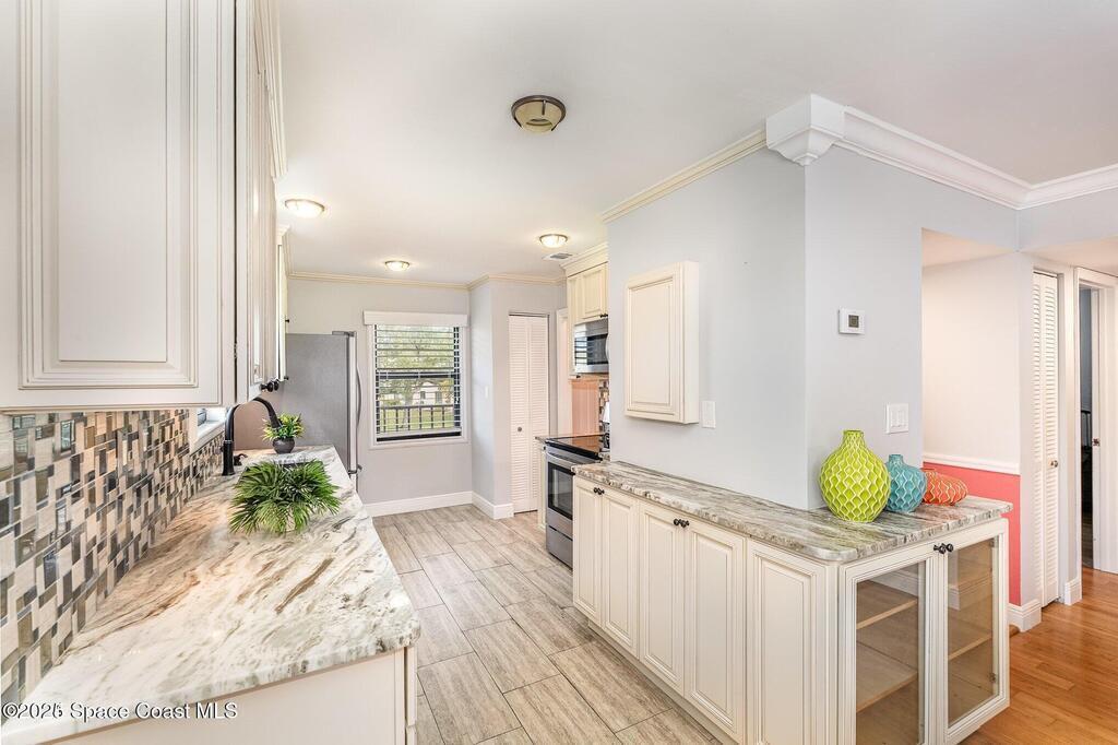Discover your dream 2-bedroom, 2-bath condo in the highly sought-after The Oaks Condominiums, located in the heart of Cape Canaveral, Florida. This stunning end-unit offers an abundance of natural light and spectacular views, with a fresh, modern touch throughout. Recently painted, the condo boasts an updated atmosphere, and a brand-new air conditioner (installed March 2024) ensures your comfort year-round. Step onto your private balcony overlooking the largest heated pool in the atrium, perfect for soaking up the Florida sun. From the front walkway, enjoy front-row seats to thrilling rocket launches and watch cruise ships depart from Port Canaveral. The riverfront complex offers exciting outdoor activities like kayaking and paddleboarding, with serene sunsets at the gazebo--where dolphins and manatees often make an appearance. This move-in-ready condo is designed with luxury and convenience in mind: porcelain tile in the kitchen and baths, bamboo flooring in the living.