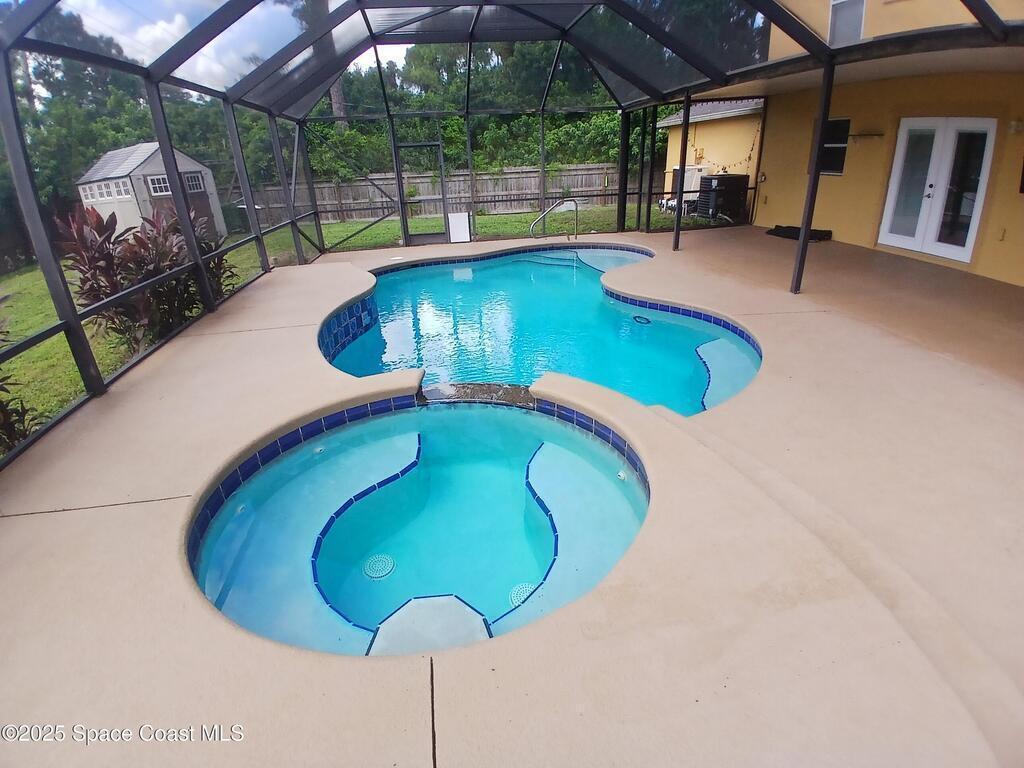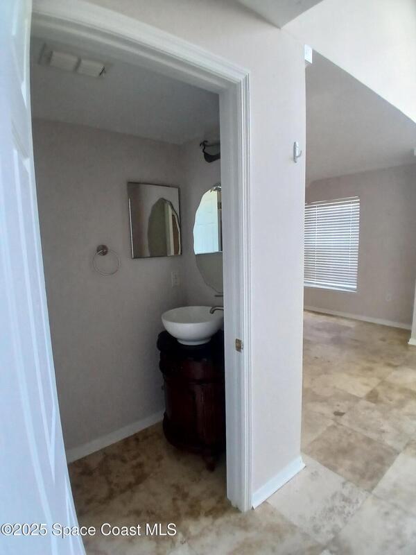 Open the door to this beautiful open air 2 story home, nestled in NE Palm Bay. Lots of natural light with a beautiful wrap around staircase. Step outback and enjoy the salt water pool, with spa. The large back patio for relaxing, while listening to the waterfall. Large open floor plan on first level, and spacious bedrooms on the second.