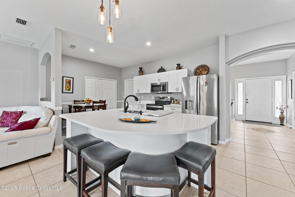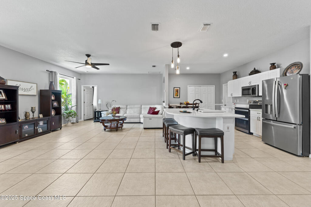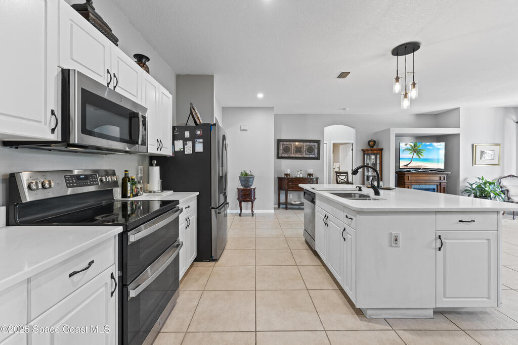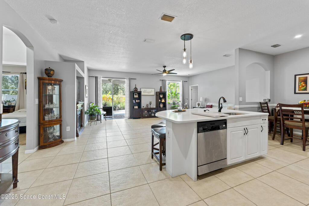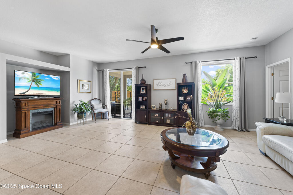 This Holiday-built home features a bright, open floor plan and a spacious family room with an entertainment alcove. Major updates include a newer roof (2020), water heater (2020), HVAC (2017), and energy-efficient Solar Zone windows (2014). Bedrooms feature updated carpet (2020), while the rest of the home offers sleek porcelain tile floors. Bathrooms have been updated.The eat-in kitchen boasts a breakfast bar and brand-new quartz countertops, flowing into the family room for easy entertaining. Outside, enjoy your newly paved back porch, perfect for relaxing or gatherings.