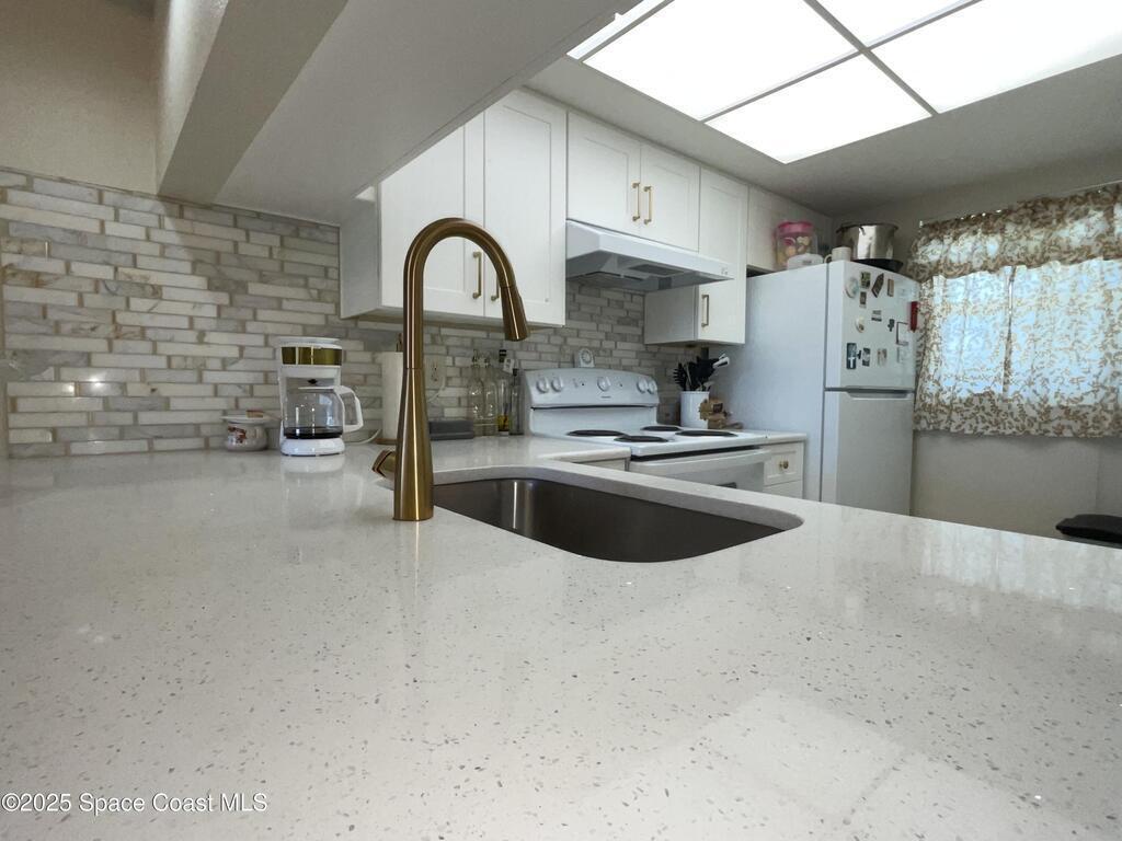 Conveniently located on corner of Knox Mcrae & Barna/Ground floor unit with parking outside your front door/Newly remodeled kitchen really brightens this unit/View from Master Bedroom-great room and rear screened patio overlooks a wide-open greenbelt/Nicely maintained pool area and laundary building practically outside your back door/Preferred showing method is ShowingTime on-line/