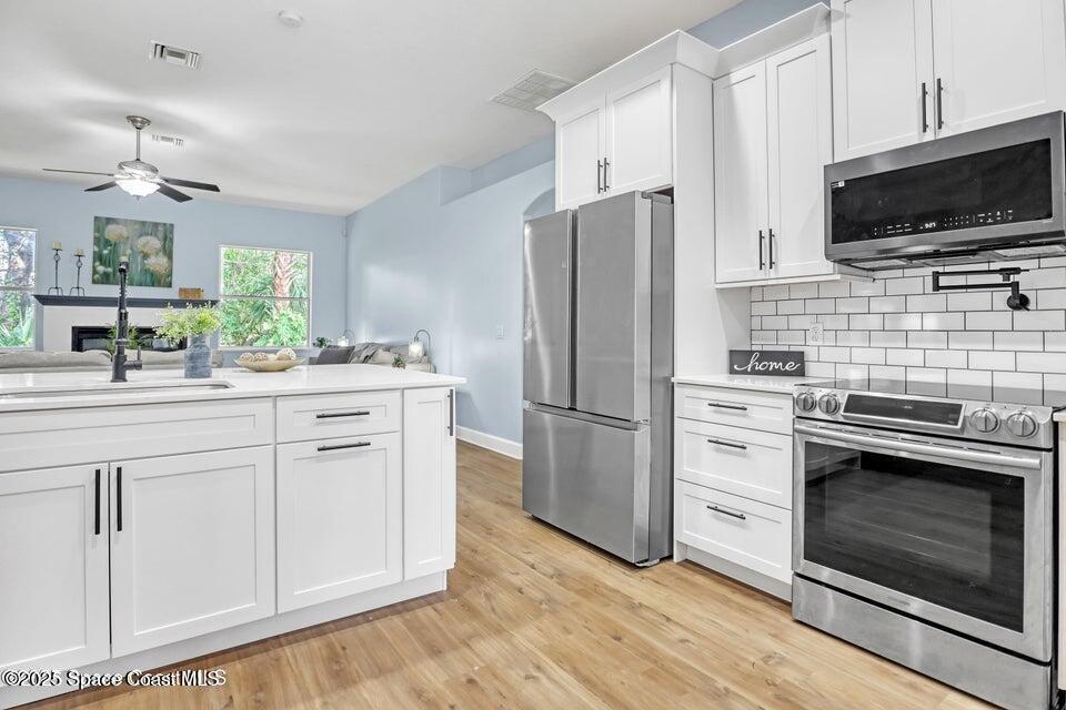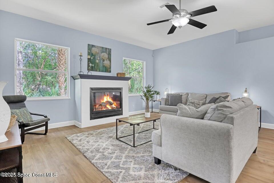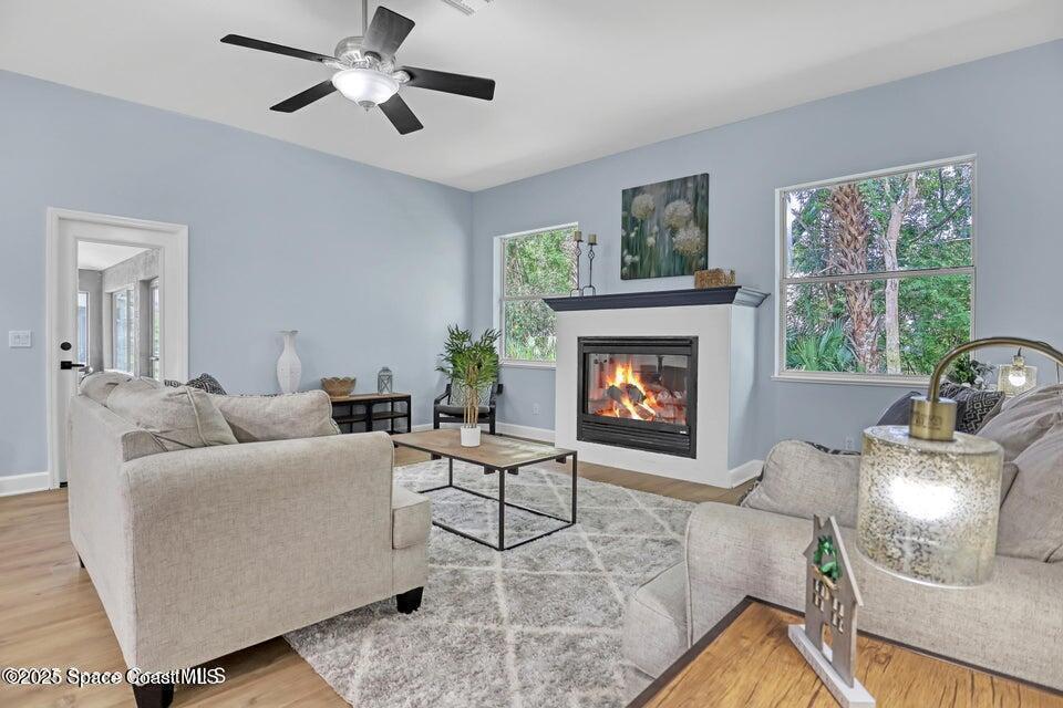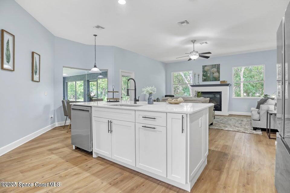 RUN don't walk to this beautifully remodeled home in the peaceful gated community of Sanctuary II. This 3bedroom 2bathroom home boast a 2025 ROOF brand-new air-conditioning system, waterproof vinyl flooring throughout. The DREAMY oversized master suite offering back porch access, and a spa like bathroom complete with a deep soaking tub! There are 2 living spaces, one of which could be used as an office or play area. Beautiful formal dining and breakfast bar overlooking a bay window. The living space off the kitchen offers a charming gas fireplace. Dedicated laundry space making chores a breeze. Brand new all plywood kitchen cabinets and quartz countertops. Windows are rated for up 140 MPH winds. Freshly painted inside and out, water heater is only a few years old. Home also offers reclaimed water to keep your yard looking green. This is a must see to appreciate all this home has to offer!