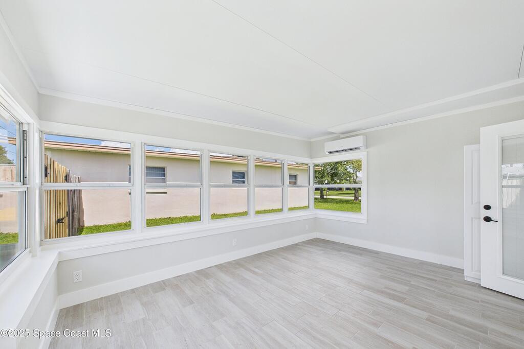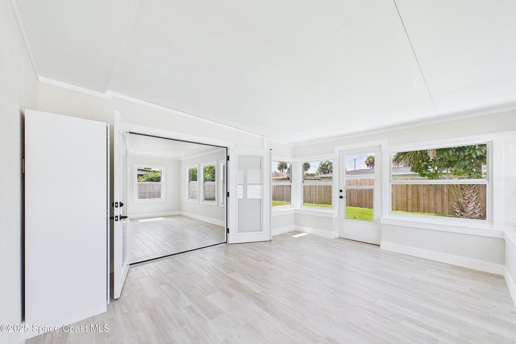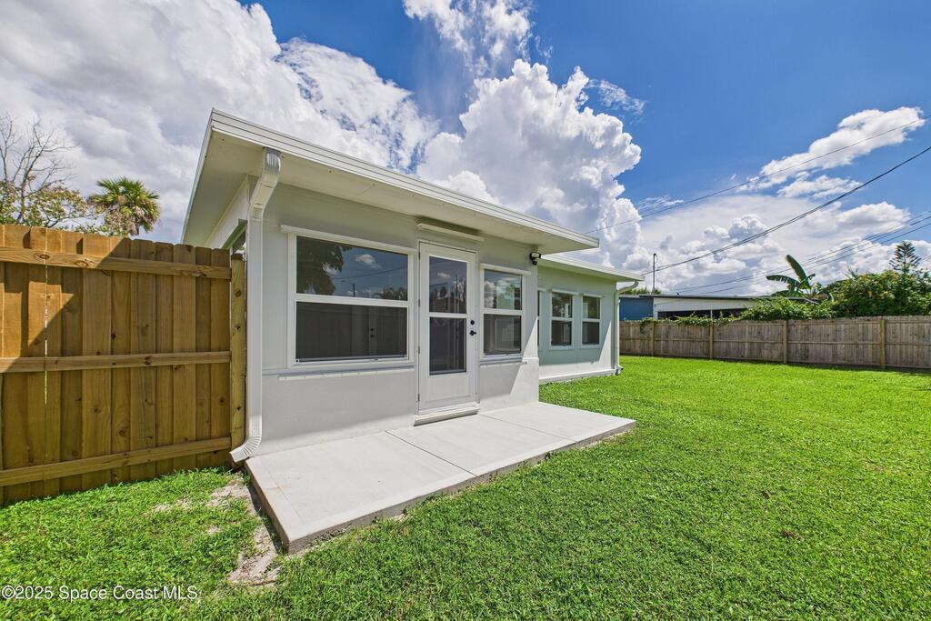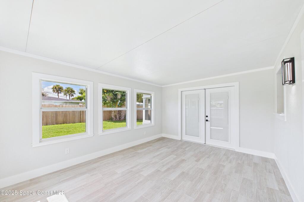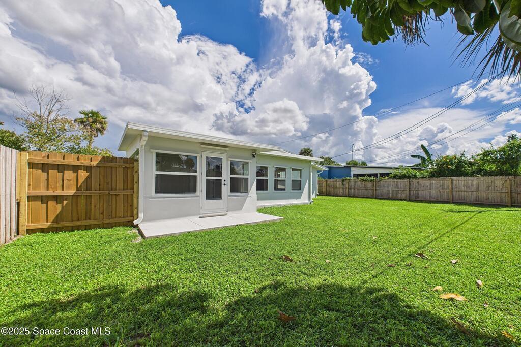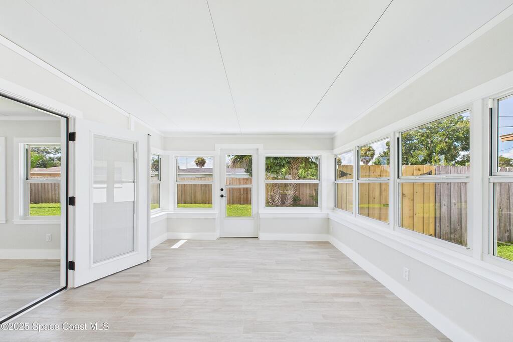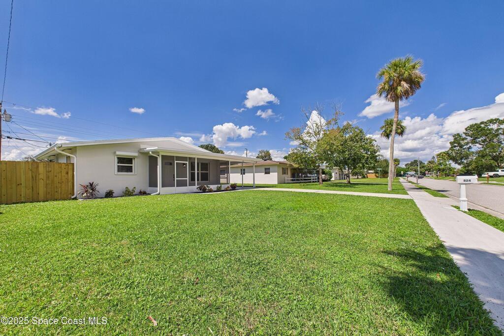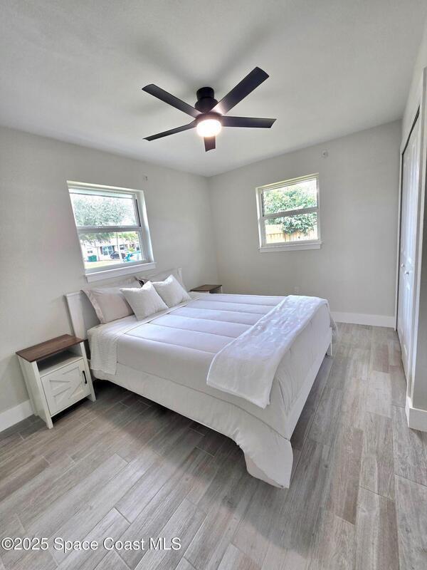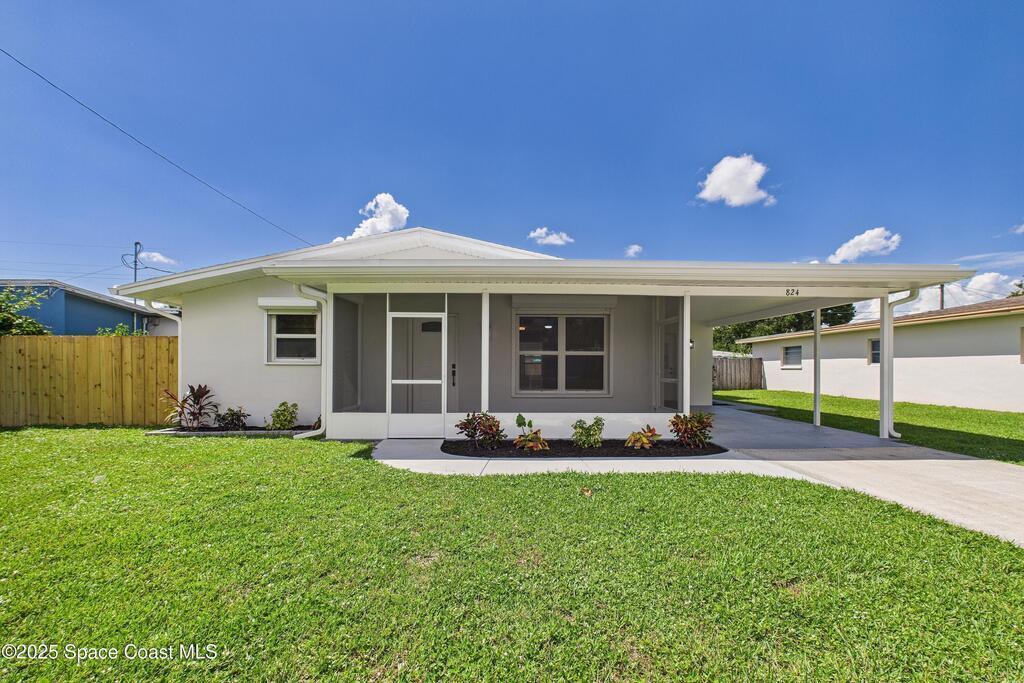 Step into this fully renovated 3-bedroom, 1-bath home featuring a flexible bonus room and a bedroom with its own Mini-Split unit and private entrance--perfect as a guest suite, home office, or creative space. French doors with built-in blinds add style and privacy. Completely renovated in 2025, this 1,295 sq ft home offers a new roof, impact windows with roller shutters, HVAC with new ductwork, and upgraded electrical panels. The brand-new kitchen shines with quartz countertops, sleek cabinetry, and stainless steel appliances, plus a spacious laundry room with a new water heater, washer, and dryer. Porcelain tile flooring, fresh paint inside and out, a screened porch, and updated gutters add to the move-in ready appeal. Enjoy a fully fenced backyard and covered carport, all just 10 minutes to beaches and close to shopping and dining!