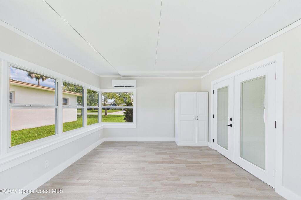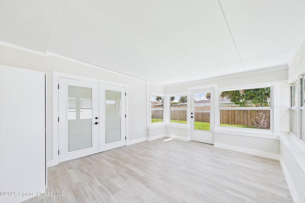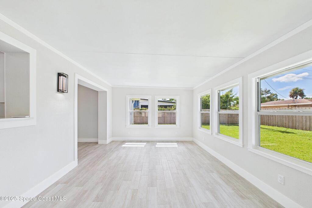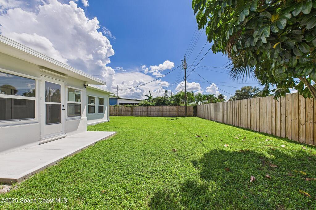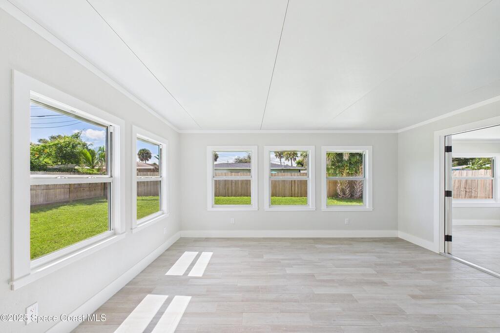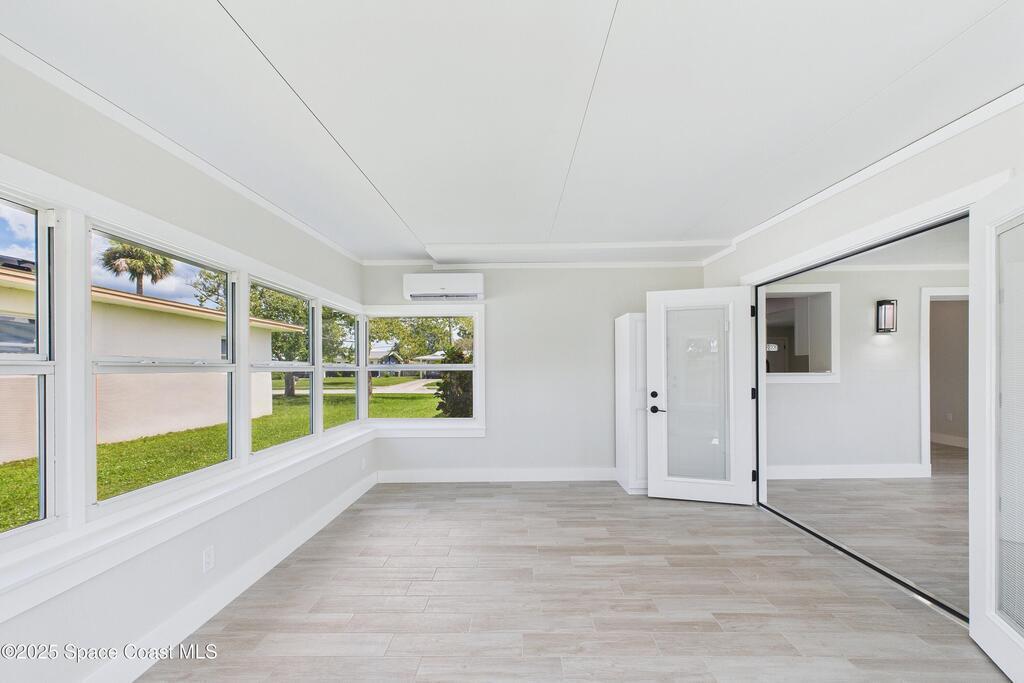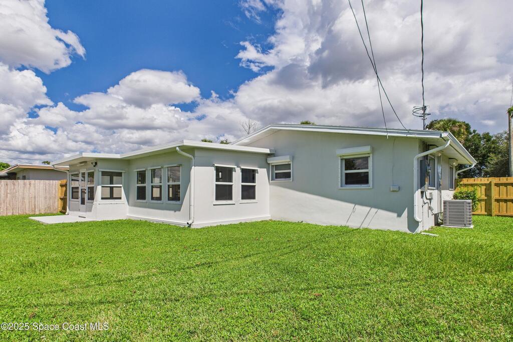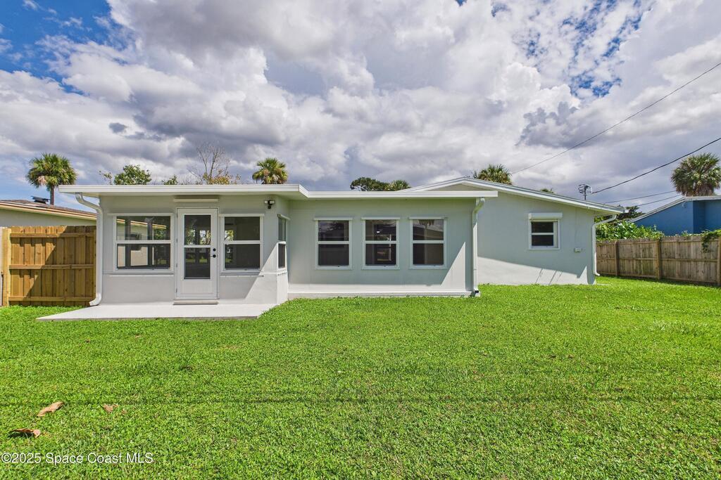 Step into this fully renovated 3-bedroom, 1-bath home featuring a flexible bonus room and a bedroom with its own Mini-Split unit and private entrance--perfect as a guest suite, home office, or creative space. French doors with built-in blinds add style and privacy. Completely renovated in 2025, this 1,295 sq ft home offers a new roof, impact windows with roller shutters, HVAC with new ductwork, and upgraded electrical panels. The brand-new kitchen shines with quartz countertops, sleek cabinetry, and stainless steel appliances, plus a spacious laundry room with a new water heater, washer, and dryer. Porcelain tile flooring, fresh paint inside and out, a screened porch, and updated gutters add to the move-in ready appeal. Enjoy a fully fenced backyard and covered carport, all just 10 minutes to beaches and close to shopping and dining!