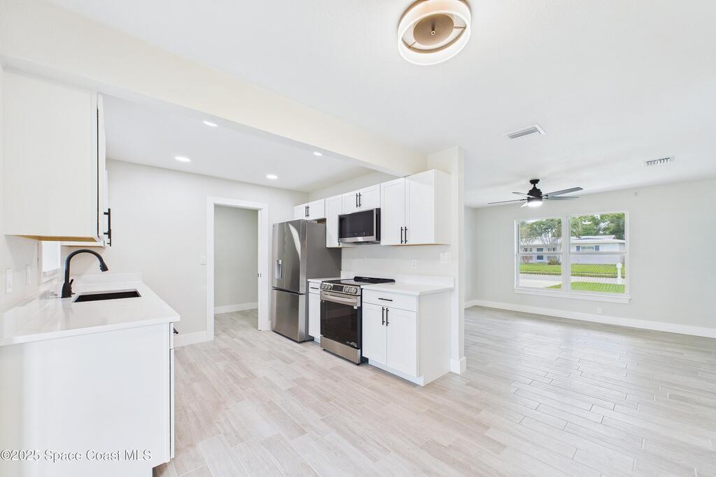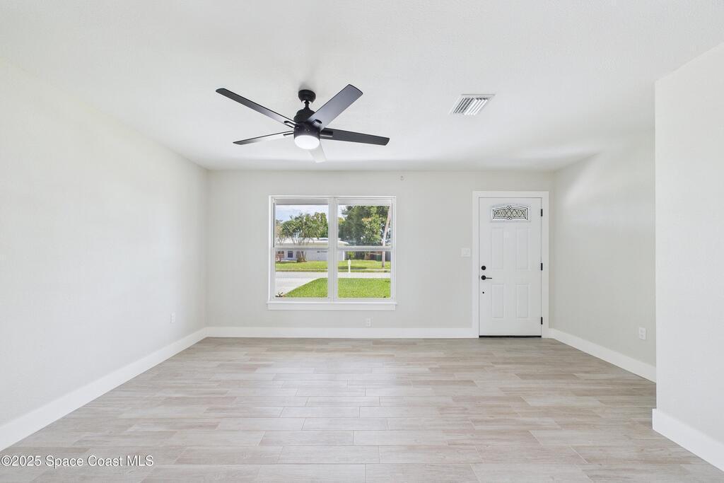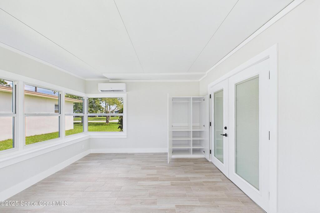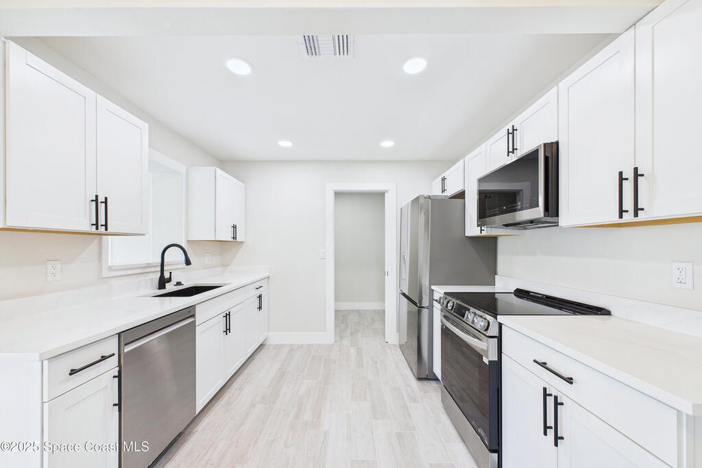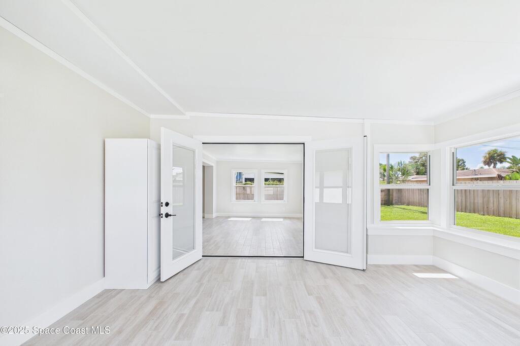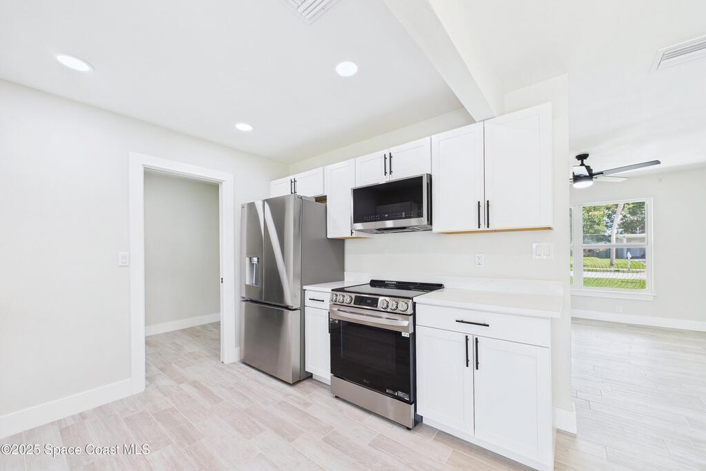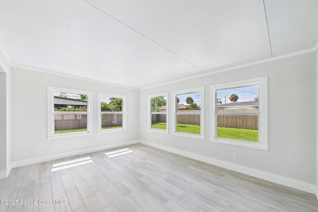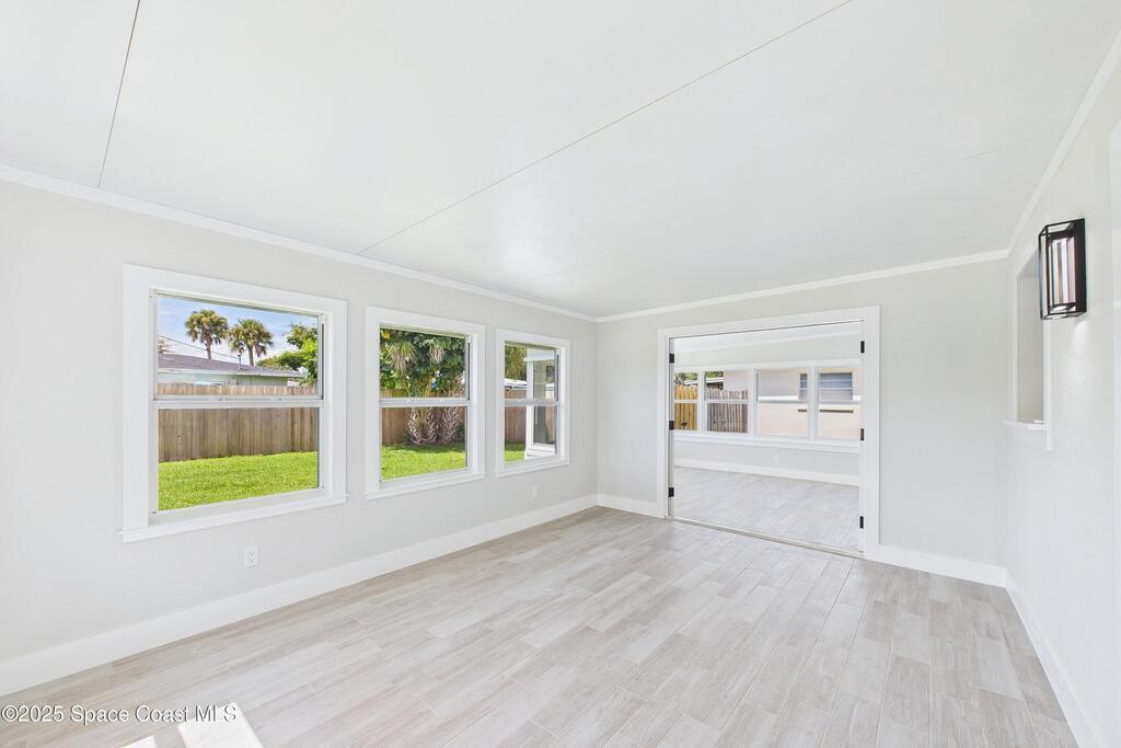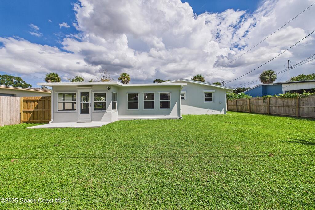 Step into this fully renovated 3-bedroom, 1-bath home featuring a flexible bonus room and a bedroom with its own Mini-Split unit and private entrance--perfect as a guest suite, home office, or creative space. French doors with built-in blinds add style and privacy. Completely renovated in 2025, this 1,295 sq ft home offers a new roof, impact windows with roller shutters, HVAC with new ductwork, and upgraded electrical panels. The brand-new kitchen shines with quartz countertops, sleek cabinetry, and stainless steel appliances, plus a spacious laundry room with a new water heater, washer, and dryer. Porcelain tile flooring, fresh paint inside and out, a screened porch, and updated gutters add to the move-in ready appeal. Enjoy a fully fenced backyard and covered carport, all just 10 minutes to beaches and close to shopping and dining!