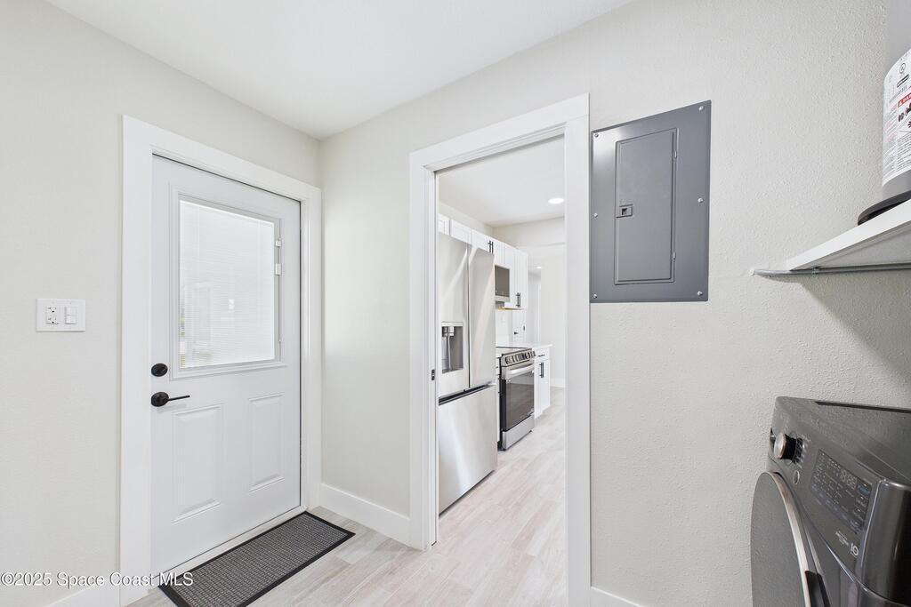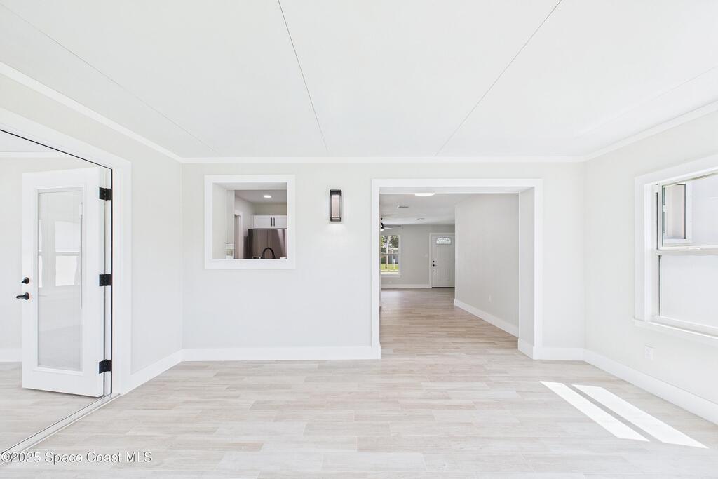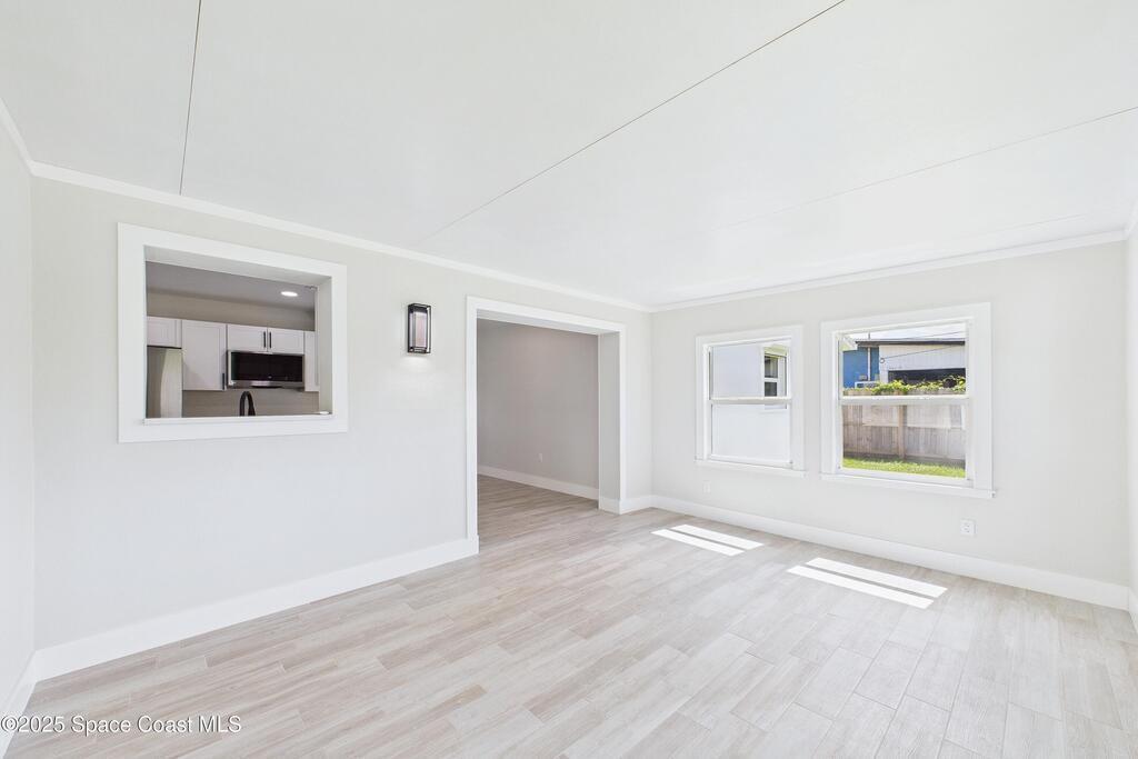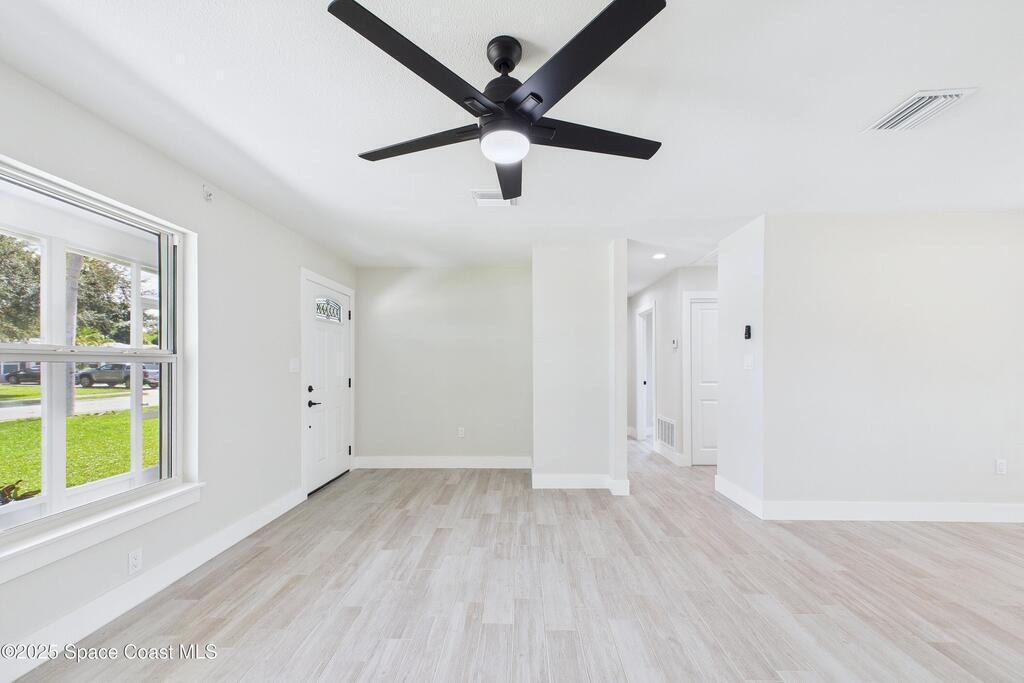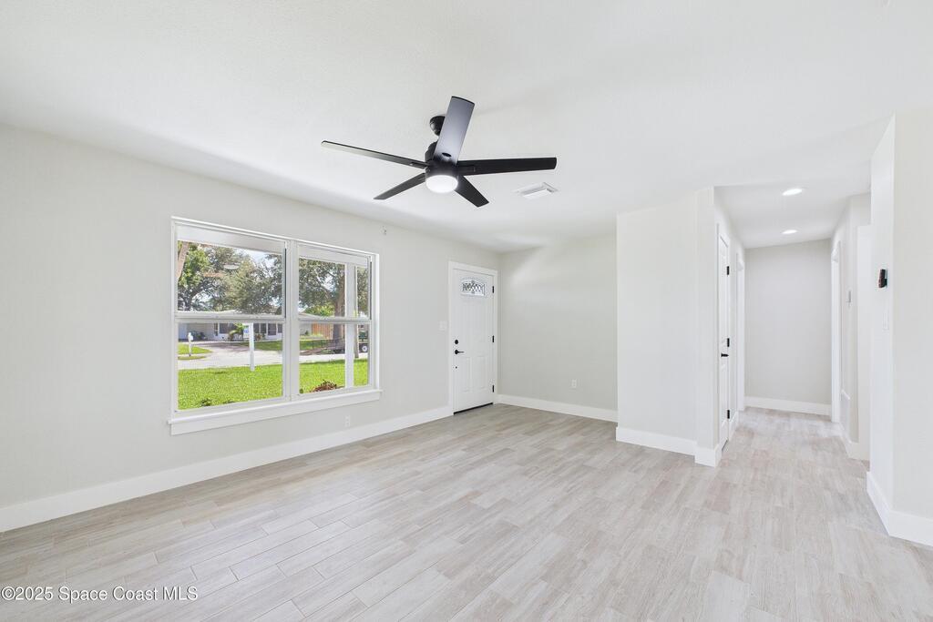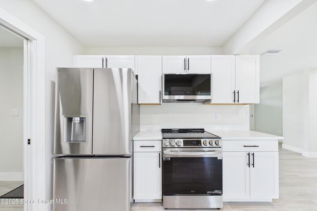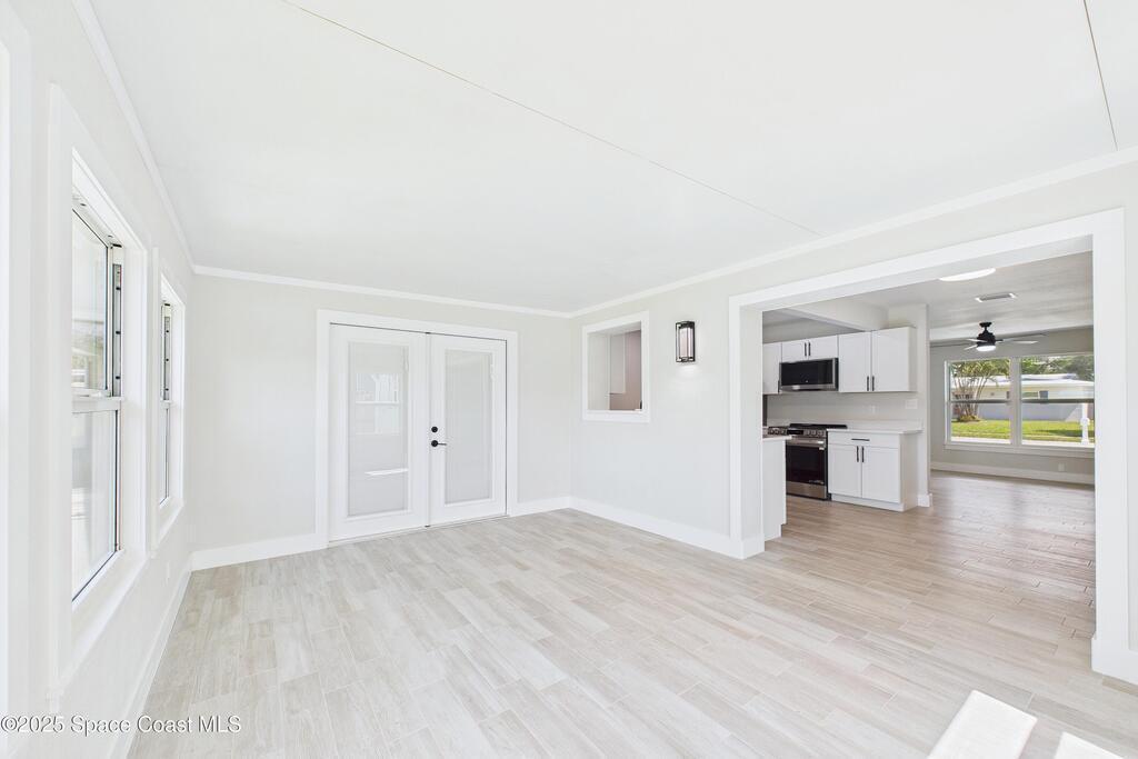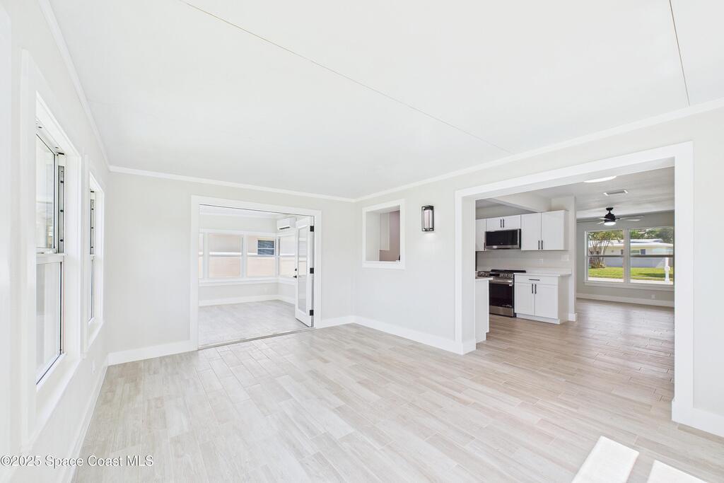 Step into this fully renovated 3-bedroom, 1-bath home featuring a flexible bonus room and a bedroom with its own Mini-Split unit and private entrance--perfect as a guest suite, home office, or creative space. French doors with built-in blinds add style and privacy. Completely renovated in 2025, this 1,295 sq ft home offers a new roof, impact windows with roller shutters, HVAC with new ductwork, and upgraded electrical panels. The brand-new kitchen shines with quartz countertops, sleek cabinetry, and stainless steel appliances, plus a spacious laundry room with a new water heater, washer, and dryer. Porcelain tile flooring, fresh paint inside and out, a screened porch, and updated gutters add to the move-in ready appeal. Enjoy a fully fenced backyard and covered carport, all just 10 minutes to beaches and close to shopping and dining!