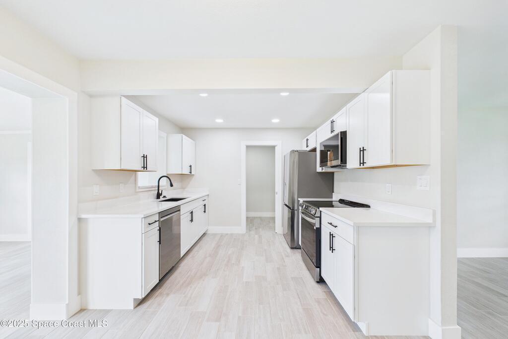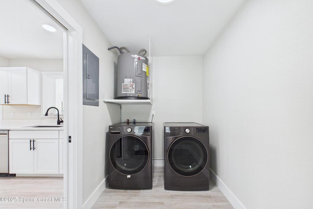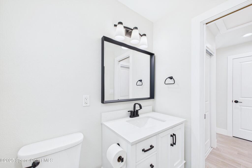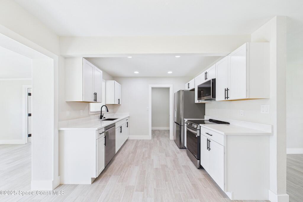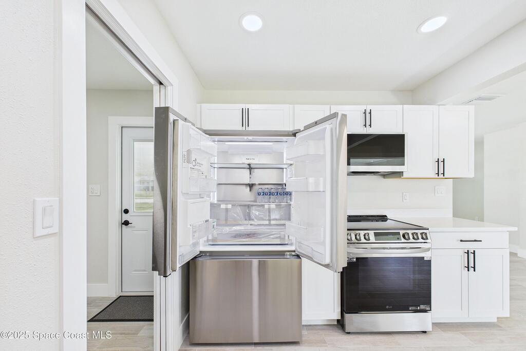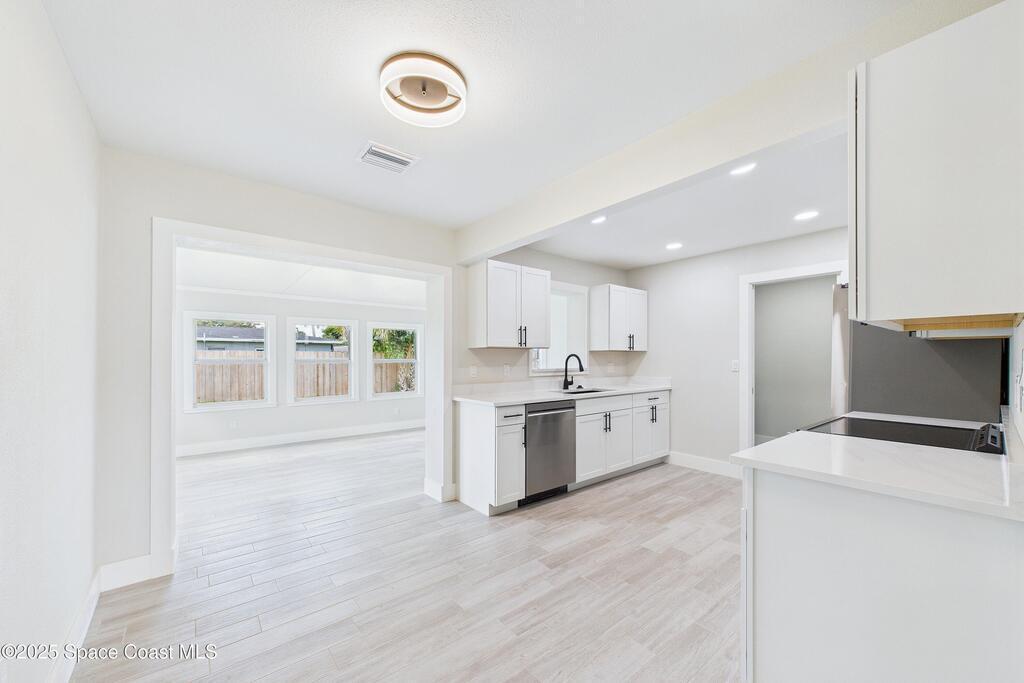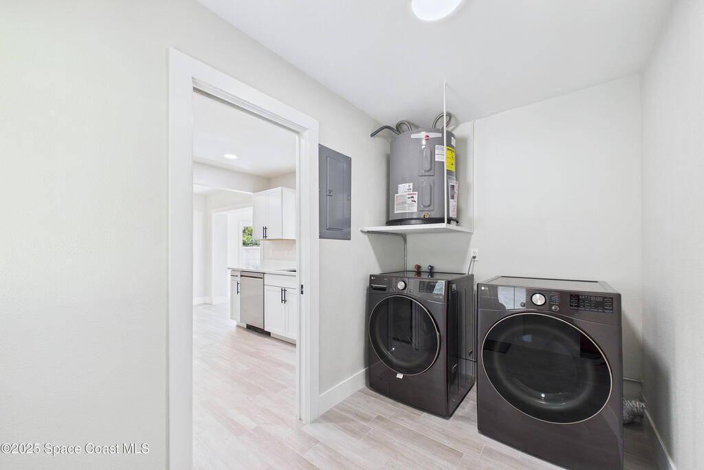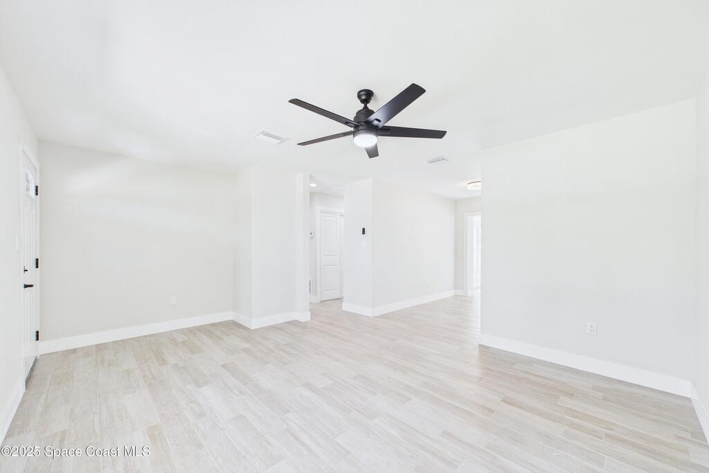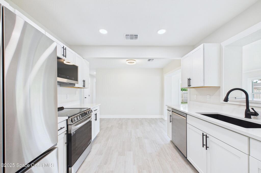 Step into this fully renovated 3-bedroom, 1-bath home featuring a flexible bonus room and a bedroom with its own Mini-Split unit and private entrance--perfect as a guest suite, home office, or creative space. French doors with built-in blinds add style and privacy. Completely renovated in 2025, this 1,295 sq ft home offers a new roof, impact windows with roller shutters, HVAC with new ductwork, and upgraded electrical panels. The brand-new kitchen shines with quartz countertops, sleek cabinetry, and stainless steel appliances, plus a spacious laundry room with a new water heater, washer, and dryer. Porcelain tile flooring, fresh paint inside and out, a screened porch, and updated gutters add to the move-in ready appeal. Enjoy a fully fenced backyard and covered carport, all just 10 minutes to beaches and close to shopping and dining!