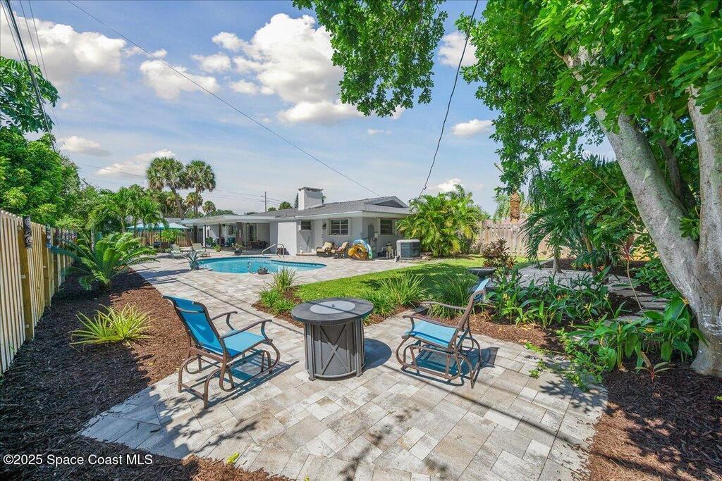 Live on the island in this beautiful mini-resort on Bahama Drive! This incredible home on an oversized .31 acre lot has everything you're looking for! Updated with 3 bedrooms and 2 baths with a separate laundry room and pantry. Relax besides the electric fireplace with a drybar and wine fridge. Enjoy a custom tropical landscaped backyard with heated pool. Newly refreshed oversized back patio with a new epoxy surface. Hurricane accordion shutters, 2 hot water heaters, recessed lighting, sky lights and plenty of room on the side of house for a boat or RV. In the heart of Indialantic only minutes walk from the beach and river. This neighborhood has top rated schools and a new Publix, restaurants and shopping center 6 blocks away on A1A with everything you need! Roof 2019, HVAC 2022, Water Heaters 2024/2025. New backyard cedar wooden fence 2025This home is turn key, come have a look and start living the island life!