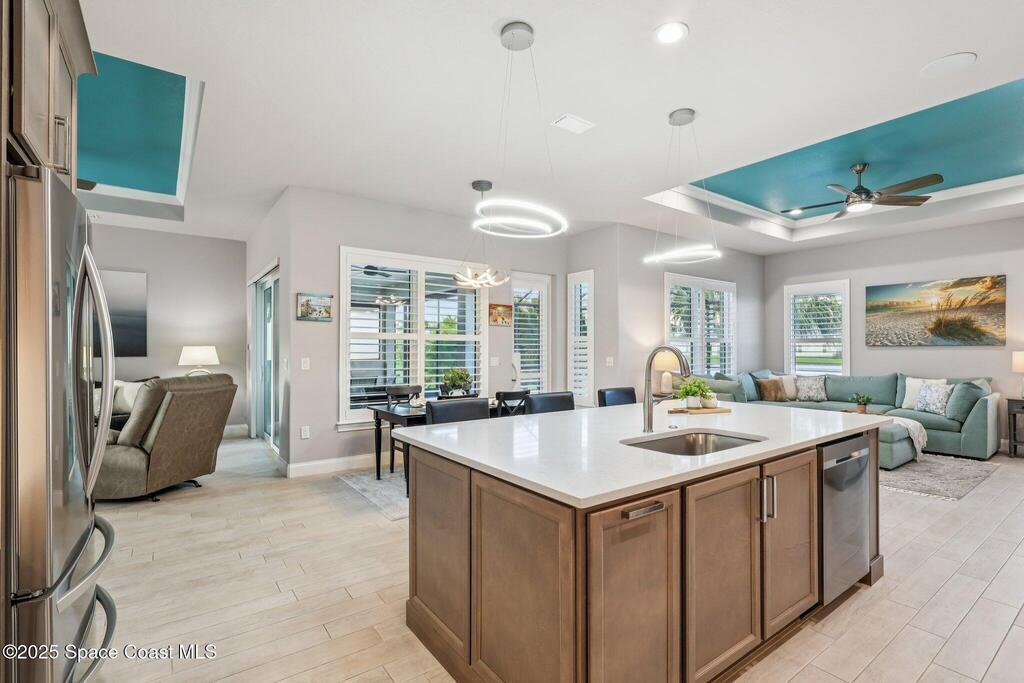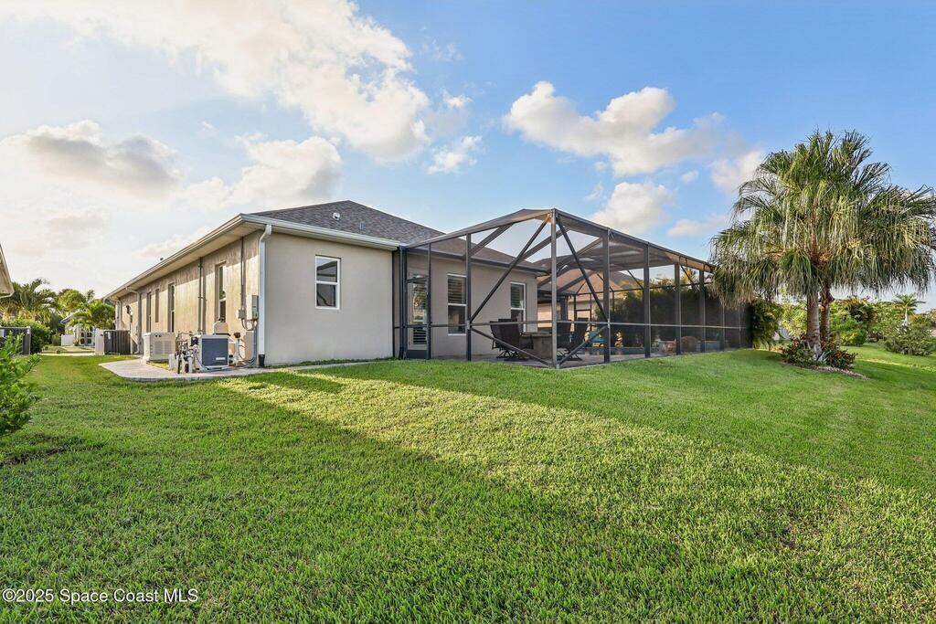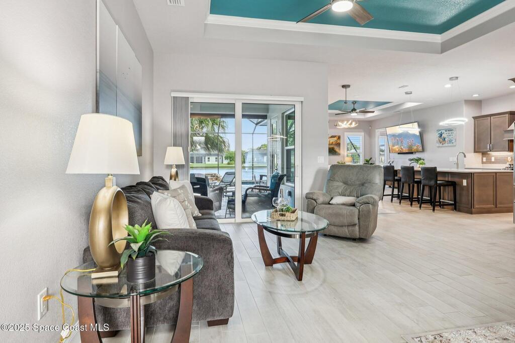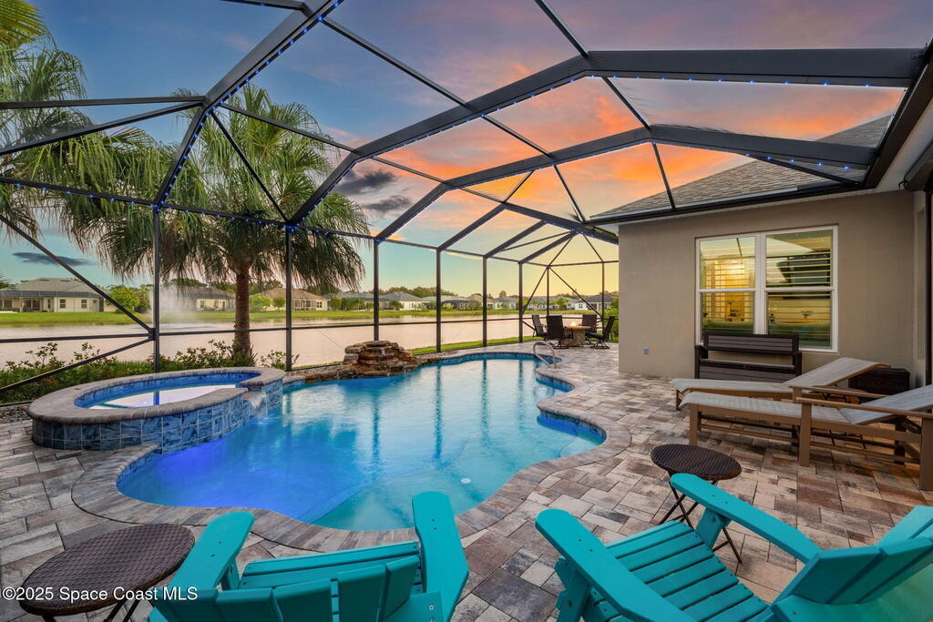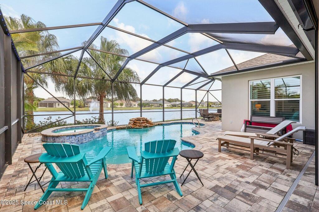 This custom-built 4-bedroom, 3-bathroom lakefront home offers resort-style living with modern luxury and peace of mind. Nearly every room enjoys tranquil water views, while the screened saltwater pool with gas heat, paver patio, and full summer kitchen create the perfect setting for entertaining year-round. Inside, quartz countertops, a gas stove, water heater, and premium finishes highlight thoughtful design and quality. Impact glass windows, hurricane screens on the lanai, a whole-home generator, LED lighting, and a full gutter system provide comfort and security in every season. Ten-foot ceilings with elegant tray details and open living spaces fill the home with light, while the pergola-covered entry offers a cozy spot for morning coffee. With city water, sewer, natural gas, and energy-efficient construction, this home is as functional as it is beautiful--a seamless blend of craftsmanship, Florida lifestyle, and everyday convenience.