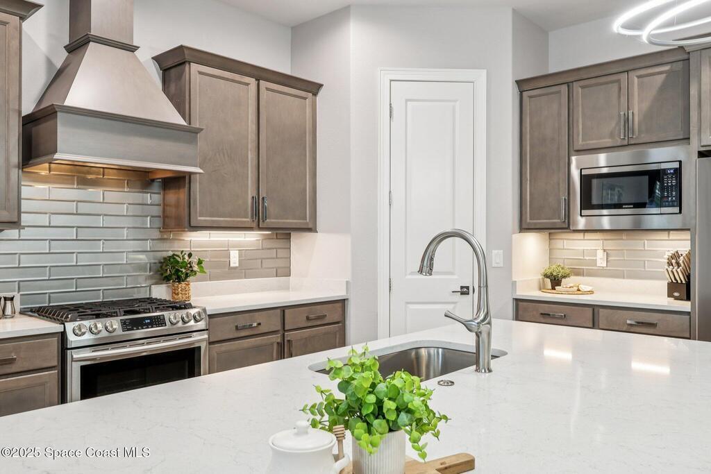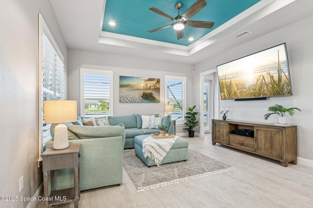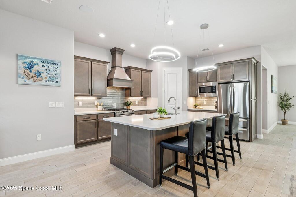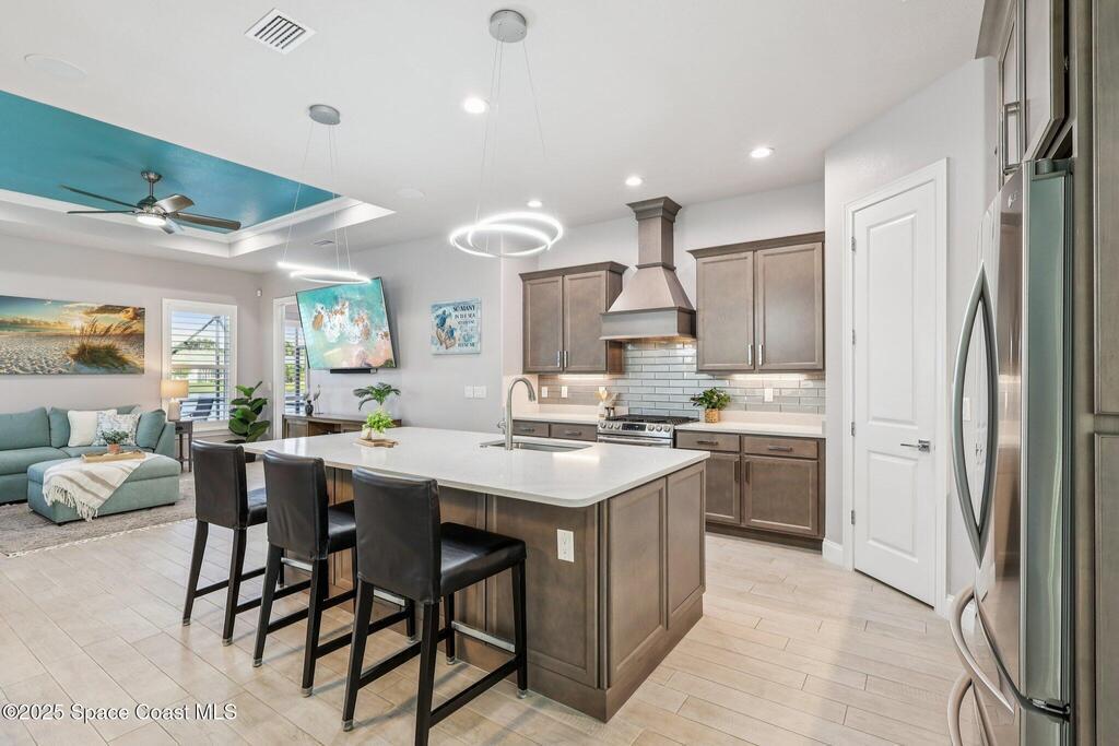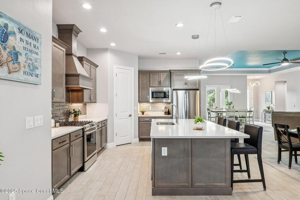 This custom-built 4-bedroom, 3-bathroom lakefront home offers resort-style living with modern luxury and peace of mind. Nearly every room enjoys tranquil water views, while the screened saltwater pool with gas heat, paver patio, and full summer kitchen create the perfect setting for entertaining year-round. Inside, quartz countertops, a gas stove, water heater, and premium finishes highlight thoughtful design and quality. Impact glass windows, hurricane screens on the lanai, a whole-home generator, LED lighting, and a full gutter system provide comfort and security in every season. Ten-foot ceilings with elegant tray details and open living spaces fill the home with light, while the pergola-covered entry offers a cozy spot for morning coffee. With city water, sewer, natural gas, and energy-efficient construction, this home is as functional as it is beautiful--a seamless blend of craftsmanship, Florida lifestyle, and everyday convenience.