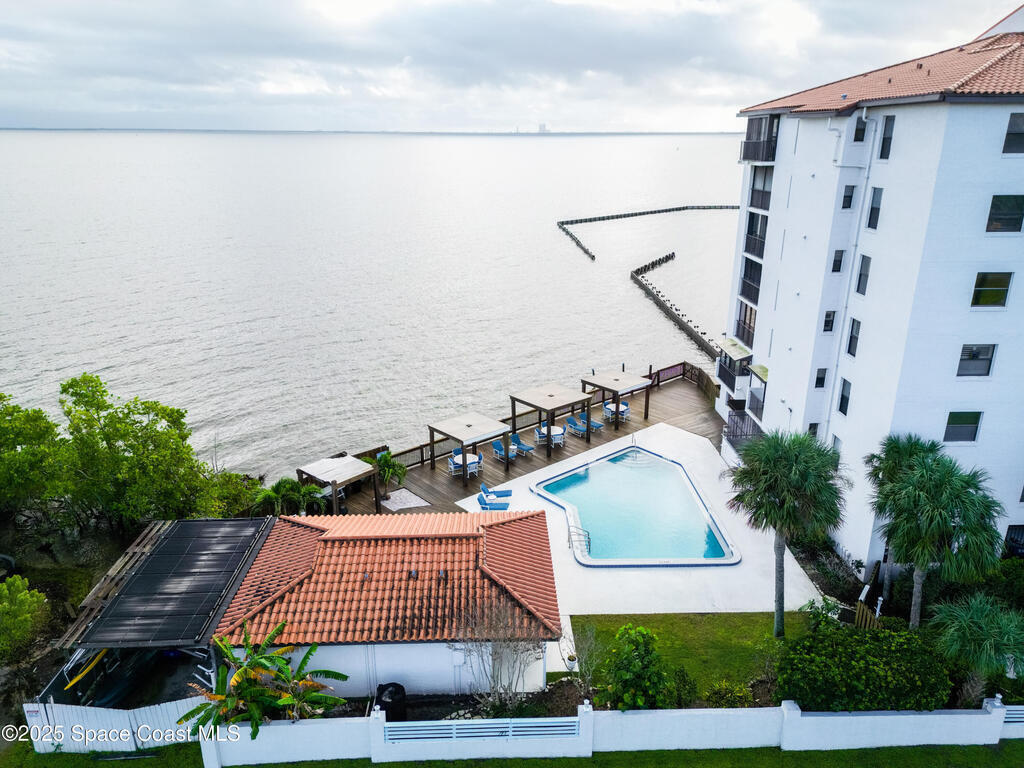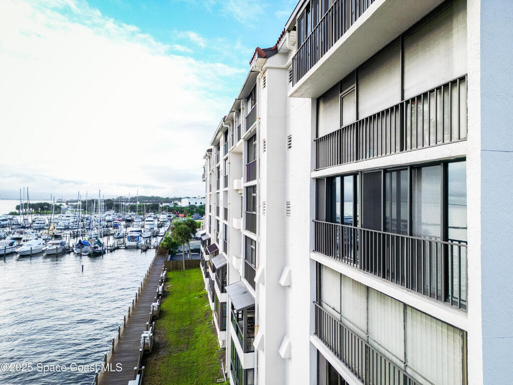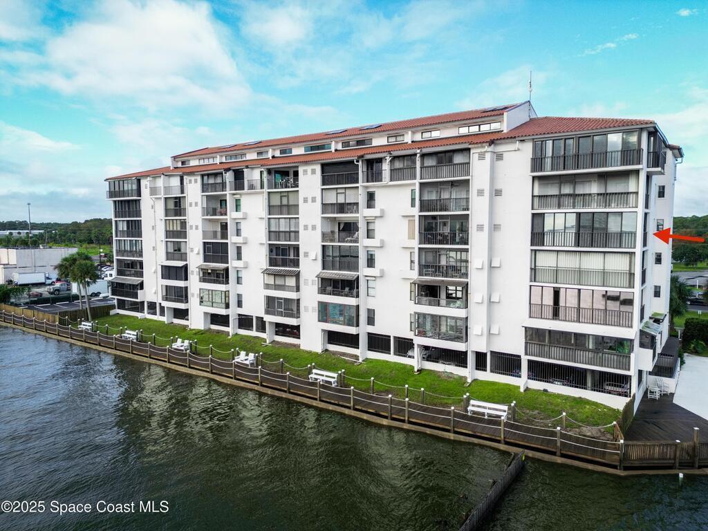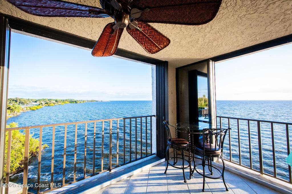 Check out this gorgeous waterfront condo! Experience relaxing, waterfront living in this beautifully updated 3 bedroom, 2 bathroom condo on the 4th floor, offering panoramic views of the Indian River and direct front row seats to rocket launches from the Space Center just across the water. This fully furnished North end unit features a spacious layout, modern finishes. Front Bedroom has a Murphy Bed that pulls out to a Queen. The glass hurricane proof sliding doors allow you to enclose/air-condition the balcony; perfect for year-round comfort and enjoying the view. Ideally located just off US-1 with quick access to I-95, you're only minutes from Cocoa Beach and local amenities. Whether you're looking for a primary residence or vacation home this move in ready gem offers the best of Florida's Space Coast lifestyle.***New roof about to be completed, 2022 A/C, updated electrical panel