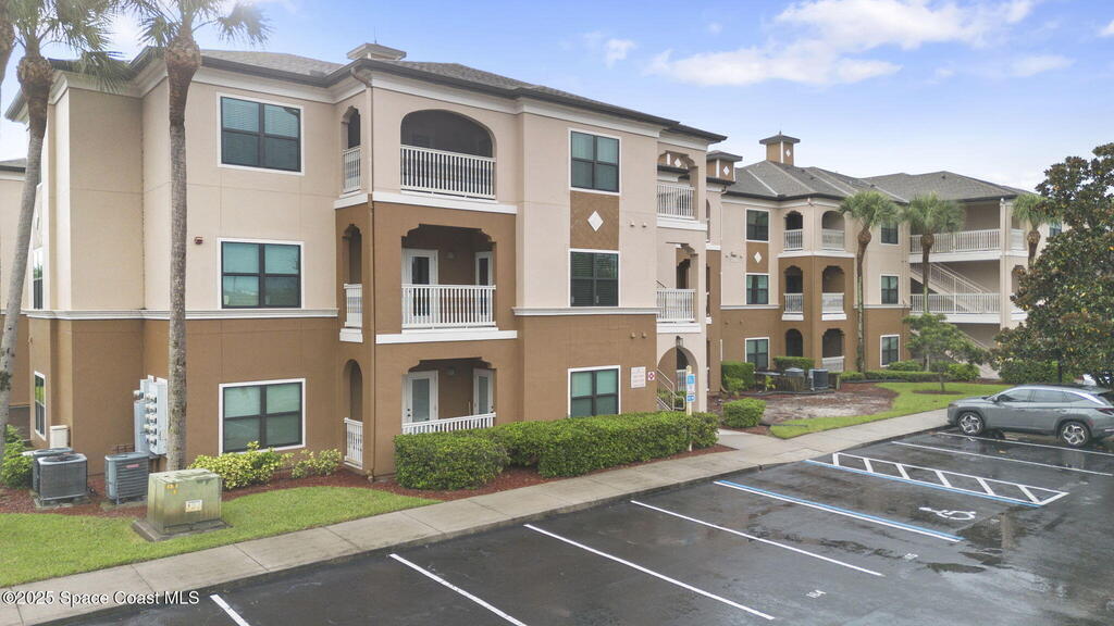 Amazing Viera Condo! Live a vacation Lifestyle in the Heart of Viera!Discover this beautifully updated 3-bedroom, 2-bath second-floor condo located in the highly sought-after gated community of Three Fountains. This home shines with a smart split floor plan designed for comfort and privacy, and boasts new hurricane-impact doors and windows for peace of mind year-round.The modern kitchen features granite countertops and opens to a spacious living and dining area--perfect for entertaining or cozy nights in. A dedicated laundry space comes complete with a washer, dryer, and built-in cabinets for extra storage.Step out onto the private balcony from either the living room or the primary suite to enjoy the gentle Florida breeze and morning coffee with a view. Both the primary and a second bedroom features soft carpeting and walk-in closets, creating an inviting and relaxing retreat.Brand new ac in 2021!
