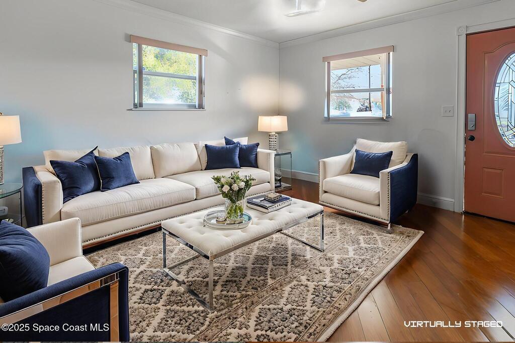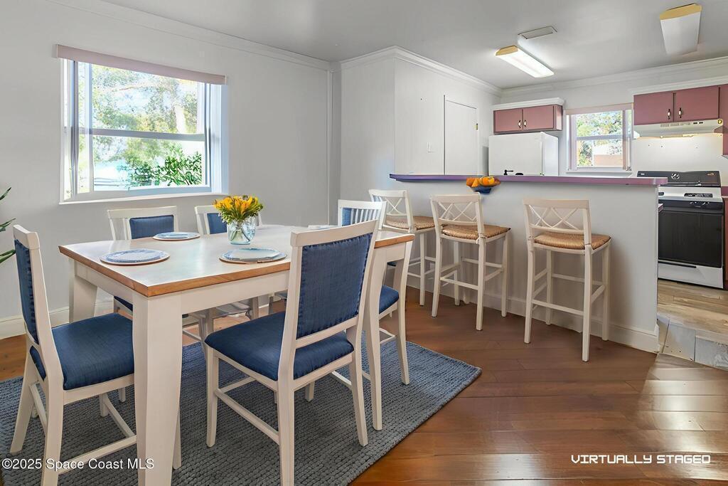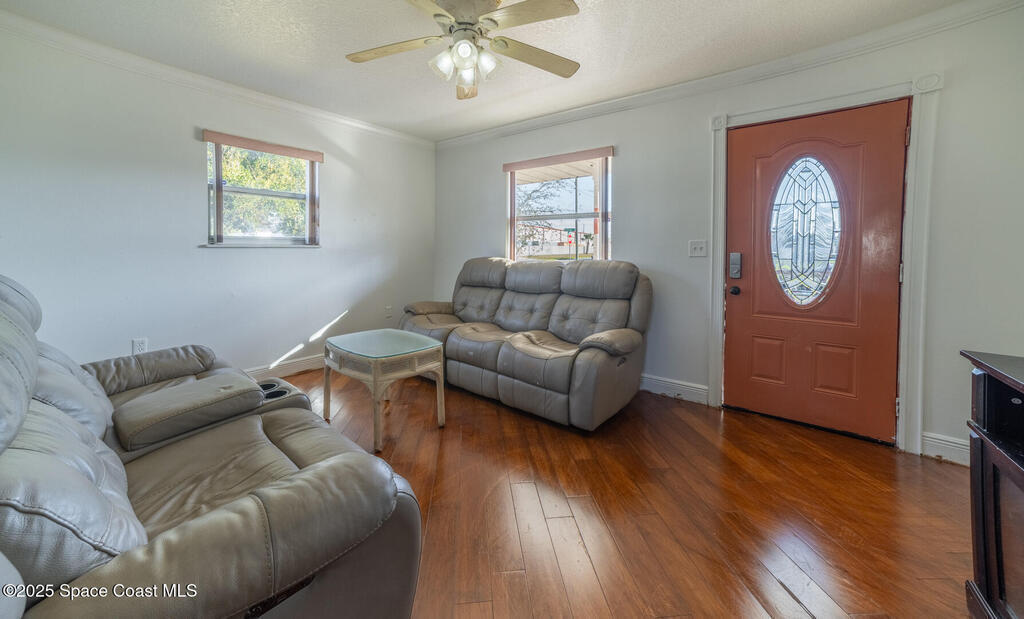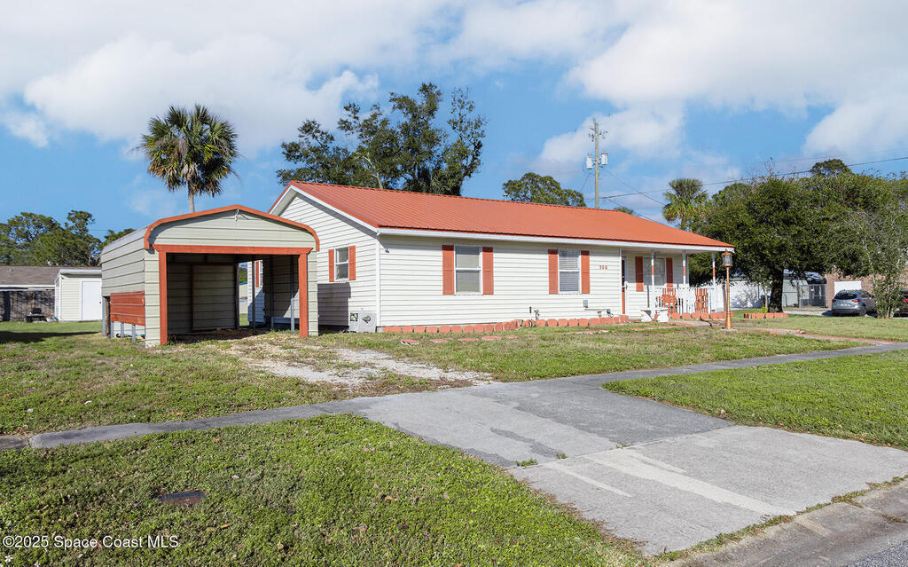 Welcome to this charming 4-bedroom, 2 bathroom home in the heart of Titusville! With an open-concept kitchen and living space, this home offers a seamless flow, ideal for entertaining and gatherings. The kitchen boasts a gas stove, providing efficient cooking, while the adjoining living area is perfect for relaxing after a long day. The A/C is brand NEW, metal roof at just 3 years old ensures durability, and hurricane shutters add to peace of mind for years to come. A metal 1-car carport offers convenient parking, and the home has been freshly painted inside and ready for you to move in. The wood floors add a warm touch throughout, complementing the home's inviting feel. The HVAC system, only 5.5 years old, keeps you comfortable year-round, while the gas dryer and water heater are both efficient and reliable. This home is a perfect blend of comfort and convenience. Don't miss the opportunity to make this your new home!