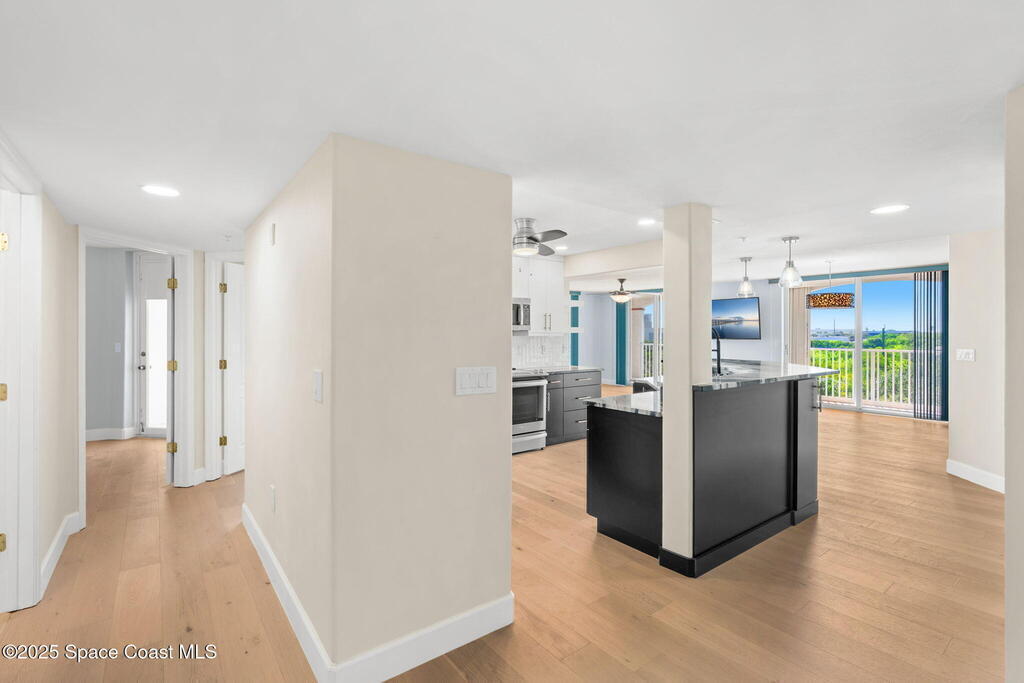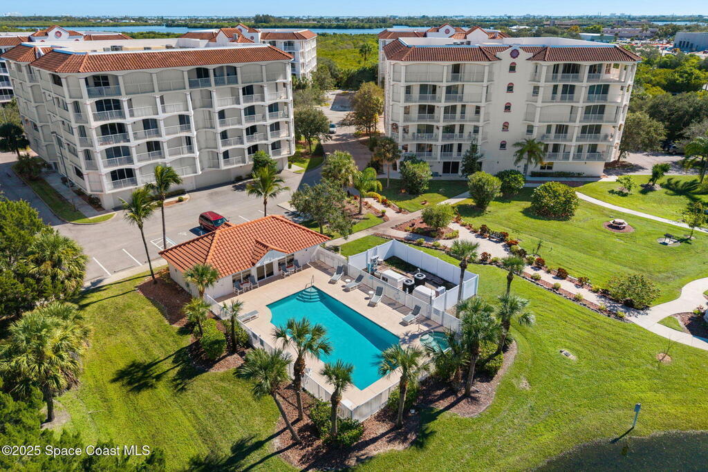 Welcome to the Harbor Del Rio Community, ideally situated in Central Merritt Island. Featuring under building parking space equipped with your very own electric car charger. Three bedrooms, each with private access to the expansive wrap-around balcony (with hurricane shutters for storm protection). The large open-concept design boasts laminate flooring throughout, fantastic, updated kitchen with new appliances. Primary bedroom offers dual closets, and an en suite with double vanities, a spacious walk-in shower, and a separate garden tub. The kitchen and bathrooms are finished with solid surface countertops, complemented by window treatments throughout and a generous laundry room. The community provides amenities such as a Pool/Spa, Gym, and Clubhouse. It's conveniently located by the NEW hospital being built and minutes away from shopping, dining, and the world-renowned Cocoa Beach.