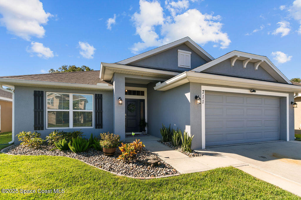 Step into this immaculate, move-in ready nearly new home built in 2020, offering a spacious and well-designed layout perfect for modern living. This home features an open-concept floor plan consisting of 4 bedrooms, 2 bathrooms, 2 car garage, stylish kitchen with modern finishes, under-cabinet lighting, breakfast bar, and eat-in dining space, separate formal dining room, a spacious living room, indoor laundry room, covered front porch and a covered back porch. The primary suite highlights include a large walk-in closet, bathroom with dual sink vanity, walk-in shower with a shower bench (remodeled in 2024), and a linen closet. This home also boasts new sod and landscaping, paid off solar panels, newer water heater (2023), split bedroom plan, irrigation system, hurricane shutters, double paned windows, fully fenced backyard with a shed, and so much more. Prime location just minutes from shopping, dining, gas stations, and beauty services. Less than 2 miles from Hwy 528 for easy commute