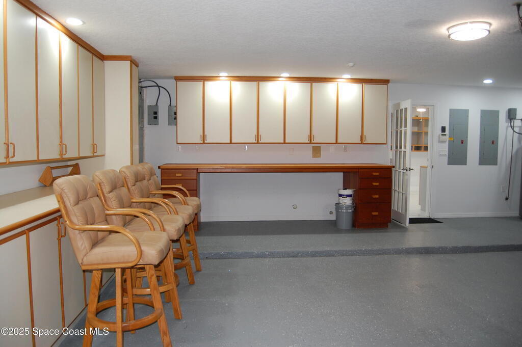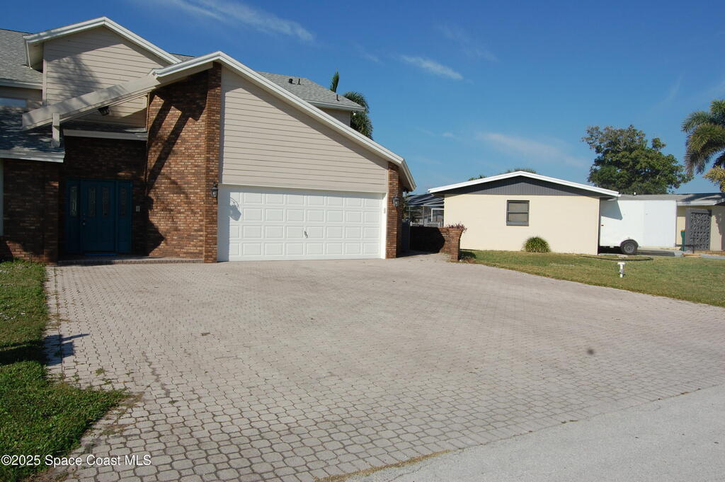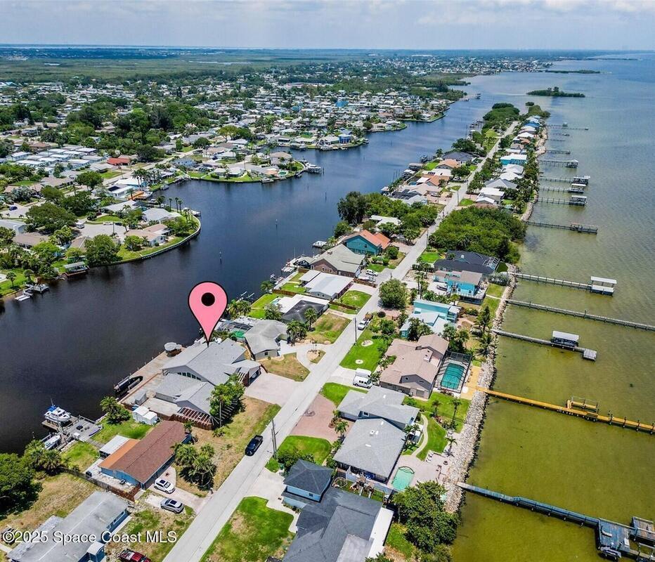 WELCOME HOME TO EXCLUSIVE MILFORD POINT MERRITT ISLAND!An absolute tropical boater's paradise! This stunning canal front single family home offers 5 bedrooms 4 full bathrooms and an open floor plan designed for spacious coastal living. Stunning Kitchen equipped with new stainless appliances. Features include 2 primary suites--one on the first floor and another upstairs with a loft overlooking the main living area, a private balcony overlooking pool and Pelican Creek. One of the downstairs bedrooms is perfect for in-law quarters. The garage is fully equipped custom cabinets and 2 work benches & oversized driveway. Additional highlights include a newer roof, 2 newer HVAC units, two wood-burning fireplaces (one on each level) and an expansive 1,531 sq. ft. dock spanning the full width of the property. Outdoor living at its finest with multiple deck space, a sparkling pool, and a relaxing spa. This property offers direct canal access with no bridges, making it a true boater's dream!