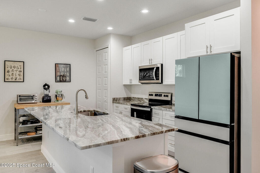 Experience coastal living in this recent construction, 2023-built, 4/2/2 home ready for move-in just 800 ft. from the beach with private access! Enjoy peace of mind with hurricane impact windows throughout, modern concrete structure, and quartz countertops in the kitchen and baths. The interior features porcelain plank tile flooring, with cozy carpet in the bedrooms. Stainless steel appliances in the kitchen and Samsung washer/dryer convey. Located 7 miles north of Sebastian Inlet, offering quiet and secluded beachside island life only 30 minutes from Melbourne Airport. Access premier surfing and exceptional fishing out your front door, and within the largest sea turtle nesting ground in North America. A perfect blend of coastal charm, comfort, & quality! Community offers private beach access, a clubhouse, playground, BBQ area, & basketball courts, making this the perfect coastal retreat for both relaxation and recreation.