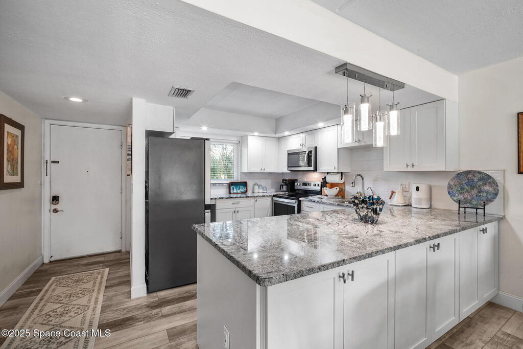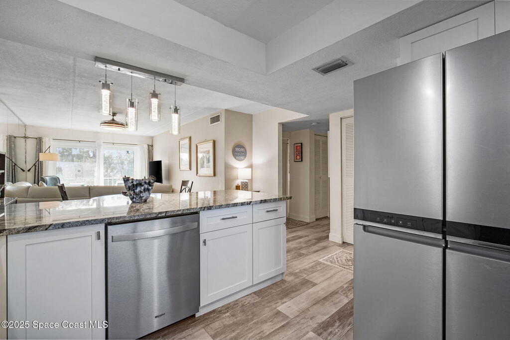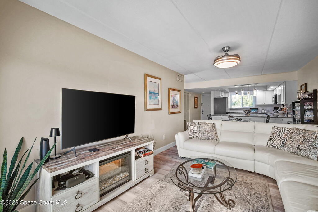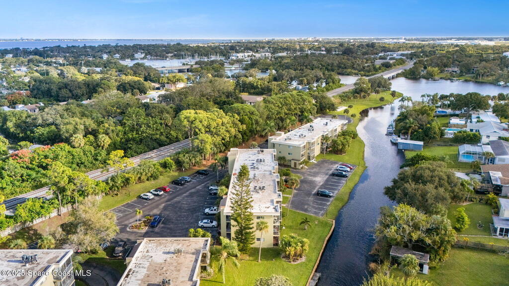 Welcome to 1001 W Eau Gallie Blvd, Unit 229--a bright, move-in-ready home in a canal-facing building steps from the Eau Gallie Arts District (EGAD) and just minutes across the causeway to Canova Beach. Start your day with coffee on the private balcony while boats drift by; stretch out on the property's expansive lawn to the river for sunset; then cool off at the community canal-facing pool. Weekends are effortless: stroll to murals, galleries, cafes, breweries, and markets, or launch a kayak/paddleboard from the community dock with boat access via the canal.Inside, modern comfort meets durability: impact windows (2024) and custom impact sliders, luxury plank flooring throughout, and a smart layout with a barn door that creates a private primary suite, plus in-unit laundry. The remodeled kitchen shines with quartz countertops, an oversized island with storage on both sides, soft-close cabinetry, a deep farmhouse sink, and in-sink water filtration. All major appliances included
