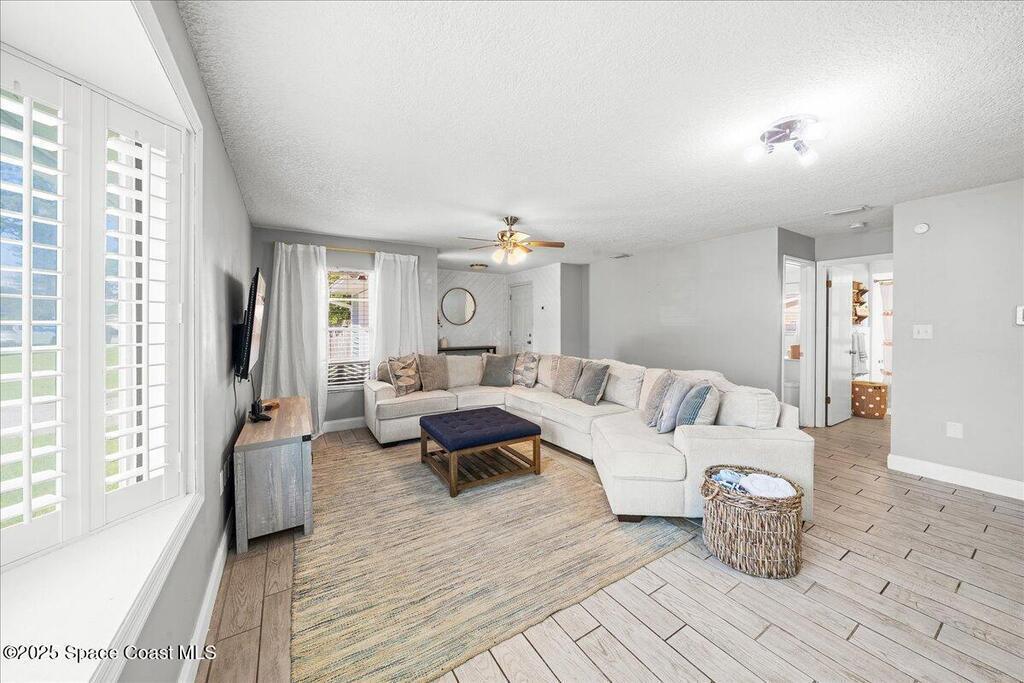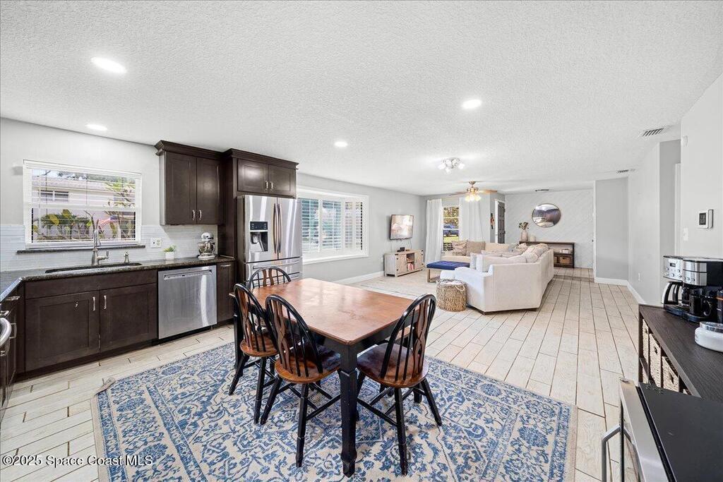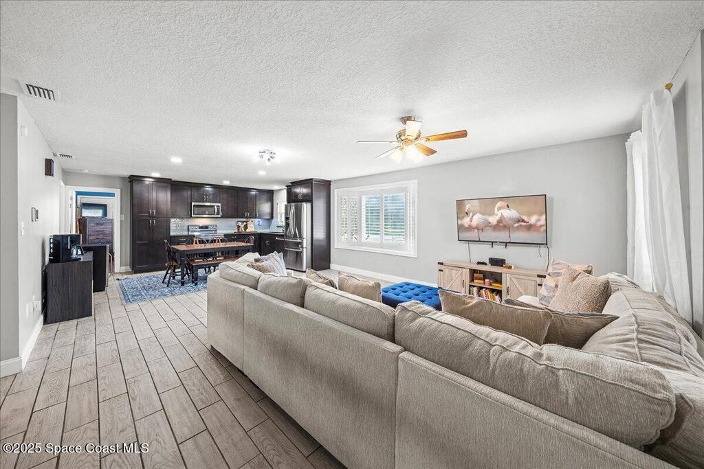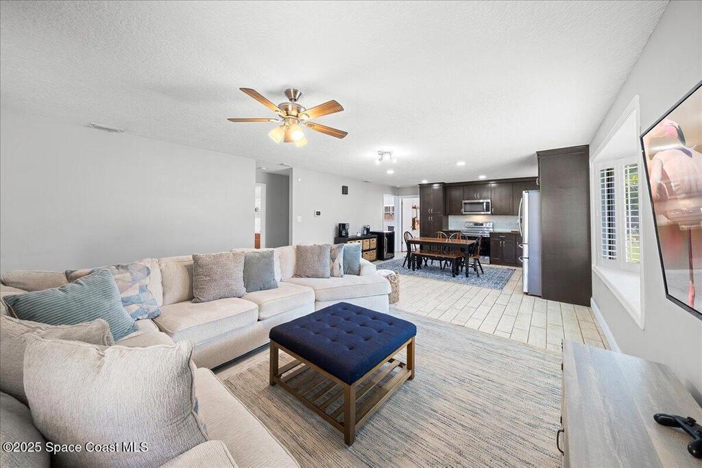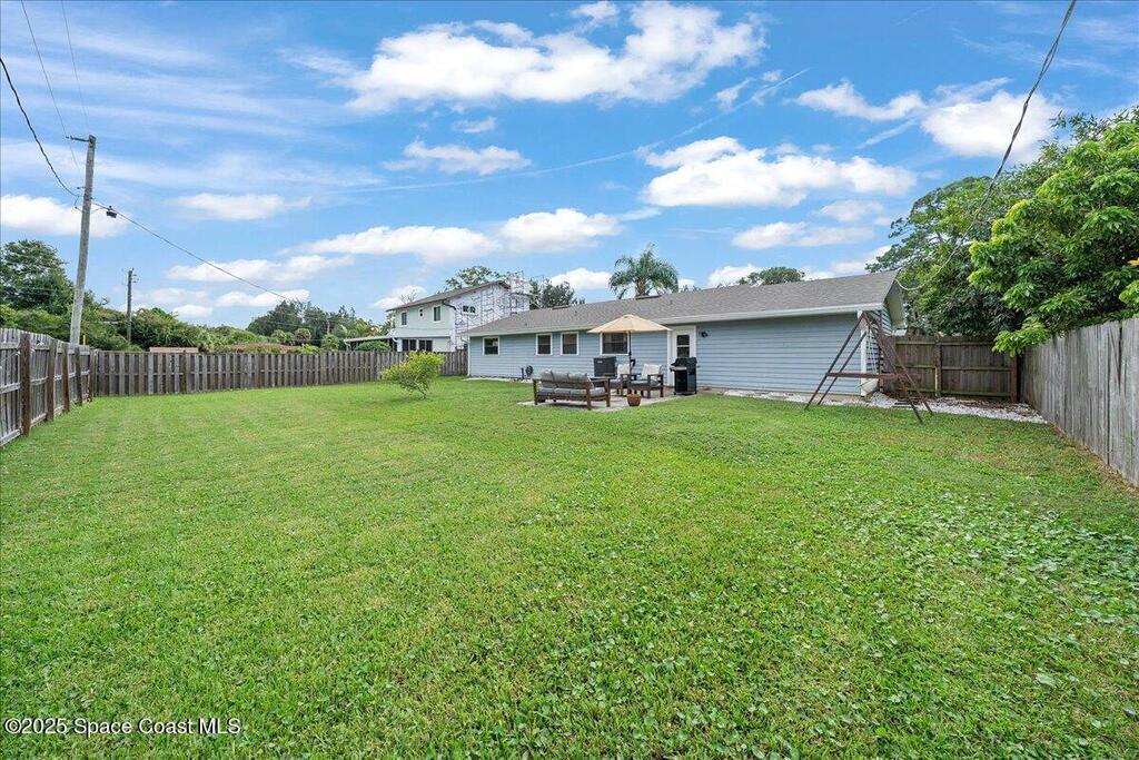 This adorable three bedroom, two bath house is centrally located in South Merritt Island. The home features an open floor plan, tile floors throughout, an updated kitchen and updated bathroom vanities. Out back you will find a fully-fenced spacious backyard perfect for the kids and pups. Recent updates include a new roof, new AC, and new impact garage door.