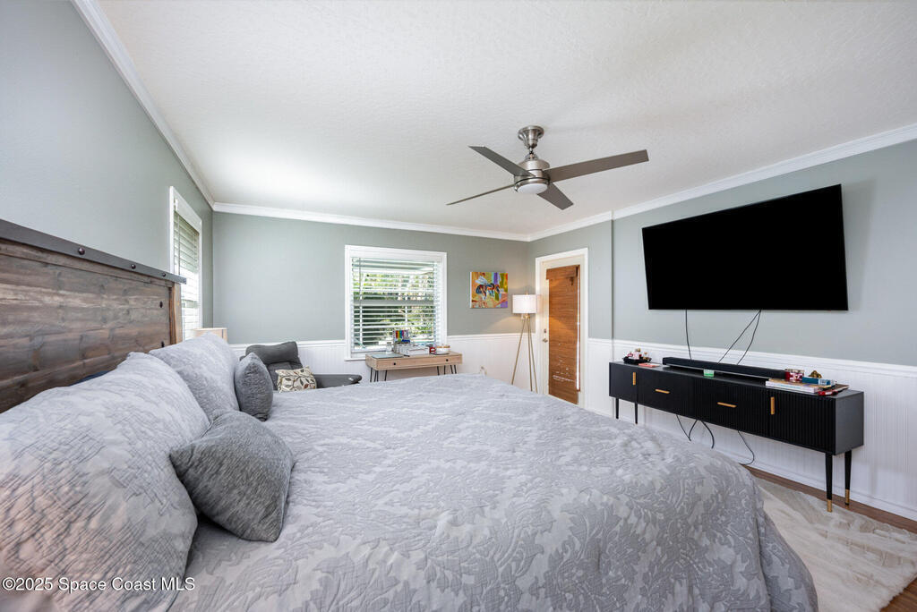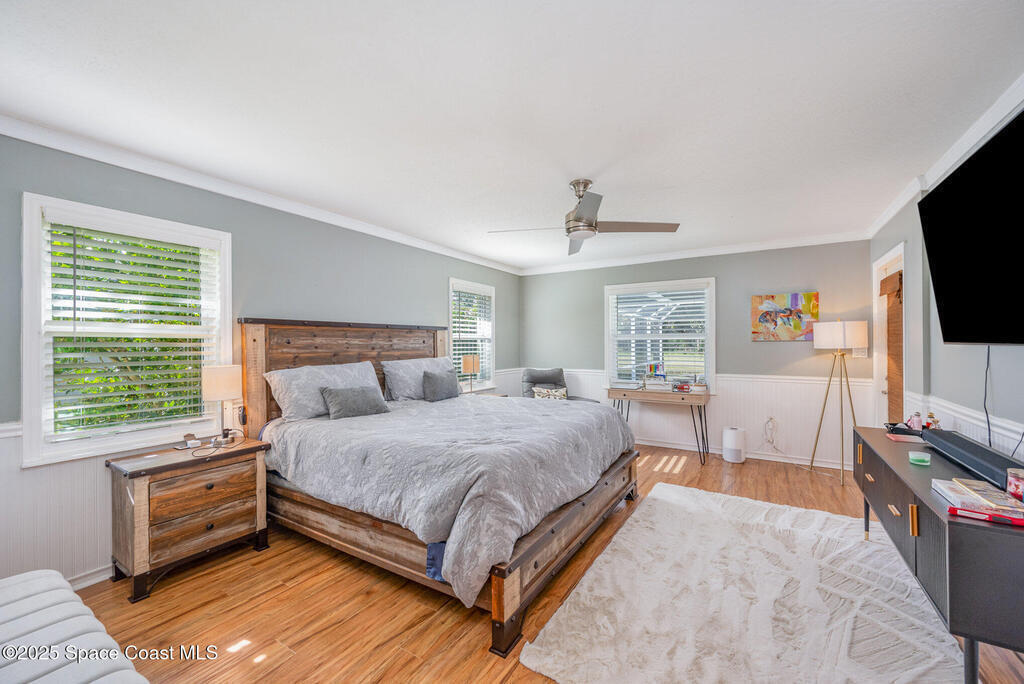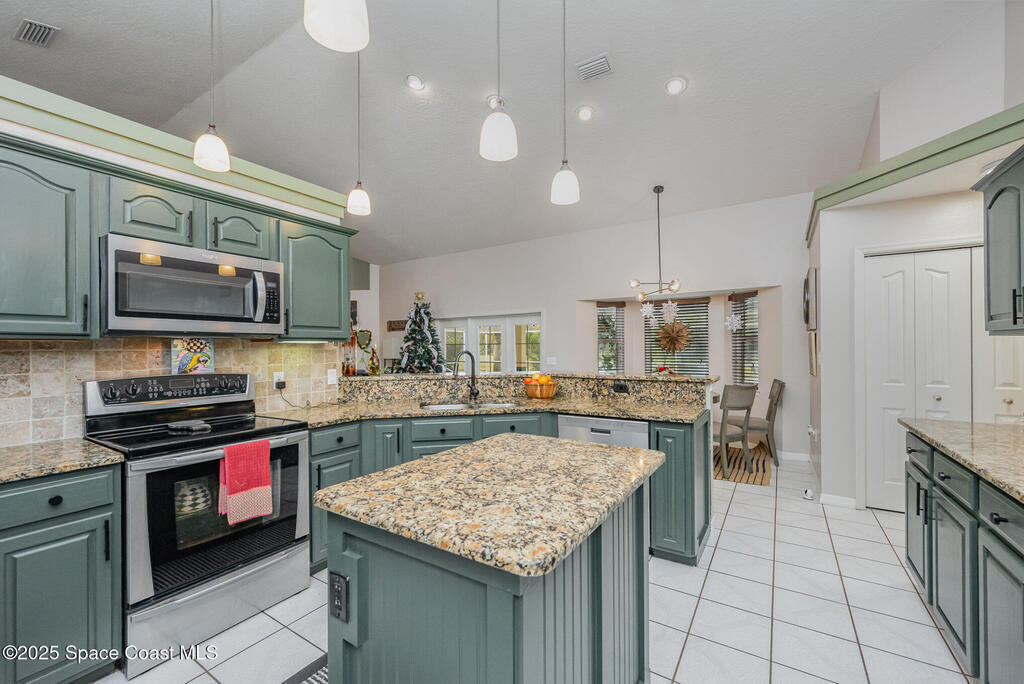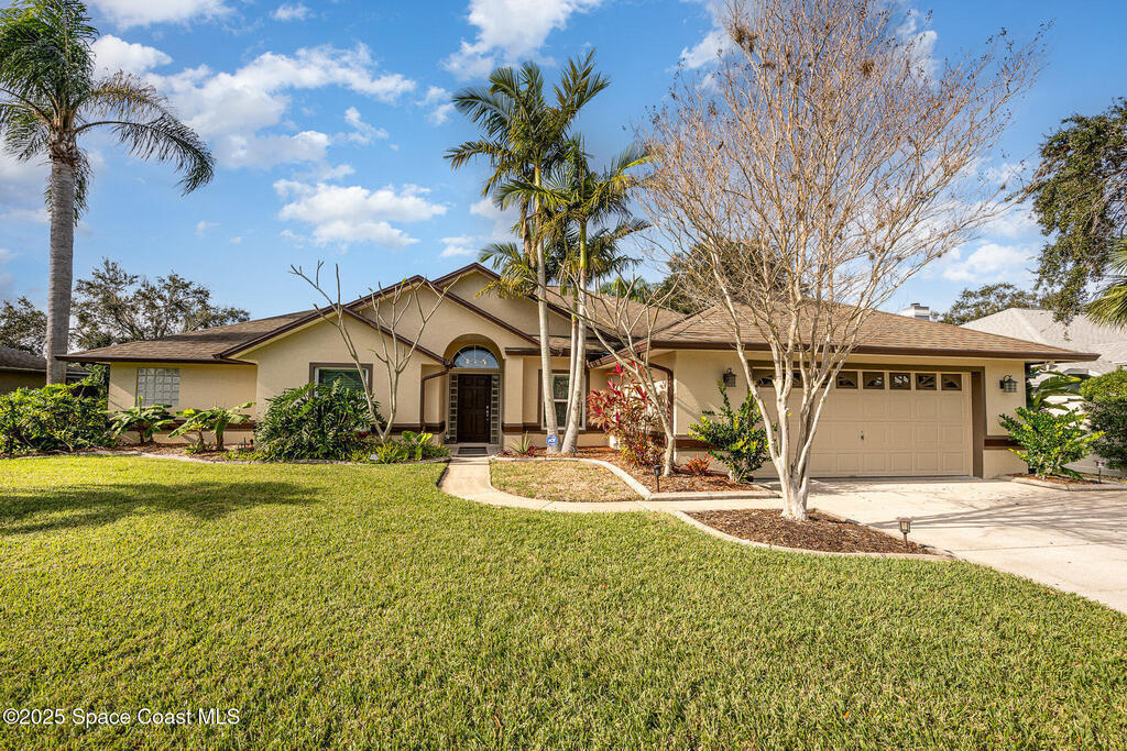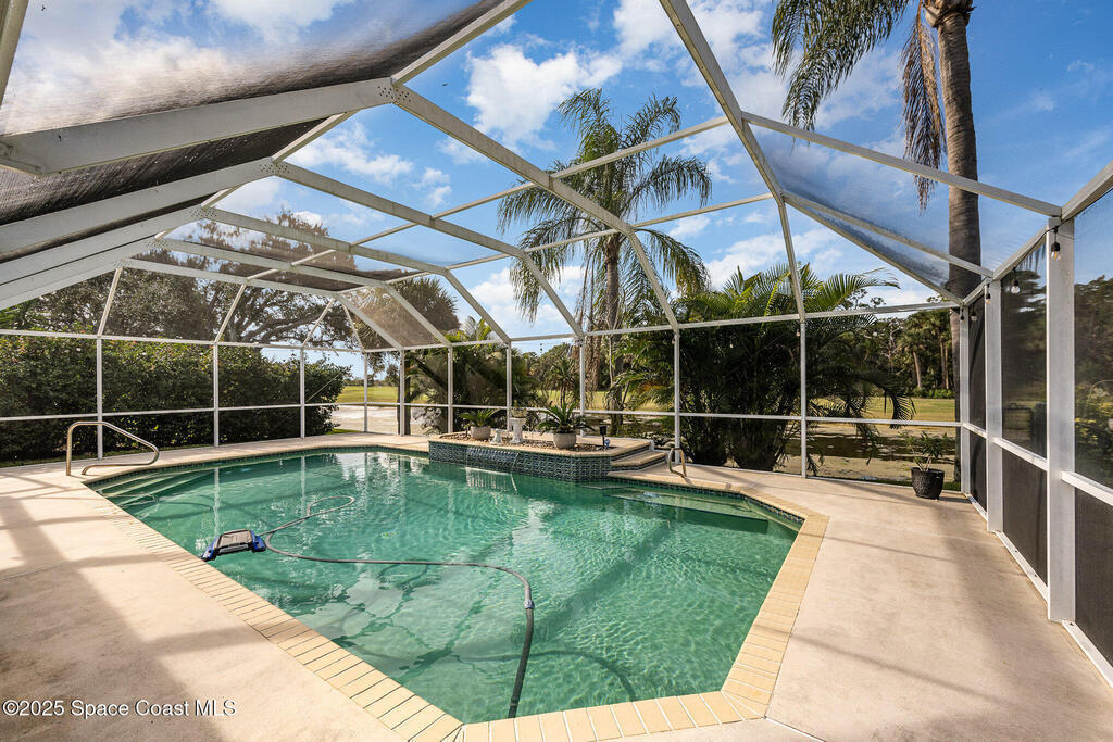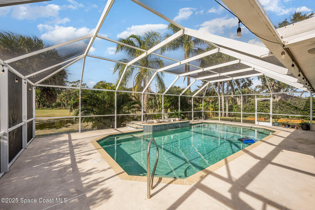 Welcome to this beautifully designed 2,400sq ft home offering the perfect blend of comfort, elegance, and Florida lifestyle in this 4-bedroom, 2.5-bath residence. Step inside to find a bright, open floor plan with spacious living and dining areas, with high ceilings. Kitchen, with granite and LOTS of cabinets, opens to the family room, making it perfect for entertaining. Primary suite offers serene views with private bath, double sinks, soaking tub and walk in shower. Split bedroom plan with 3 additional bedrooms provides plenty of space for family and guests. Don't forget the designated office for those that work from home. Outside, unwind on the expansive screened lanai overlooking the pool, water, and lush golf course views-a true backyard paradise. Whether hosting gatherings or enjoying your morning coffee, this home captures the best resort-style living. This community offers a golf course/clubhouse/restaurant. Close to Blue Origin/SpaceX/NASA/Beaches.
