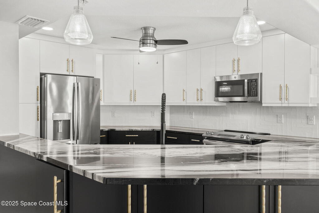 Welcome to the Harbor Del Rio Community, ideally situated in Central Merritt Island. Featuring under building parking space equipped with your very own EV charger. Three bedrooms, each with private access to the expansive wrap-around balcony (with hurricane shutters for storm protection). The large open-concept design boasts laminate flooring throughout, fantastic, updated kitchen with new appliances and granite counter tops. Primary bedroom offers dual closets, and an en suite with double vanities, a spacious walk-in shower, a separate garden tub and solid surface countertops, complemented by window treatments throughout and a generous laundry room. The community provides amenities such as a Pool/Spa, Gym, and Clubhouse. It's conveniently located by the NEW hospital being built and minutes away from shopping, dining, and the world-renowned Cocoa Beach.