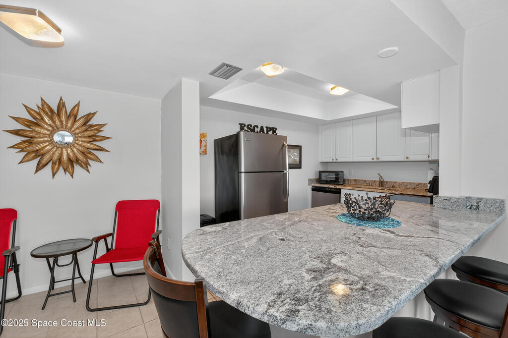 Welcome to your new coastal retreat at The Plaza! This fully furnished, custom remodeled, open kitchen, 3/2, condo offers 1,200 sq ft of comfortable living space, perfect for beach lovers and those seeking a laid-back lifestyle. Nestled in Cape Canaveral, this unit is just a short walk from the pristine beaches, allowing you to enjoy the sun and surf at your leisure. The vibrant neighborhood is filled with local shopping, delicious restaurants, and a host of activities that make living here a delight. Perfect proximity to the river AND ocean.Features of this incredible condo include fully remodeled/open kitchen, spacious bedrooms, a very inviting living area ideal for relaxation or entertaining, amazing natural light from the sliding glass doors that lead to the beautiful balcony overlooking the sparkling massive pool. The well-maintained building reflects the classic charm of the 1960s while providing modern conveniences of today.
