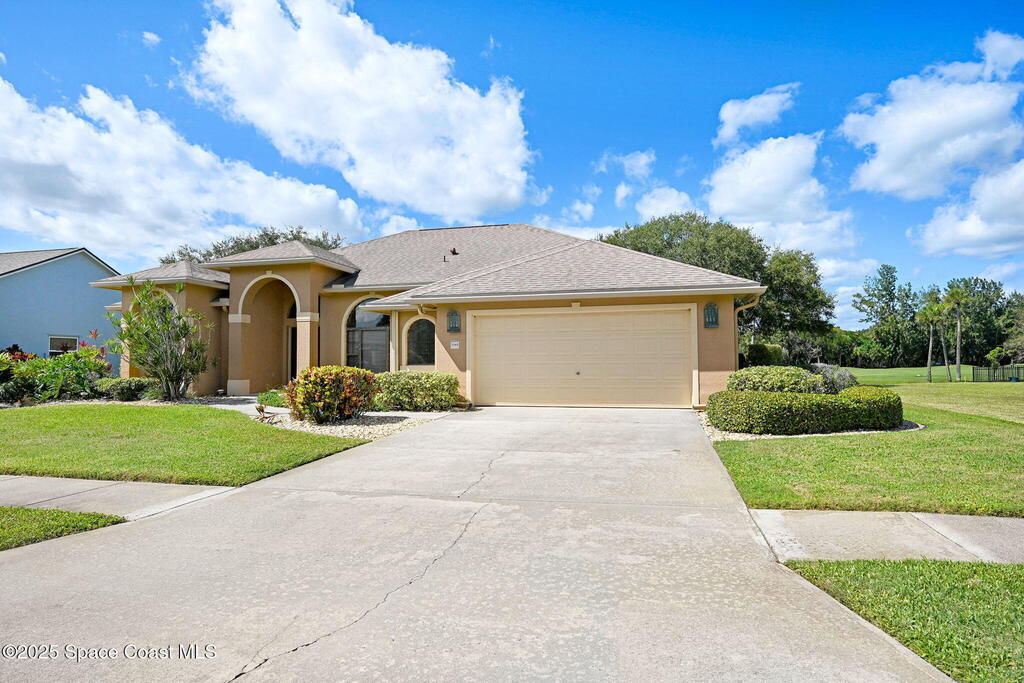 Located in the popular golf community of the Savannahs, this open concept home features 3 bedrooms, 2 baths and a unique grotto heated ''spool.'' Now is the perfect time to put your personal touches on this home with freshly painted interior and create your own style. The home is light and airy with cathedral ceilings and split floorplan. The primary bedroom has sliders to the patio with beautiful views of the golf course. There are his/hers walk in closets, private bathroom with soaking tub, dual sinks and separate shower and water closet. The grotto ''spool'' is heated in the winter, and cool in the summer, providing year-round pleasure without the maintenance of a large pool. The large screened in patio, is an outdoor retreat area to entertain or relax with a front row seat to the 2nd green. Rocket launches from your backyard provide thrill and excitement. Roof is 2017, A/C 2007, 2 car garage and dedicated laundry room. Affordability is possible in this prestigious golf community!