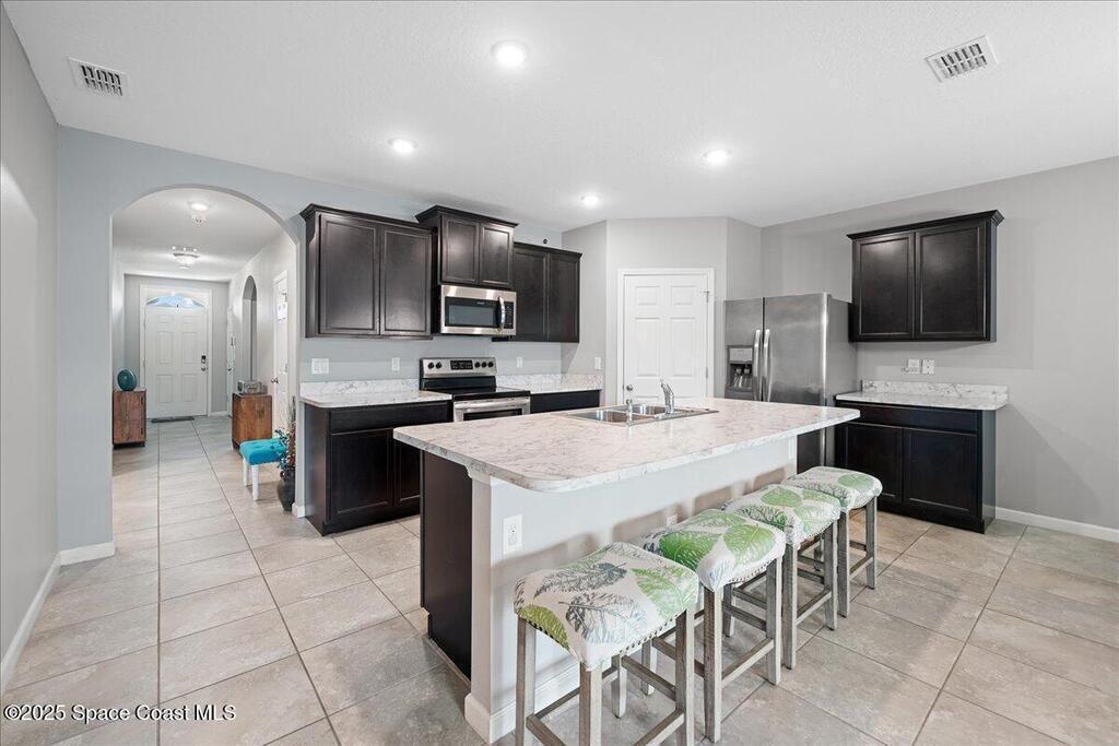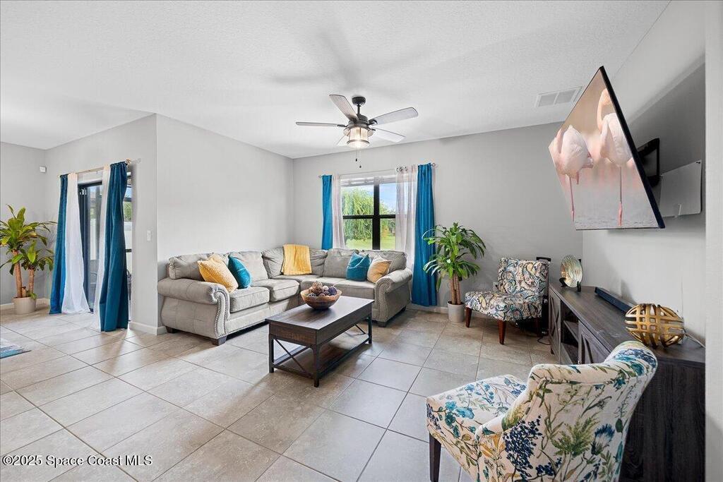A meticulously maintained 2019 Built 4-bedroom, 2-bathroom residence offers the perfect blend of modern elegance and functional design. Filled with natural light, This spacious living area flows effortlessly into the gourmet kitchen, stainless steel appliances, a large island, and a convenient breakfast bar. A nearby dining nook provides the perfect setting for casual meals while overlooking your water view. Upgraded flooring 2021, A newly added concrete walkway along the side of the entire home and extended concrete back patio 2023, Screened Patio 2022, Smart Home Technology & security cameras. Playground & walking path in community. Conveniently located just minutes from I-95, this home provides easy access to shopping, dining, and top-rated schools, as well as Melbourne's vibrant downtown and pristine beaches.