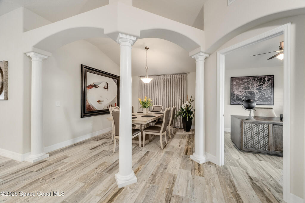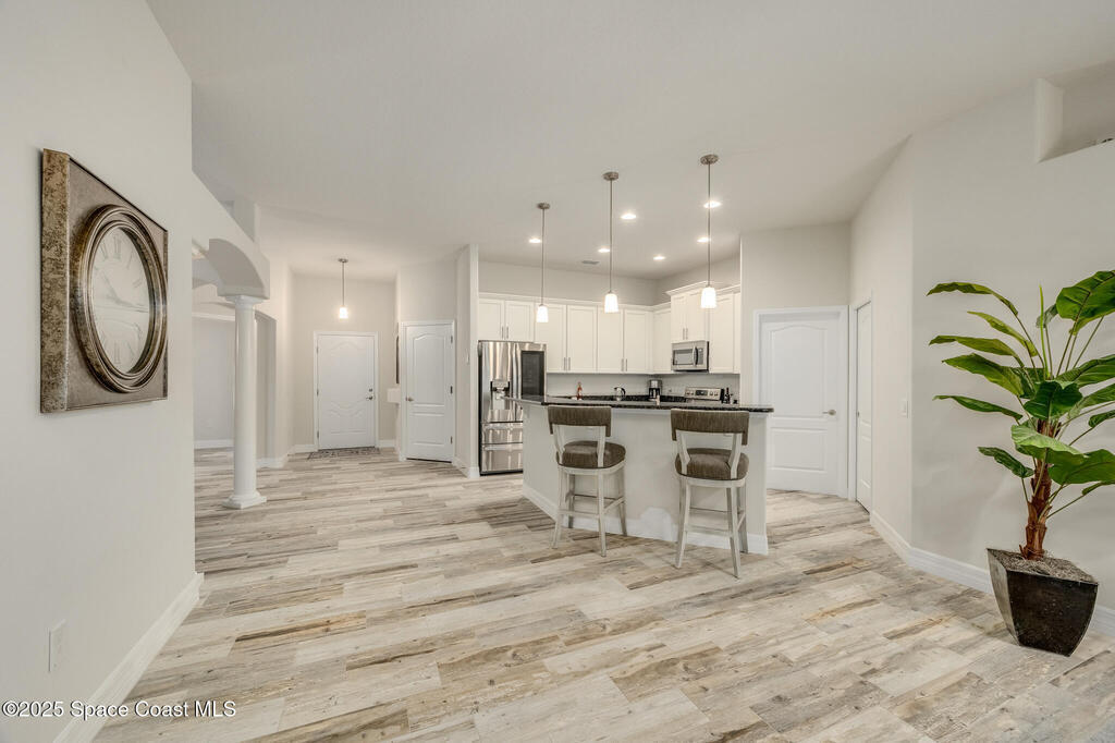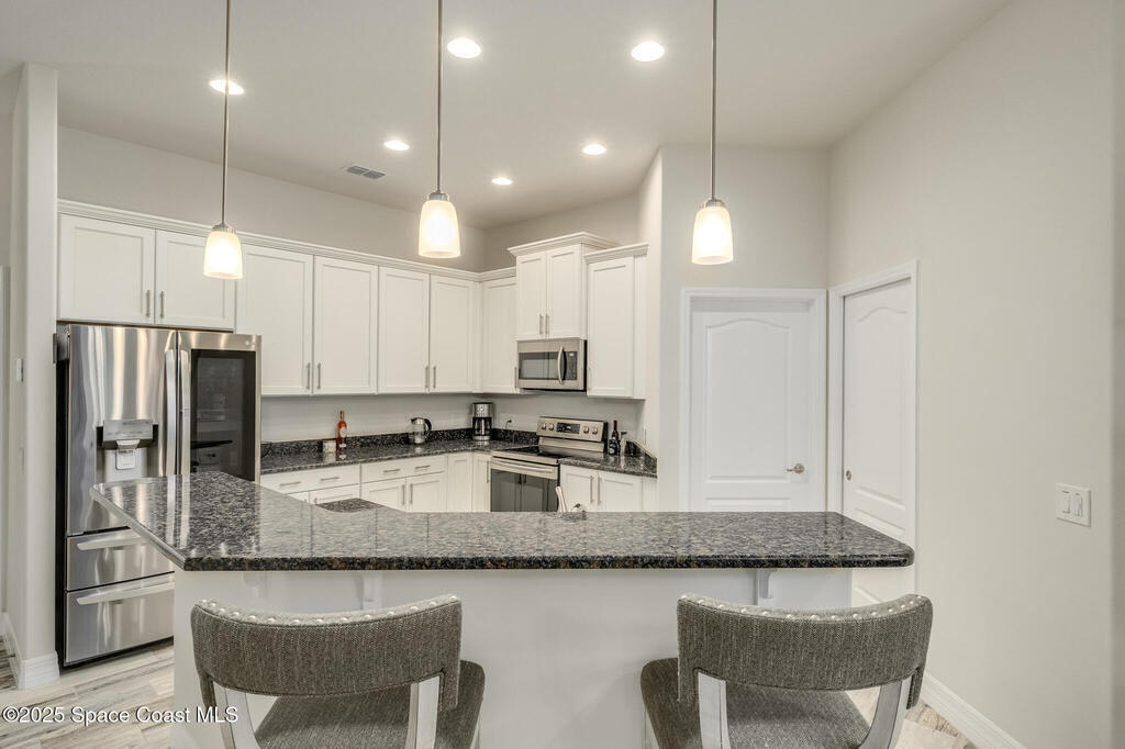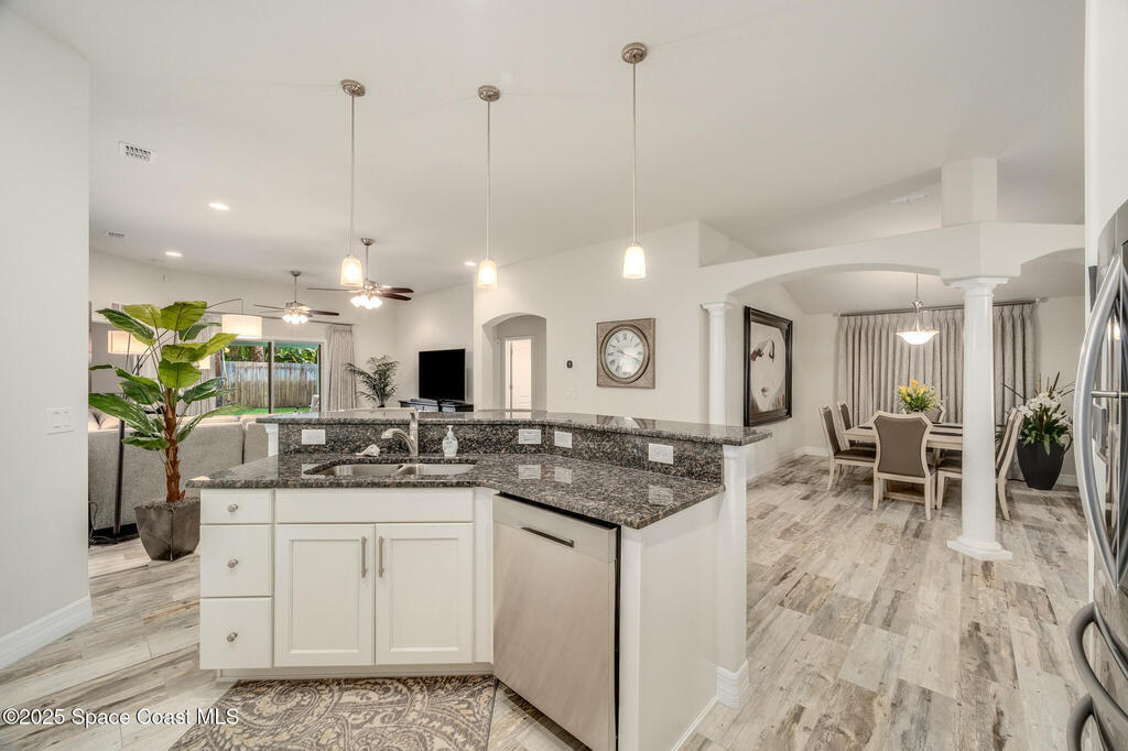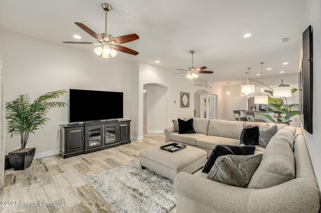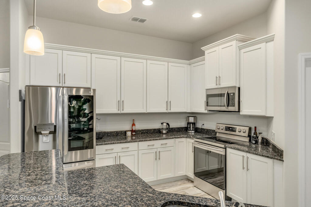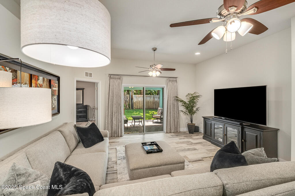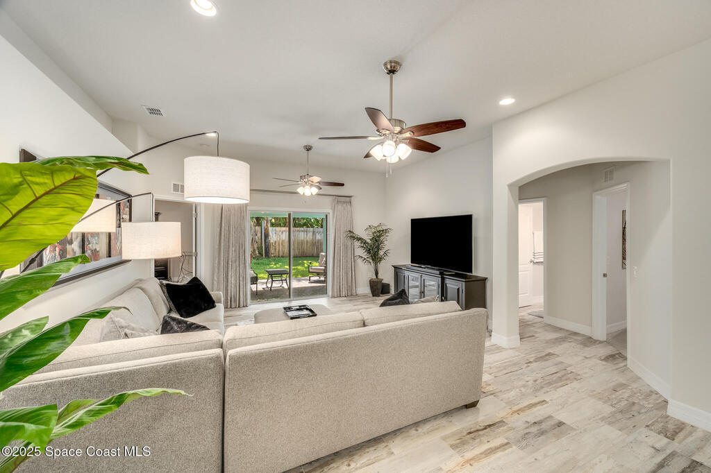 Experience the perfect blend of modern design and relaxed coastal charm in this custom-built 4-bedroom, 2-bath home, completed in 2017. Located just half a mile from the sandy shores, this 1,941-square-foot retreat welcomes you with bright, open spaces and 10-foot ceilings that create an airy, inviting feel throughout. The stone-accented exterior and beautifully landscaped yard set the tone with exceptional curb appeal. Built for peace of mind, the home includes impact glass at the front, hurricane shutters, a whole-house generator, and a water softener system. Inside, the stylish kitchen--featuring stainless steel appliances--flows effortlessly into the dining and living areas, ideal for entertaining or quiet evenings at home. The spacious primary suite offers a walk-in shower and a serene retreat, while the fourth bedroom provides flexible space for a home office, guest room, or creative studio. Step outside to your private backyard oasis, complete with a covered porch and