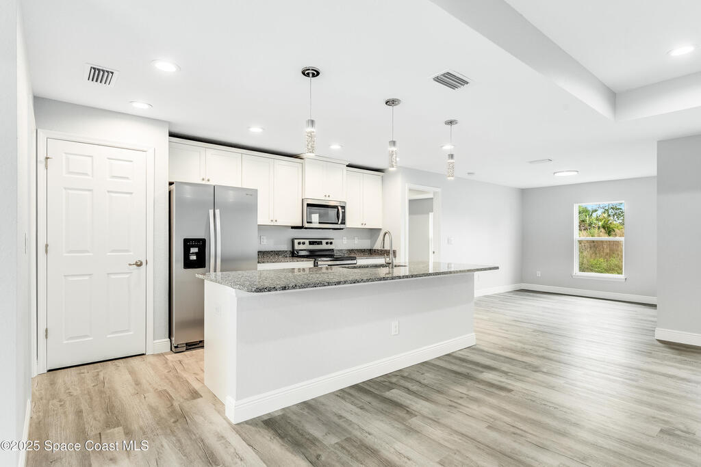 Currently being built is a spacious, open concept, 4 bedroom 2 bathroom CB home with a 2-10 HBW, water softener system, and hurricane impact windows/doors included. This home offers 12 mil vinyl plank flooring throughout the main living area, carpet in the bedrooms for a cozy touch, upgraded lighting package, a large backyard, 2 car garage, and a laundry room. The oversized primary suite features a beautiful tray ceiling, double sinks with granite countertops and two walk-in closets. With a perfect space for entertaining, the kitchen presents a significant island, granite countertops, a generous pantry and stainless steel appliances that share a space with the expansive living room which features another decorative tray ceiling. This home is located minutes away from major shopping centers, restaurants and schools with a quick access to I95. Photos are from the model, ESTIMATED completion end of Nov 2025
