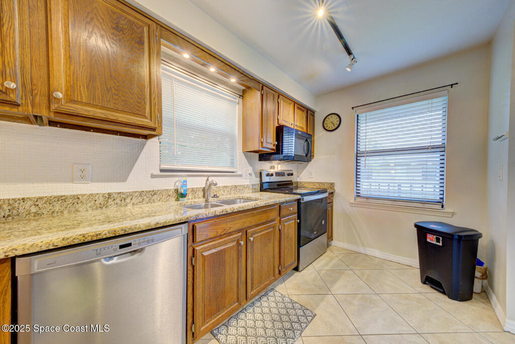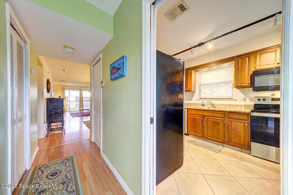 This beautiful condominium boasts the best location in the building, offering unmatched privacy and serene views of the pool from your private screened balcony. The interior features granite countertops, stainless steel appliances, a breakfast bar, and a pantry, making the kitchen both stylish and functional. The spacious master bedroom includes an en-suite bathroom, a walk-in closet, and balcony access via sliding glass doors. The open-concept living and dining area creates a bright and inviting atmosphere, perfect for entertaining or relaxing. Plus, the convenience of an in-unit washer and dryer adds to the ease of living. This resort-style community is full w/ amenities, including tropical grounds, tennis courts, a car wash station, two pools, two clubhouses, and a gazebo on the Banana River--perfect for watching sunsets, dolphins, manatees, and rocket launches! This condo is just a 5-min walk to the beach, a 5-min drive to the Port, and 45 min to the Airport.