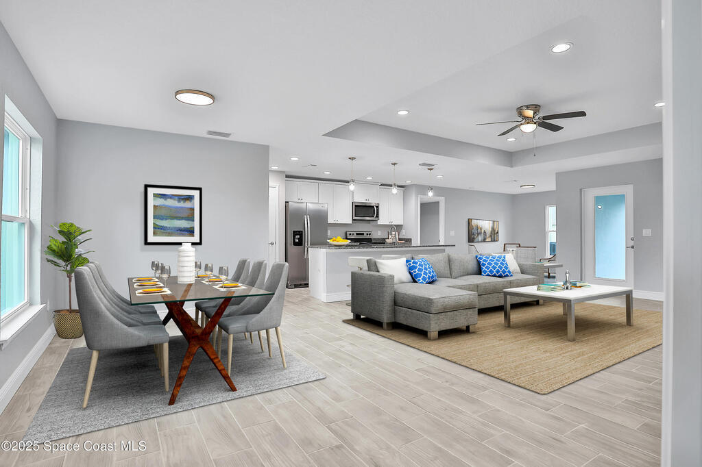 This new construction single family home is being built right now! The gorgeous open concept home features 4 bedrooms and 2 full bathrooms with double sinks and two walk-in closets in the primary bedroom/bathroom. Also included is an attached 2 car garage, Hurricane Impact DOOR AND WINDOWS, laundry room, granite kitchen/bathroom counter tops, pantry, brushed nickel fixtures, upgraded lighting package, two tray ceilings, and brand new stainless steel appliances REFRIGERATOR, microwave, electric range and dishwasher, includes upgraded WATER SOFTENER SYSTEM FOR THE WELL WATER. Estimate CO 11/10/2025