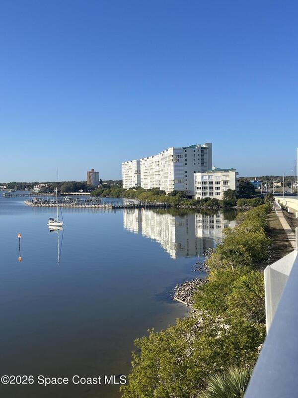 Come enjoy Living in the Luxurious Harbor Pointe Community Lifestyle. Where you can watch Nature at it's best in your own backyard overlooking the Indian River Lagoon and also the Space Center to have front row seats with each Rocket Launch from your balcony. This 3 bedroom 2 bath condo has had updates in Kitchen with slow close Kitchen cabinets, pull out shelves, Lucca handcrafted designer backsplash, Quartz countertops, Kraus granite composite workstation Sink w/accessories, Delta touch pull down hose faucet, Plantation Shutters throughout, new fans in spare bedrooms, Split Plan all on one level Living, Hurricane Shutters updated 2023, Large Laundry area w/Sink, Pickleball/Tennis Courts, Work out room, Sauna, Clubhouse, Heated Pool and Hot Tub, Basketball Courts, nearby Parks, walking distance to Old downtown area with Restaurants, Shops & Pubs, Marina area. Lock up and go on Cruises in Port Canaveral, or spend the Day in Orlando Themeparks. It is truly the Perfect Lifestyle!!