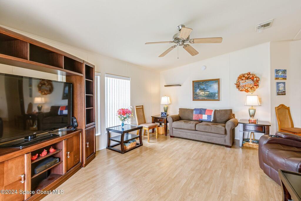 Look at this senior community where you own your land. This well maintained home the perfect place to retire. This home has a brand new roof,june 2025...This 2/2 home will be great for snowbirds or year round living.Watch rocket launches from home or sit on the back patio enjoying the wildlife. Your HOA dues cover cable,internet,lawncare and security.Community clubhouse has many activities,pickleball,tennis or shuffleboard.Close to beaches and shoppingDon't wait,you may be too late !