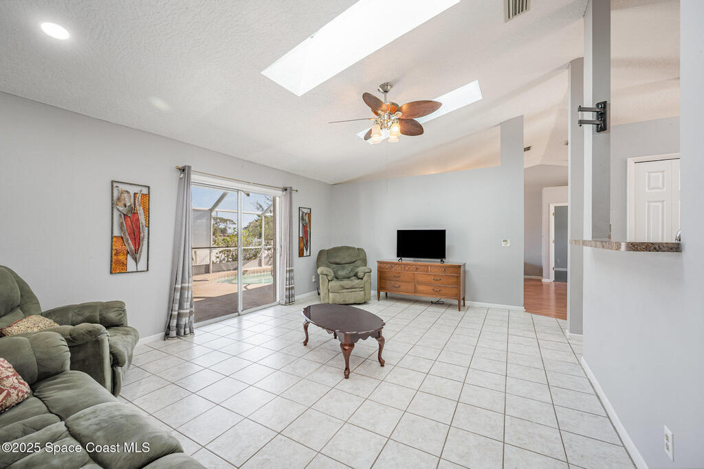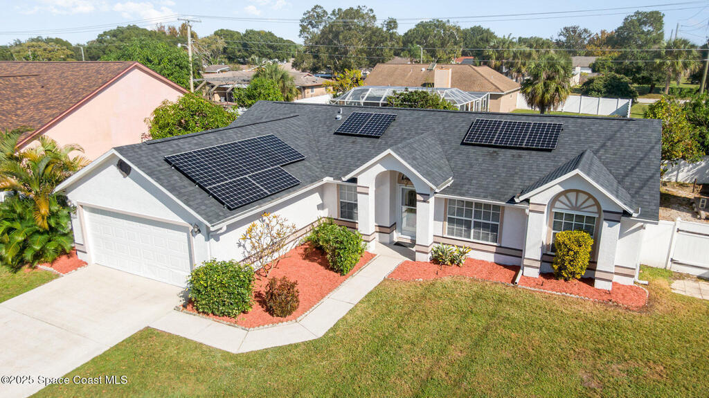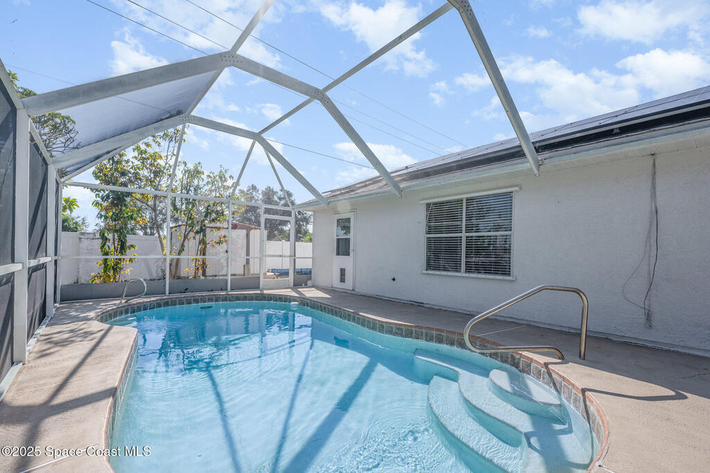 Sun-filled 3 bed / 2 bath with heated salt water pool nestled in the prestigious Bel Aire Palms. Recent upgrades include 2021 roof, 2024 AC and 2022 solar panels. Inside, you'll find an open floor plan with vaulted ceilings, skylights, split bedrooms, and tile / laminate throughout - no carpet. The eat-in kitchen features wood shaker cabinets, breakfast bar, and tile backsplash. Spacious primary ensuite offers a walk-in closet, 60'' vanity, and direct pool access. Entertain all year long in your oversized screened patio with in-ground heated salt water pool and hot tub. The fully fenced backyard sits on a corner lot offering extra space and privacy. Fantastic central location! Minutes to Florida Tech, Downtown Melbourne, the beach, shopping, restaurants, golf, and parks.