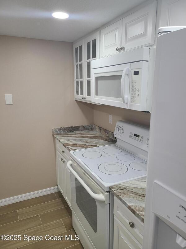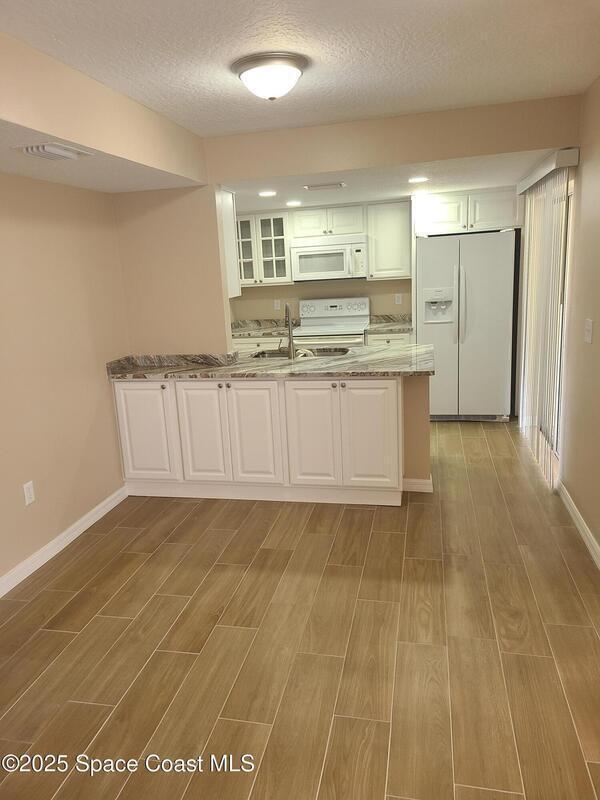 Completely remodeled ground-floor unit offering modern style and convenience in a prime location! Just 15 minutes to the beach, near Melbourne Airport, and only an hour to Orlando and Disney attractions. This beautiful condo features wood plank tile throughout, stacked in-unit laundry, a private fenced patio, and a screened front porch for relaxing outdoors. Enjoy a pet-friendly community with a sparkling pool and clubhouse, plus cable and internet included in the HOA. Move right in and start enjoying easy Florida living close to everything!