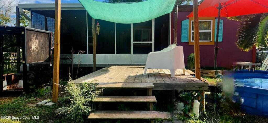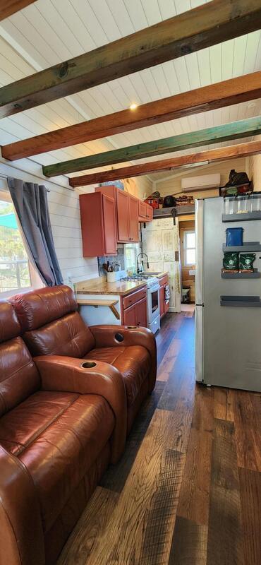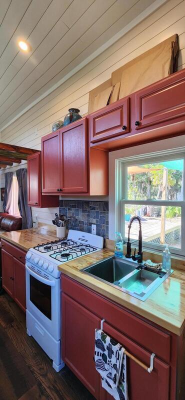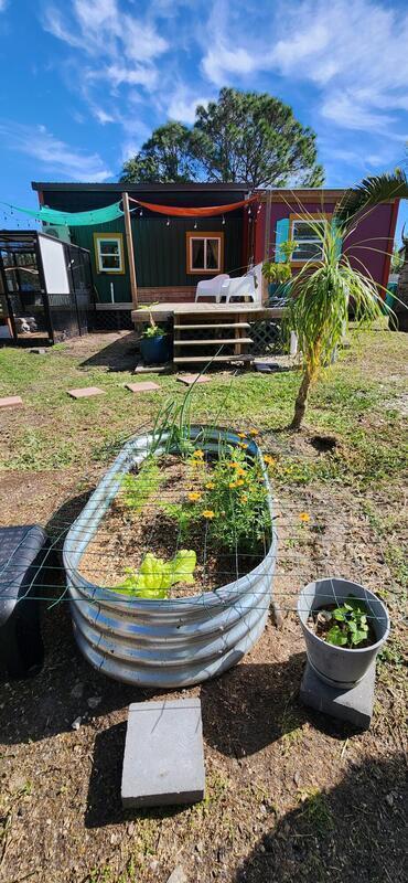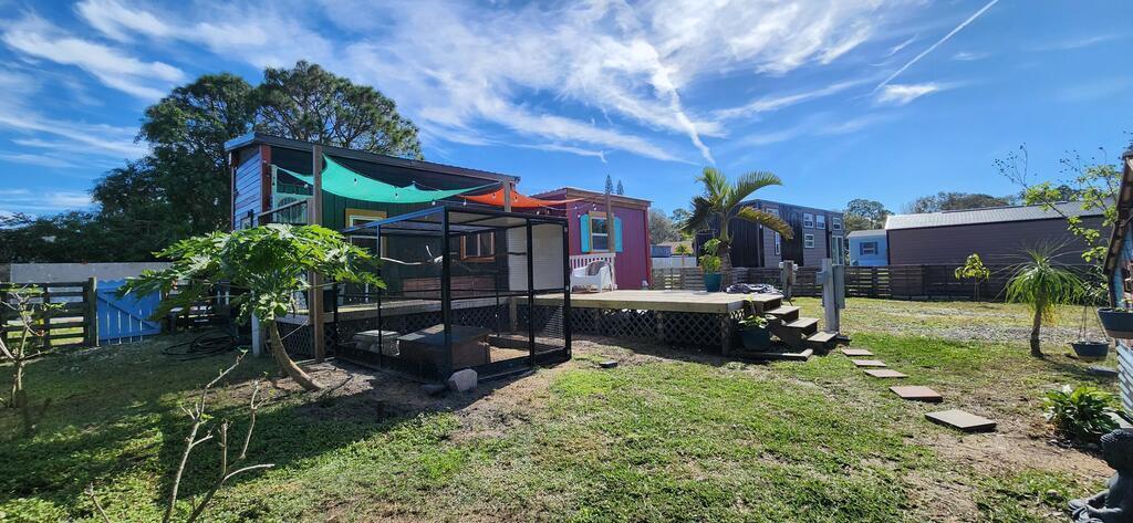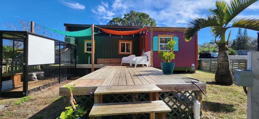 Ready for less house and more life? HERE IS YOUR SIGN! Tiny home on wheels plus additional build on of 12'x15' primary bedroom. Home has 2 lofts. Lofts supply extra storage or bedrooms fitting queen beds. 1 yr old Stackable washer and dryer included. Butcherblock counters with custom sized gas range, deep sink for farm to table meals. Full bathroom with open shelves and shower behind a sliding 100yr old barn door. Fenced backyard wrapped with large area of custom decking. Great for aspiring homesteaders, chickens allowed. Small garden, butterfly attracting plants and mature palms all creates this backyard oasis. This tiny home is a perfect balance of simplicity and expression. IF YOU HAVE A CREATIVE SPIRIT THIS IS THE HOME FOR YOU.