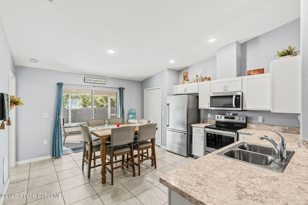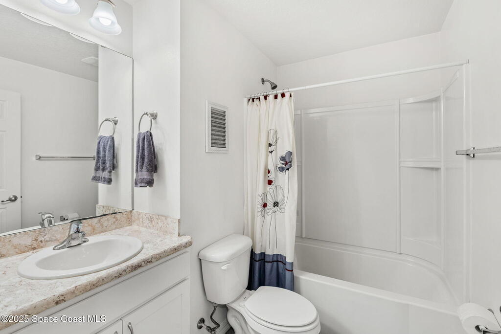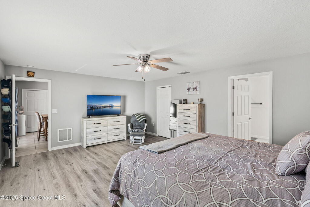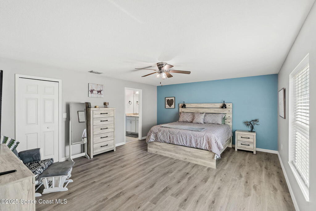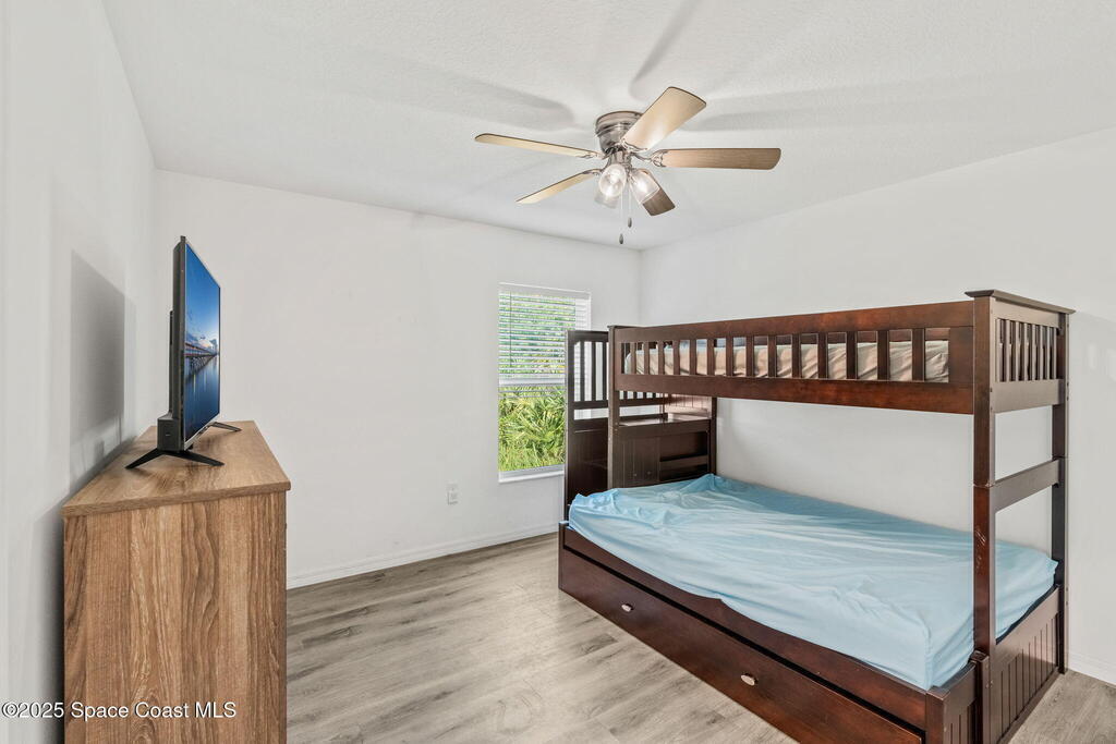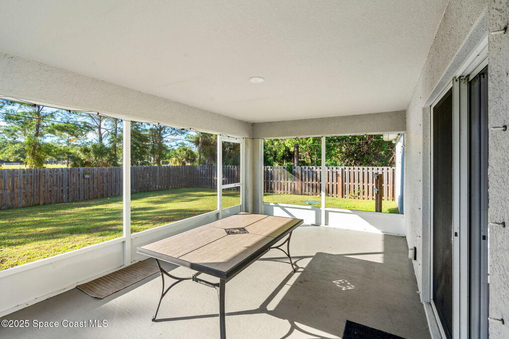 Welcome to Palm Bay! Tucked away on a quiet road and complete with a large fenced-in yard, this beautifully maintained home is ready for its new owner. Boasting over 1700 square feet, a high vaulted ceiling, and an open floorplan, there is ample space to make this house a home. In the primary suite, you'll find an oversized bedroom, a walk-in closet, and a bathroom which features both a shower & tub. The layout was designed with lifestyle in mind - a split plan that provides separation between the main living space and the secondary bedrooms. In addition to the 3 bedrooms, there is a dedicated office that could be used as a 4th bedroom or a den. Stepping outside to the covered porch, you'll enjoy the privacy of the 6-foot fence, neighbored on both sides by unbuilt wooded lots with an open field behind it. Gain the benefits of a new build (Built in 2021, concrete block construction) without high out-of-pocket expenses like a new fence or water softener system. Book your showing today!