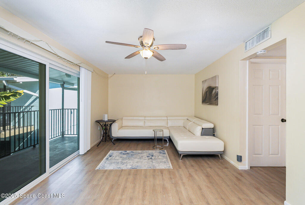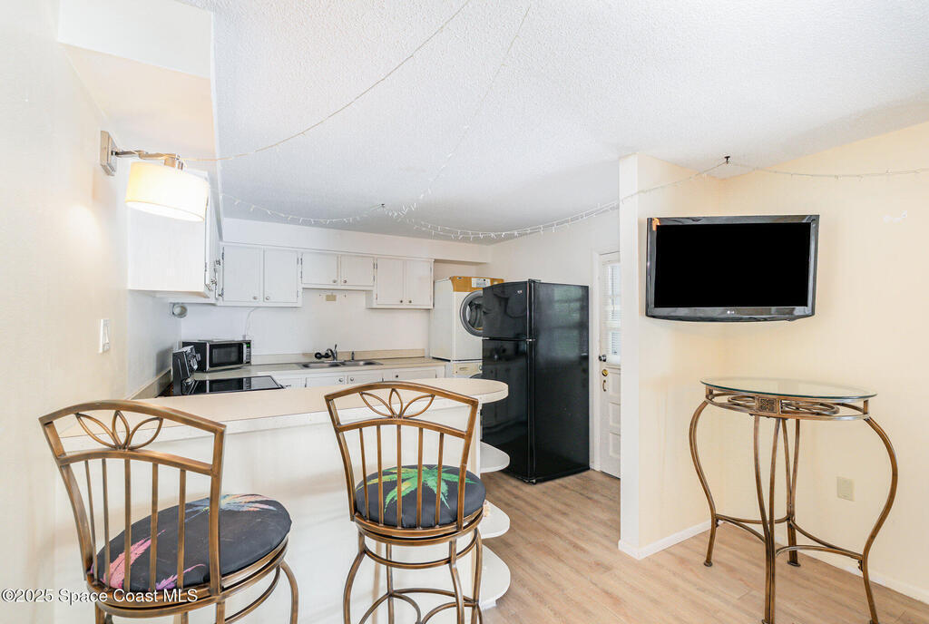 Cocoa Beach Condo - Prime Location!Well-maintained 2-bedroom, 1-bath second-floor condo just two blocks from the beach and vibrant downtown. This solid all-block construction unit offers newer vinyl plank flooring, impact windows, and sliding glass door. Open kitchen/living area with plenty of natural light. Enjoy a convenient outdoor common area with BBQ space, perfect for relaxing or entertaining. Walking distance to local restaurants and shopping. Conveniently located near the Public Library, Aquatic Center, local theater, Port Canaveral and the Kennedy Space Center. Less than an hour to Orlando International Airport. 1 month minimum rentals. Washer & Dryer in unit too! HVAC 2020. Water Heater 2021.