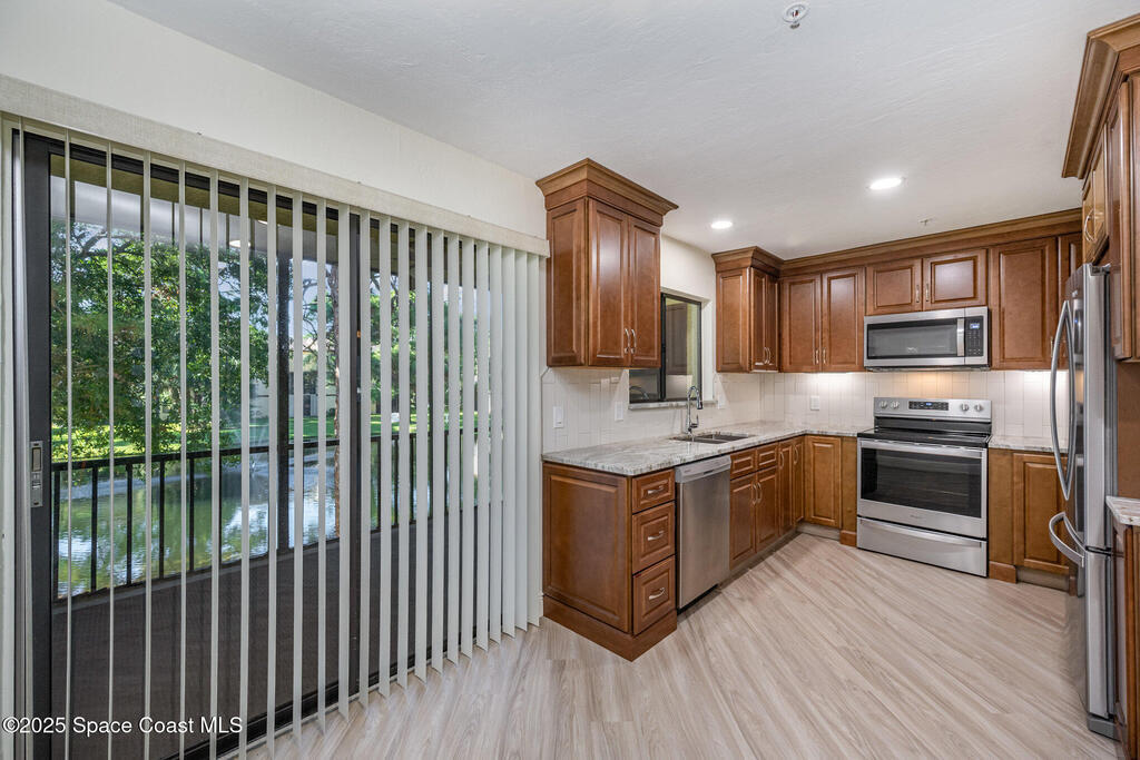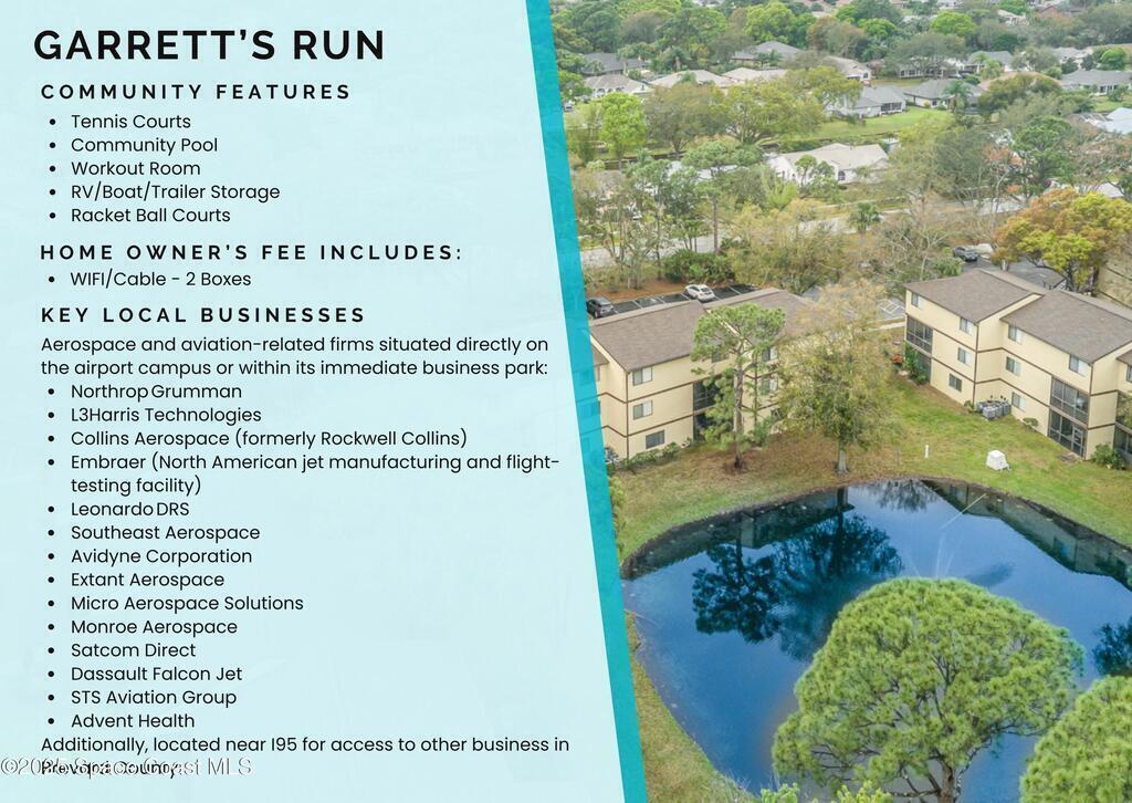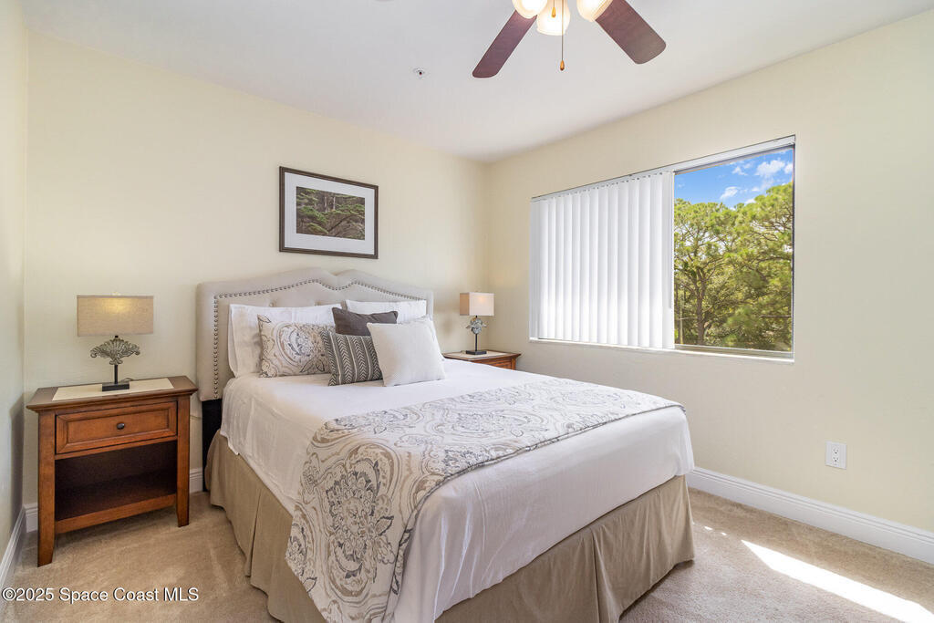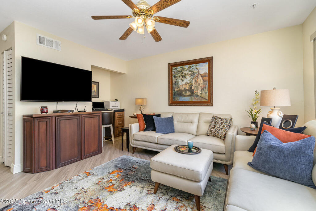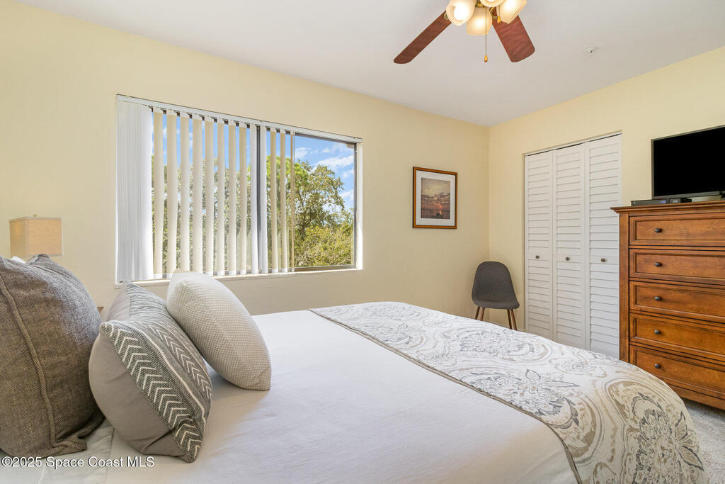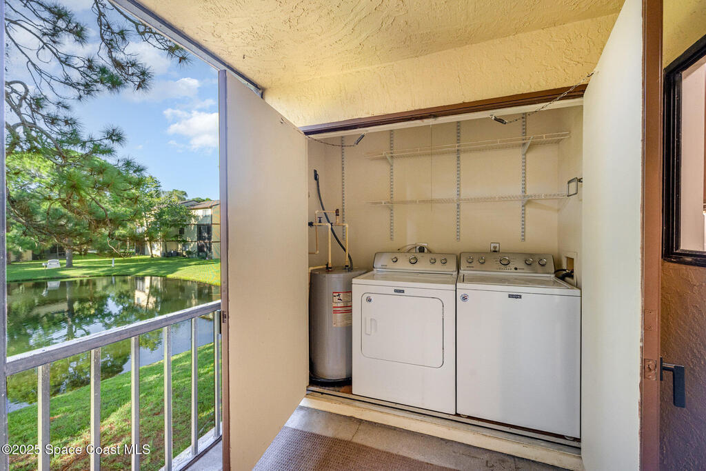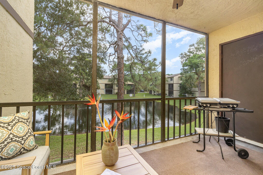 Set in a vibrant, park-like community, this updated 2-bedroom, 2-bath condo offers comfort, style, and everyday convenience. Inside, you'll find modern flooring, a bright color palette, and a kitchen with granite countertops, quality appliances, and plenty of storage. The oversized primary suite easily fits a king bed and includes a generous walk-in closet. The guest bedroom has its own walk-in, and both bathrooms feature clean, refreshed finishes. Enjoy peaceful pond views from the screened patio and the convenience of an in-unit laundry closet. Community amenities include a pool, fitness center, tennis, racquetball, a clubhouse, and RV/boat/trailer storage. Cable and Wi-Fi are included, and annual rentals are allowed. Minutes from the airport, major employers, shopping, dining, and beaches, this condo delivers an easy, energetic lifestyle in a prime Melbourne location.