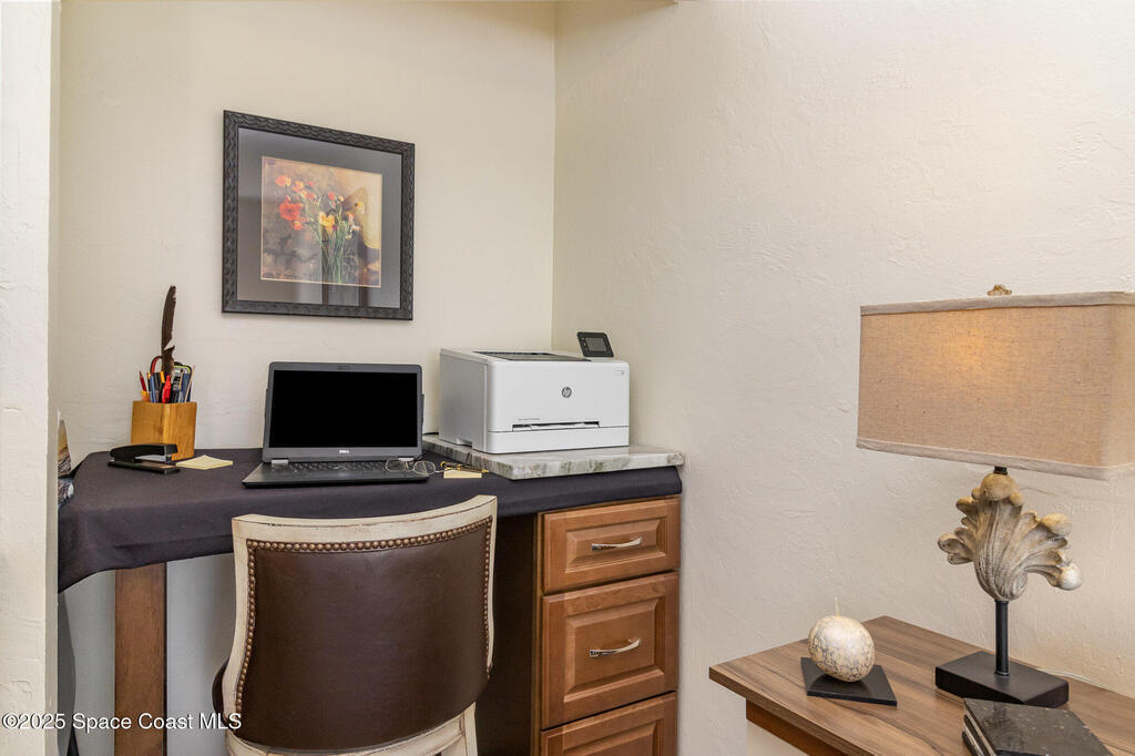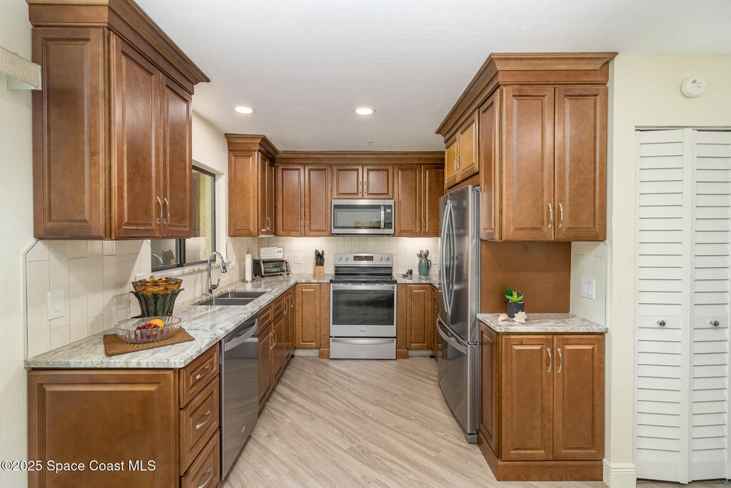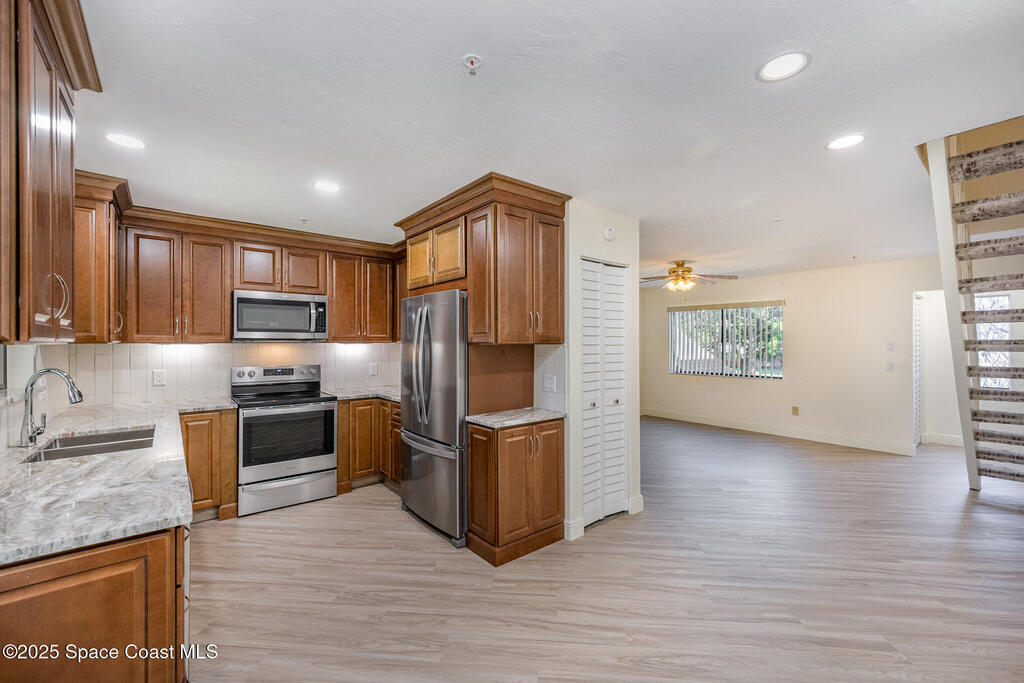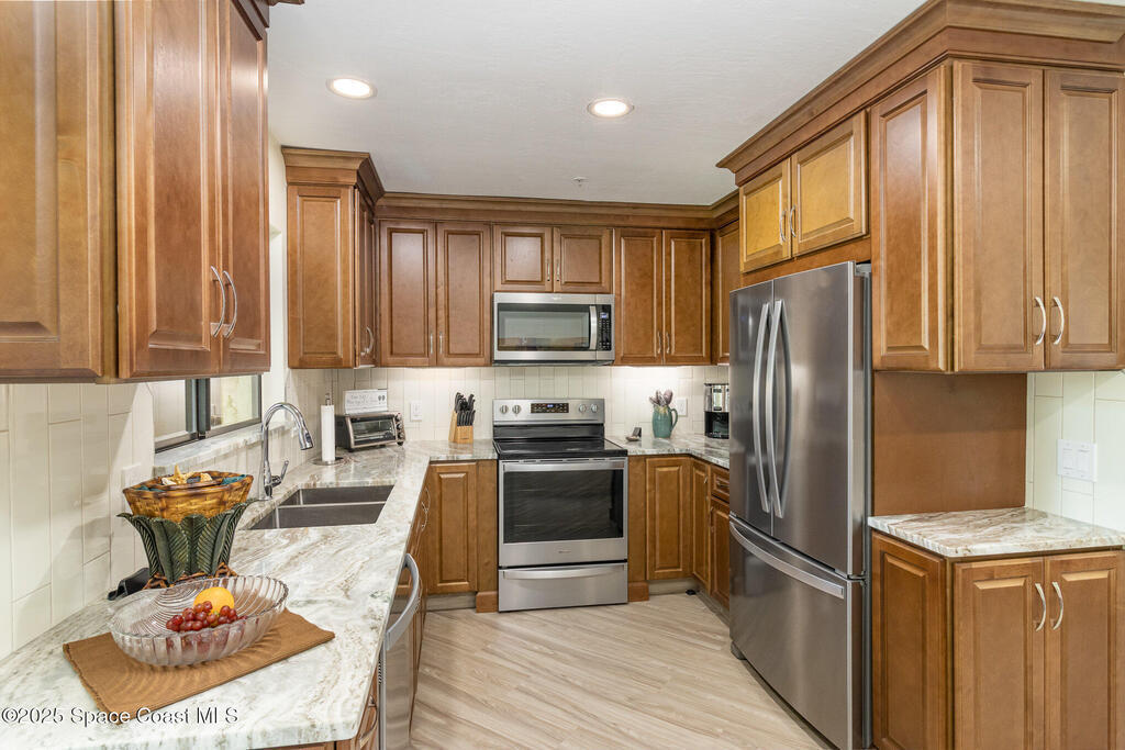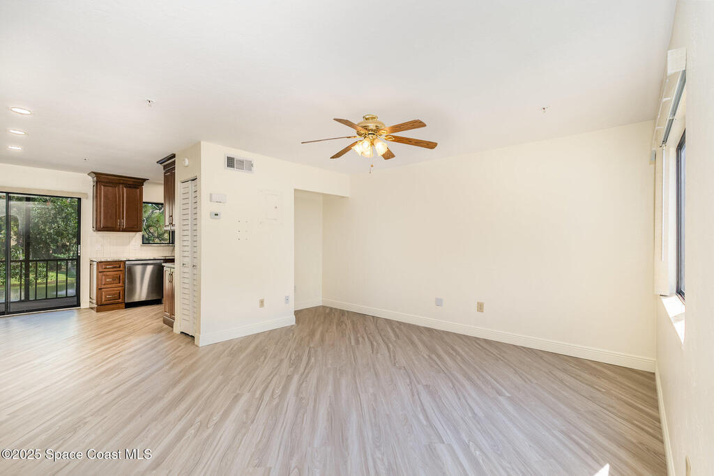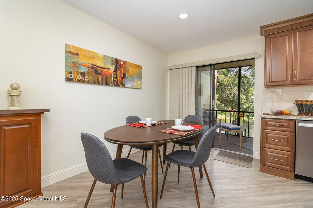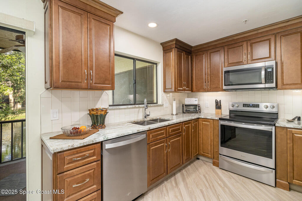 Set in a vibrant, park-like community, this updated 2-bedroom, 2-bath condo offers comfort, style, and everyday convenience. Inside, you'll find modern flooring, a bright color palette, and a kitchen with granite countertops, quality appliances, and plenty of storage. The oversized primary suite easily fits a king bed and includes a generous walk-in closet. The guest bedroom has its own walk-in, and both bathrooms feature clean, refreshed finishes. Enjoy peaceful pond views from the screened patio and the convenience of an in-unit laundry closet. Community amenities include a pool, fitness center, tennis, racquetball, a clubhouse, and RV/boat/trailer storage. Cable and Wi-Fi are included, and annual rentals are allowed. Minutes from the airport, major employers, shopping, dining, and beaches, this condo delivers an easy, energetic lifestyle in a prime Melbourne location.